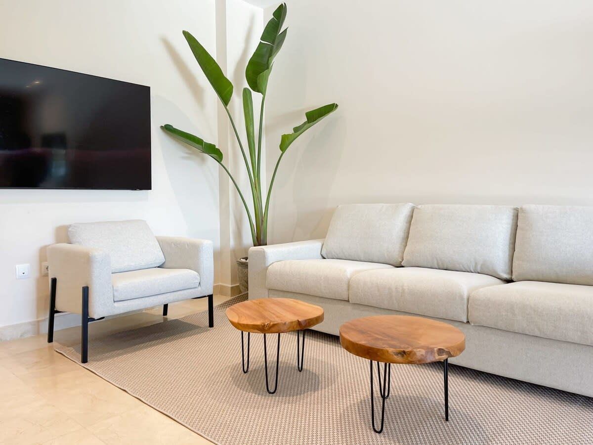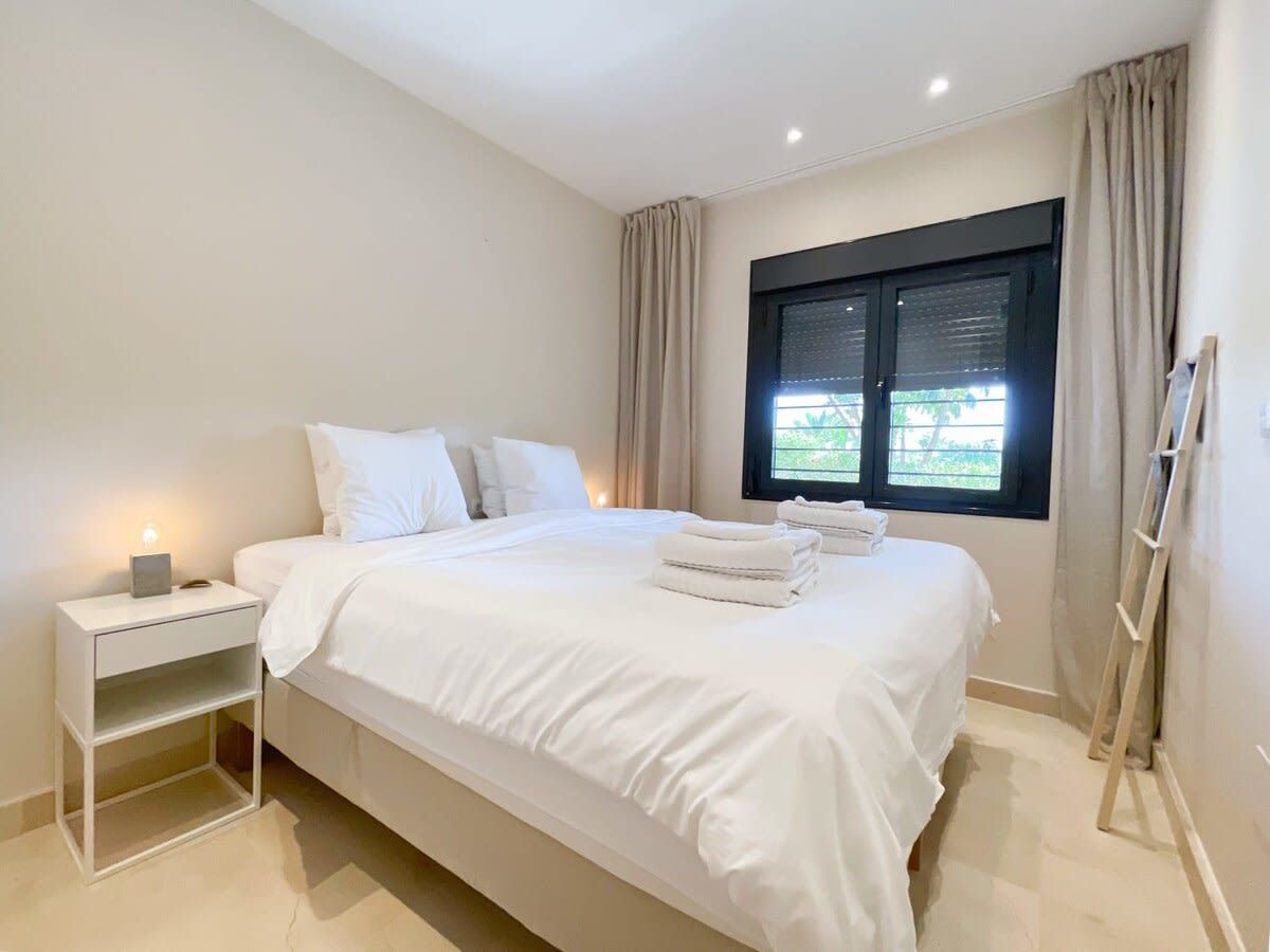 Set on a golf resort with communal swimming pools, paddle tennis courts, and three on-site restaurants, it’s easy to see why this apartment caught our eye. If you’re not enjoying a game of golf or tennis, or cooling off in the pool, the private terrace is a welcome spot for alfresco dinners. Though the apartment itself is fairly fuss-free, you’ll find everything needed for a comfortable stay and more than enough to entertain you here. Locally, it’s a mere ten minutes to beautiful Puerto Banús, a must-visit for a true taste of the Costa del Sol.