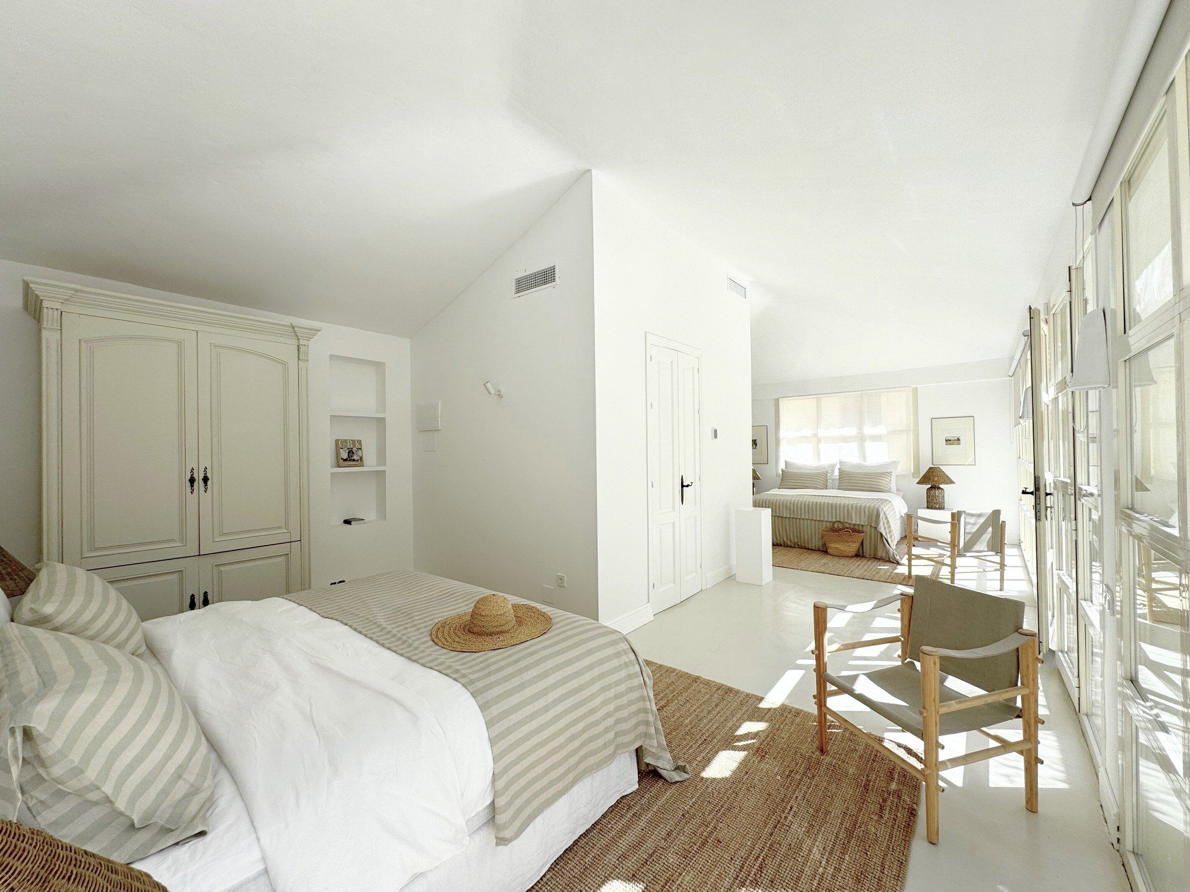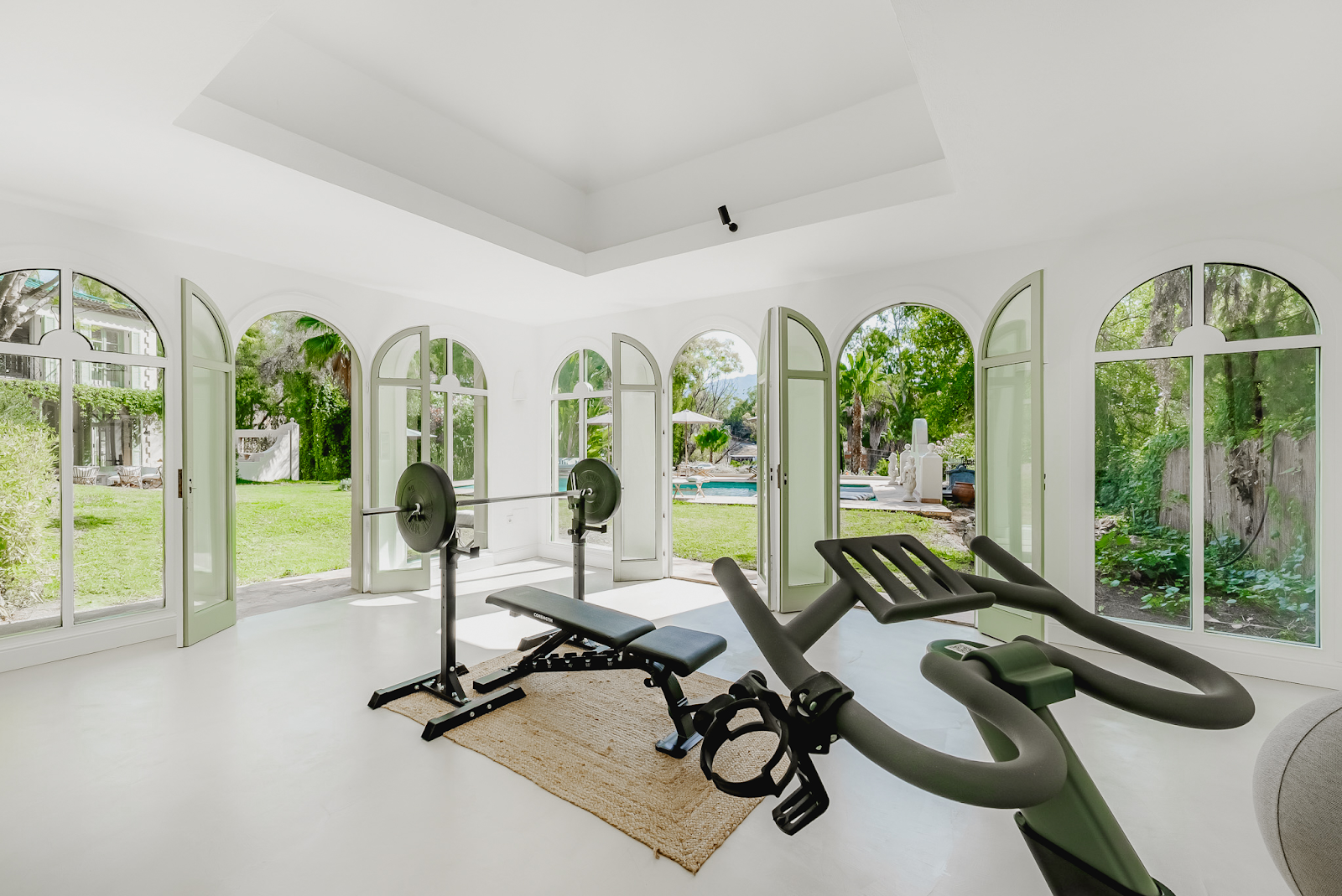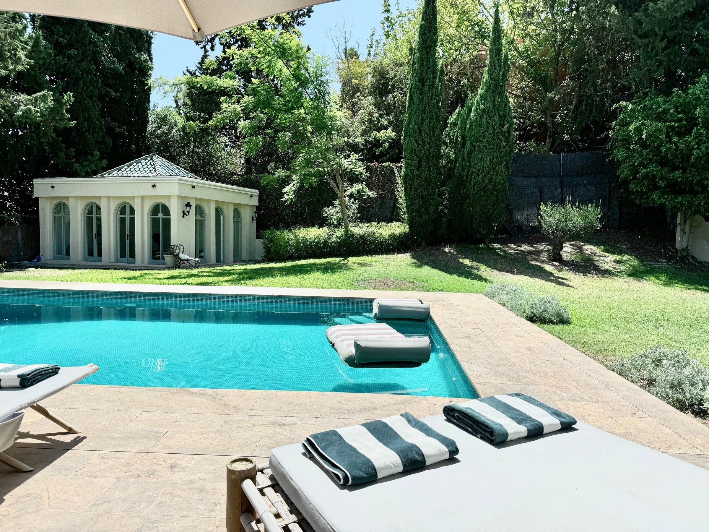 Curiously, you'll find this French-style chateau on the coast of Spain. This stunning home is perfect for families and groups, as it comprises the main building and a couple of outbuildings – one of which features a kitchenette and two of which have interconnecting bedrooms. The large kitchen and dining areas make great spots for social evenings gathered over home-cooked meals, and you can use the media room for movie nights or daytime reading corners. Outside, unwind on one of the balconies, terraces, or by the large pool. For the active members of the group, there's even a gym and a padel court. The town of San Pedro de Alcántara is a five-minute drive away, where you'll find wine bars, historical sites, and sandy beaches. What more could you need?