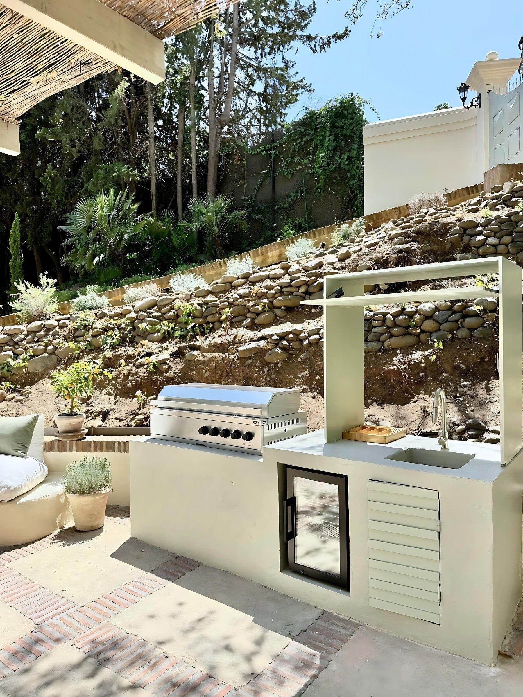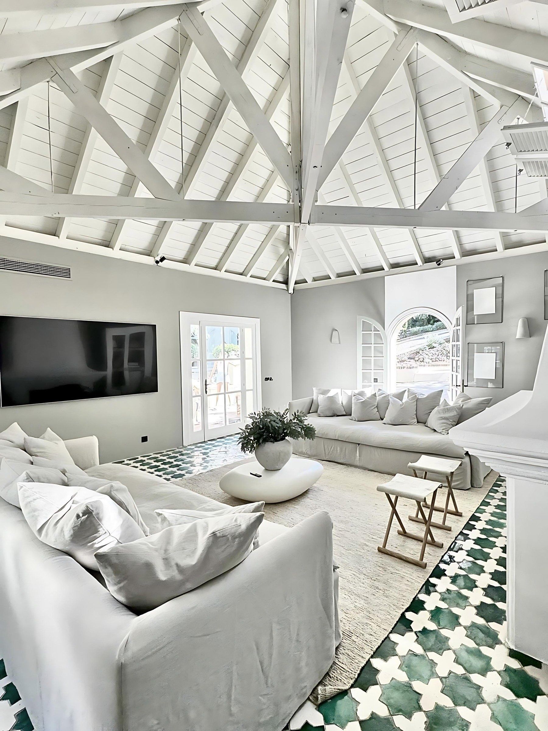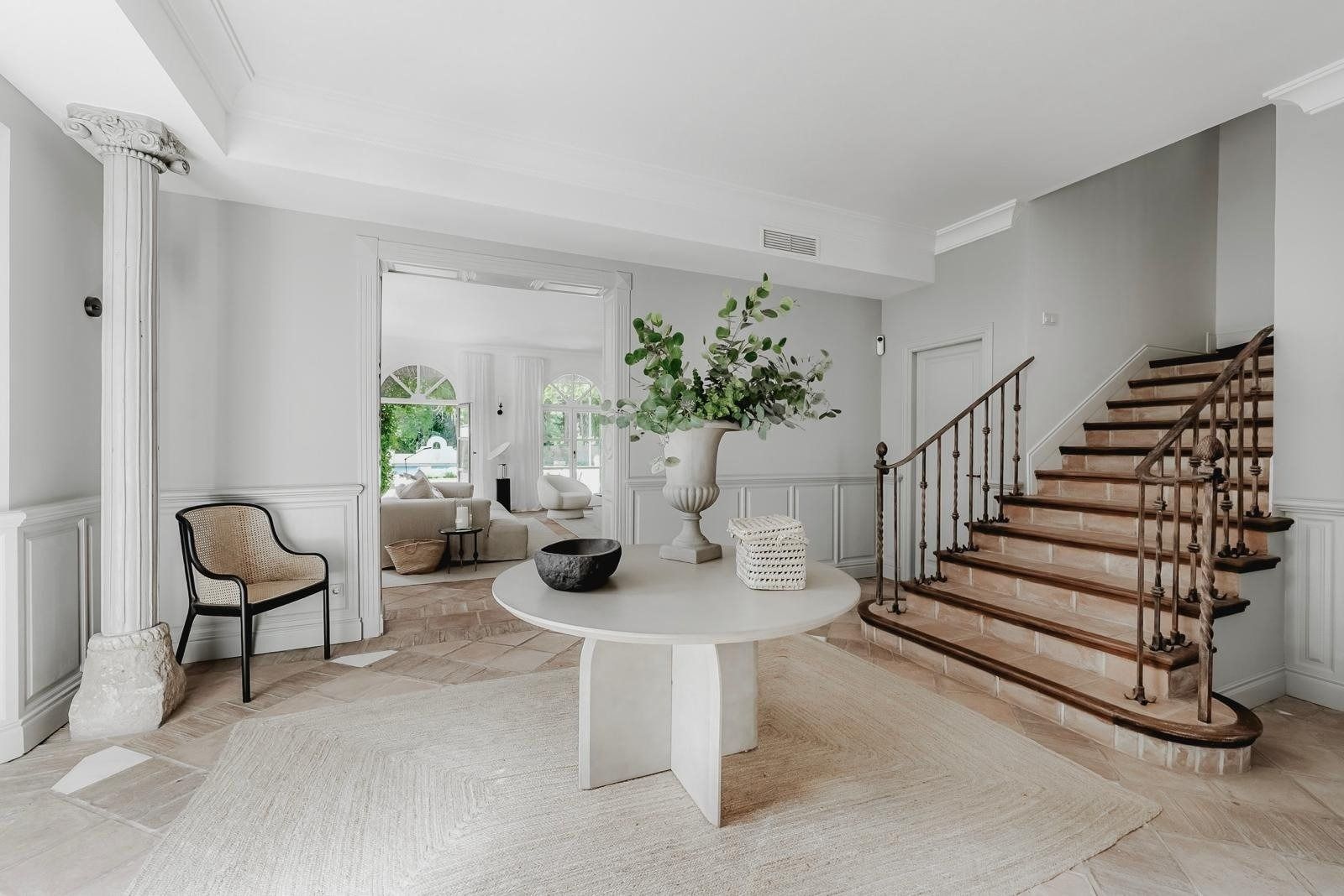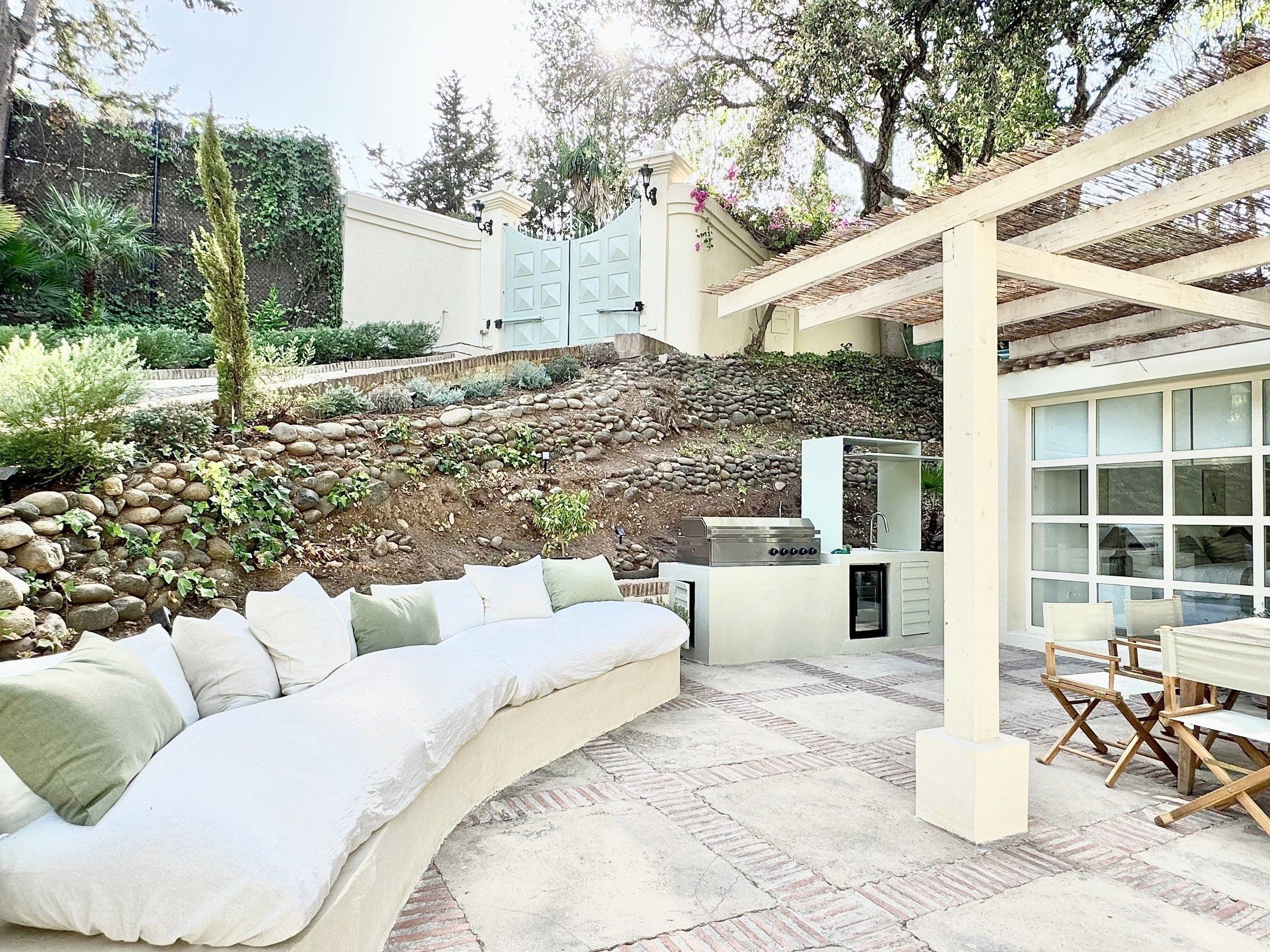Curiously, you'll find this French-style chateau on the coast of Spain. This stunning home is perfect for families and groups, as it comprises the main building and a couple of outbuildings – one of which features a kitchenette and two of which have interconnecting bedrooms. The large kitchen and dining areas make great spots for social evenings gathered over home-cooked meals, and you can use the media room for movie nights or daytime reading corners. Outside, unwind on one of the balconies, terraces, or by the large pool. For the active members of the group, there's even a gym and a padel court. The town of San Pedro de Alcántara is a five-minute drive away, where you'll find wine bars, historical sites, and sandy beaches. What more could you need?