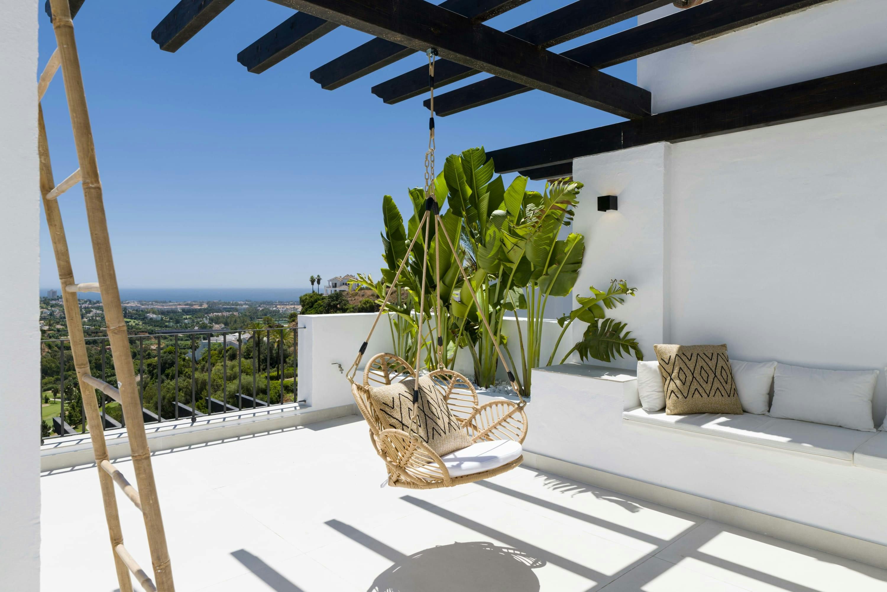 This penthouse should do nicely if you're looking for a Marbella hillside home with va-va-voom. The mountain and sea vistas from the mammoth rooftop terrace are a knockout – as are the panoramas from the shared swimming pool set in the well-tended communal grounds below. If you fancy brushing up on your swing, take your pick from the numerous exclusive golf courses surrounding the home. You'll need a car for beach days along Marbella's coast and dinners out in glitzy Puerto Banus – all just a short drive away.