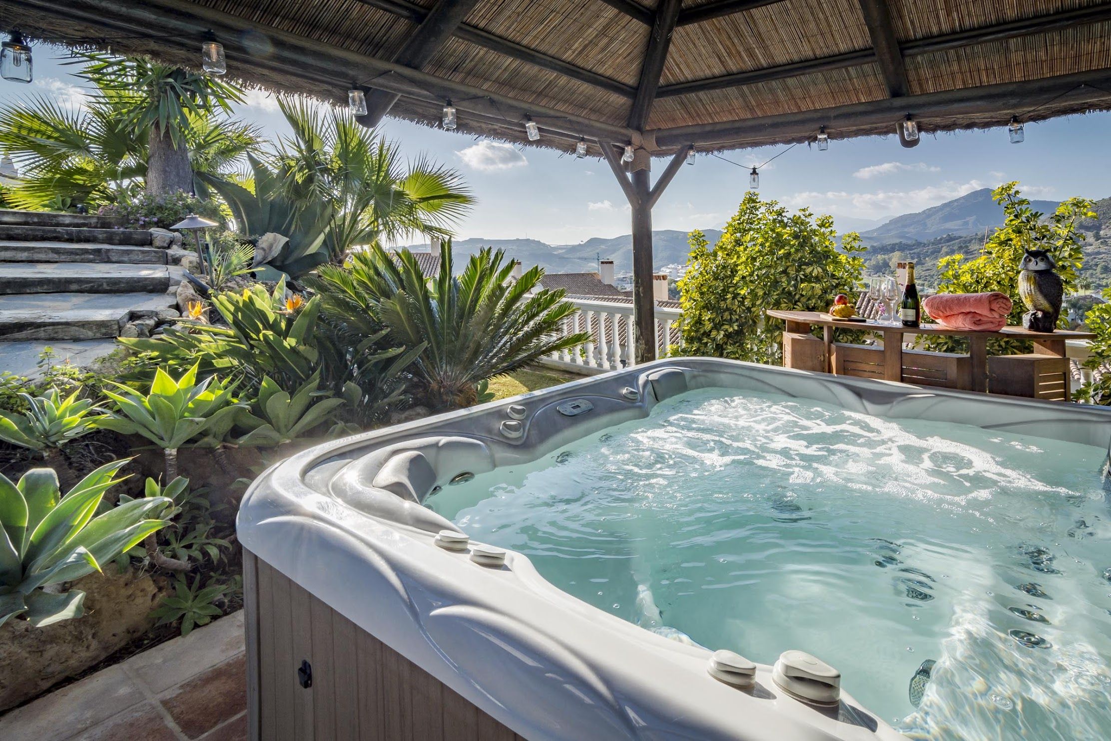 There’s a feeling of exclusivity from the moment you arrive at the gated complex of this palatial villa boasting sweeping views of the Mediterranean and the Marbella Mountains. Newly renovated, the interiors are outstanding, and outside, there are vast sun terraces leading to a lengthy private pool and hot tub for sundowners. When you're ready to explore, the golf courses and soft blonde sands of San Pedro and Puerto Banus are just a ten-minute drive. Need help organising day trips? The concierge is on hand to help with that.