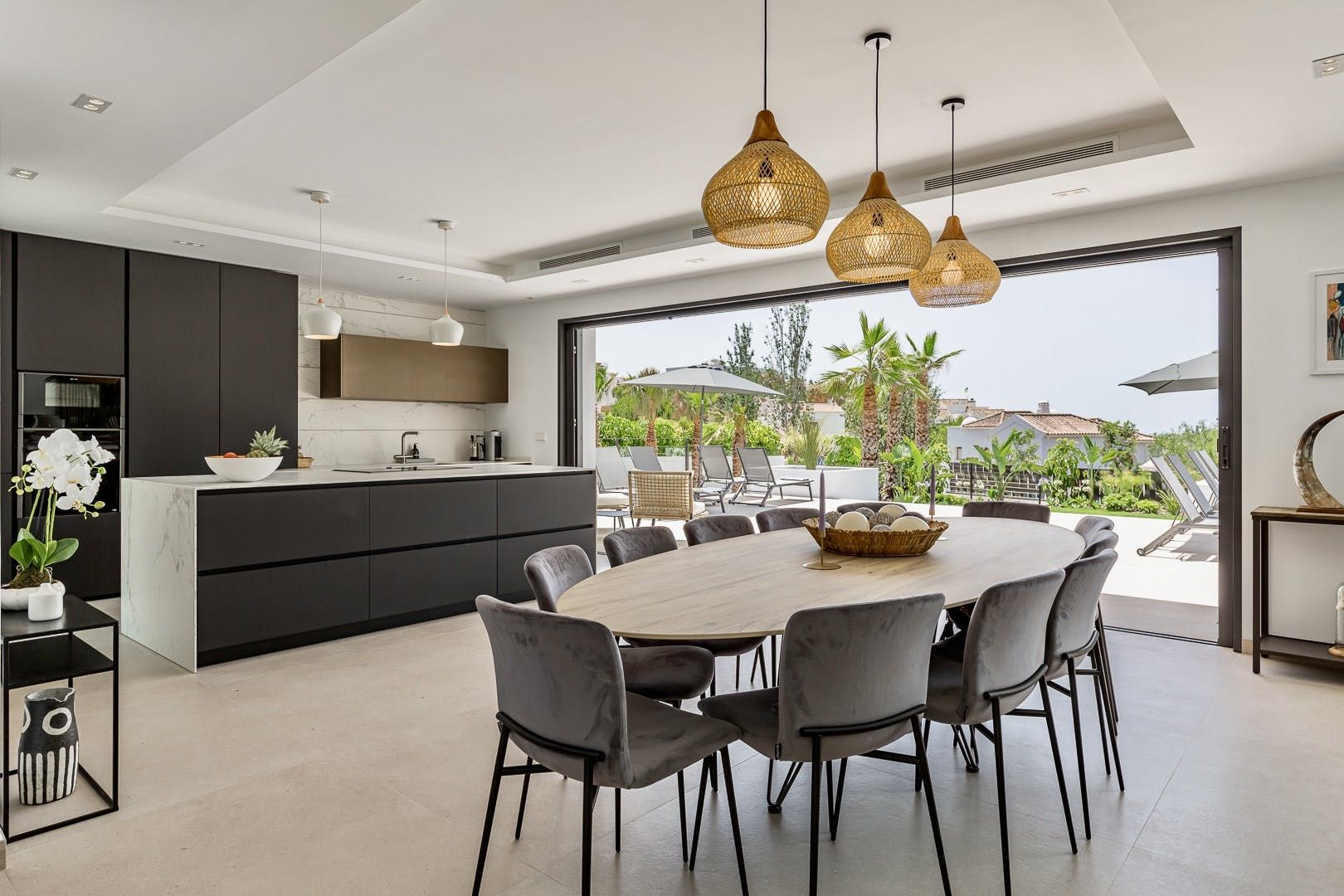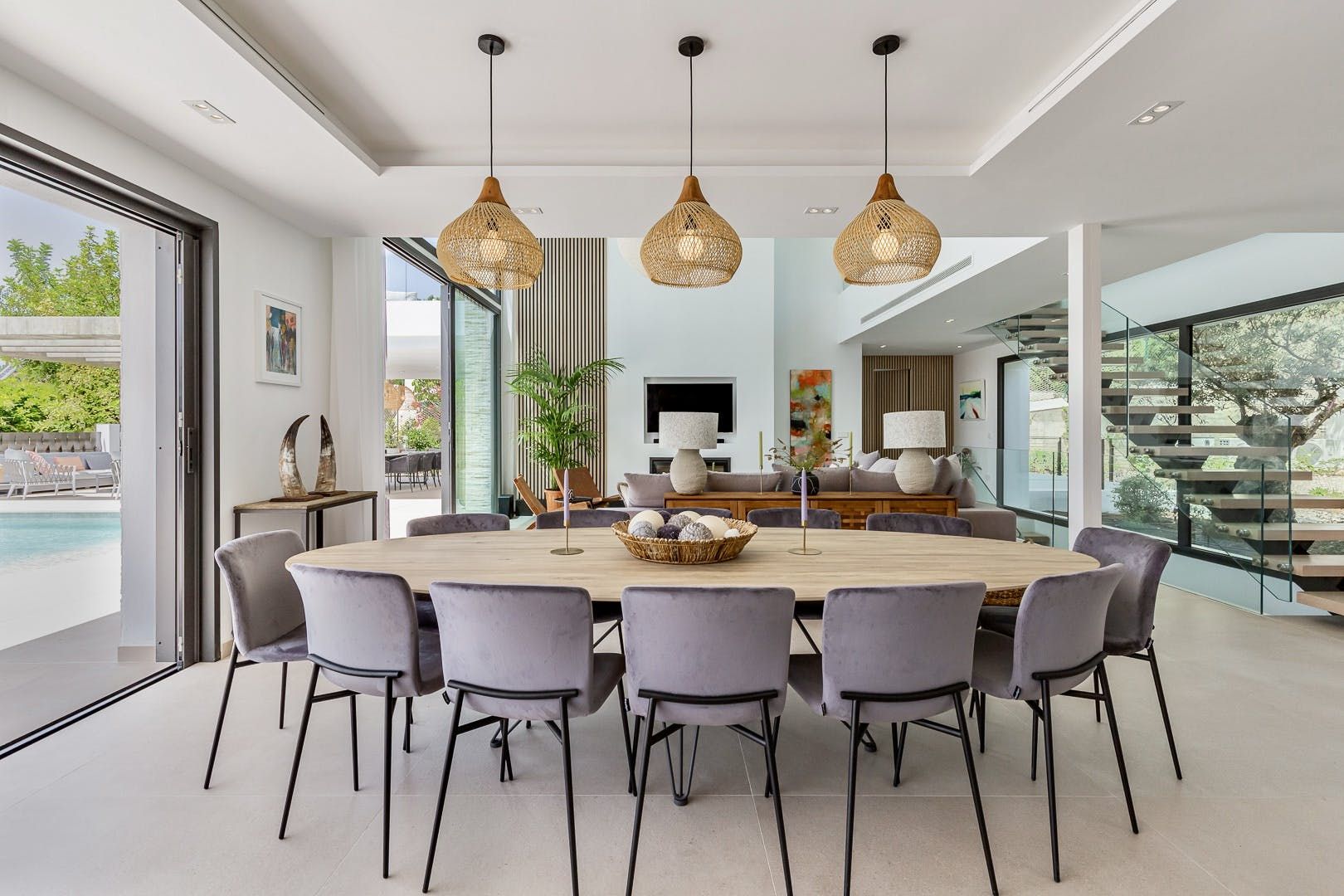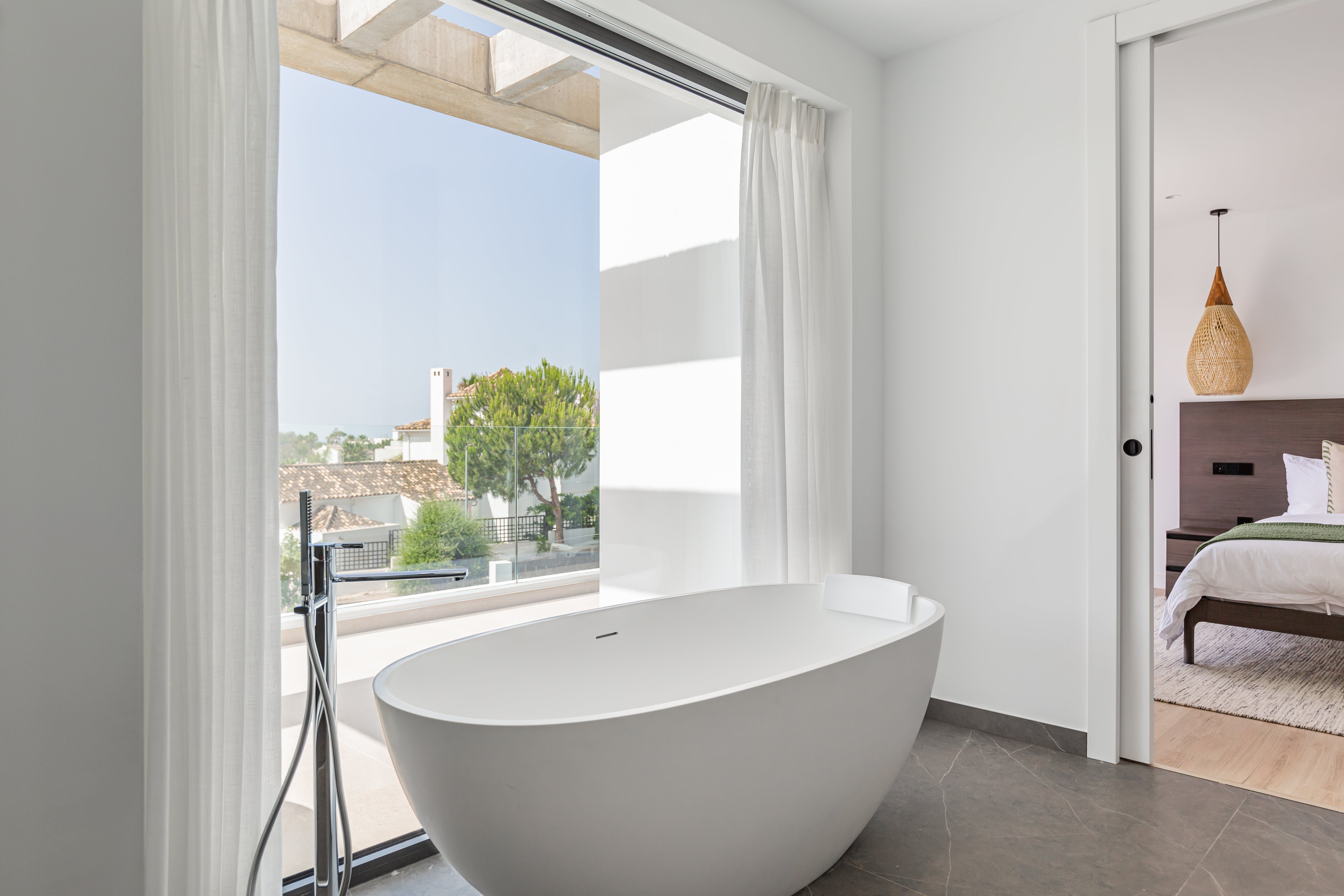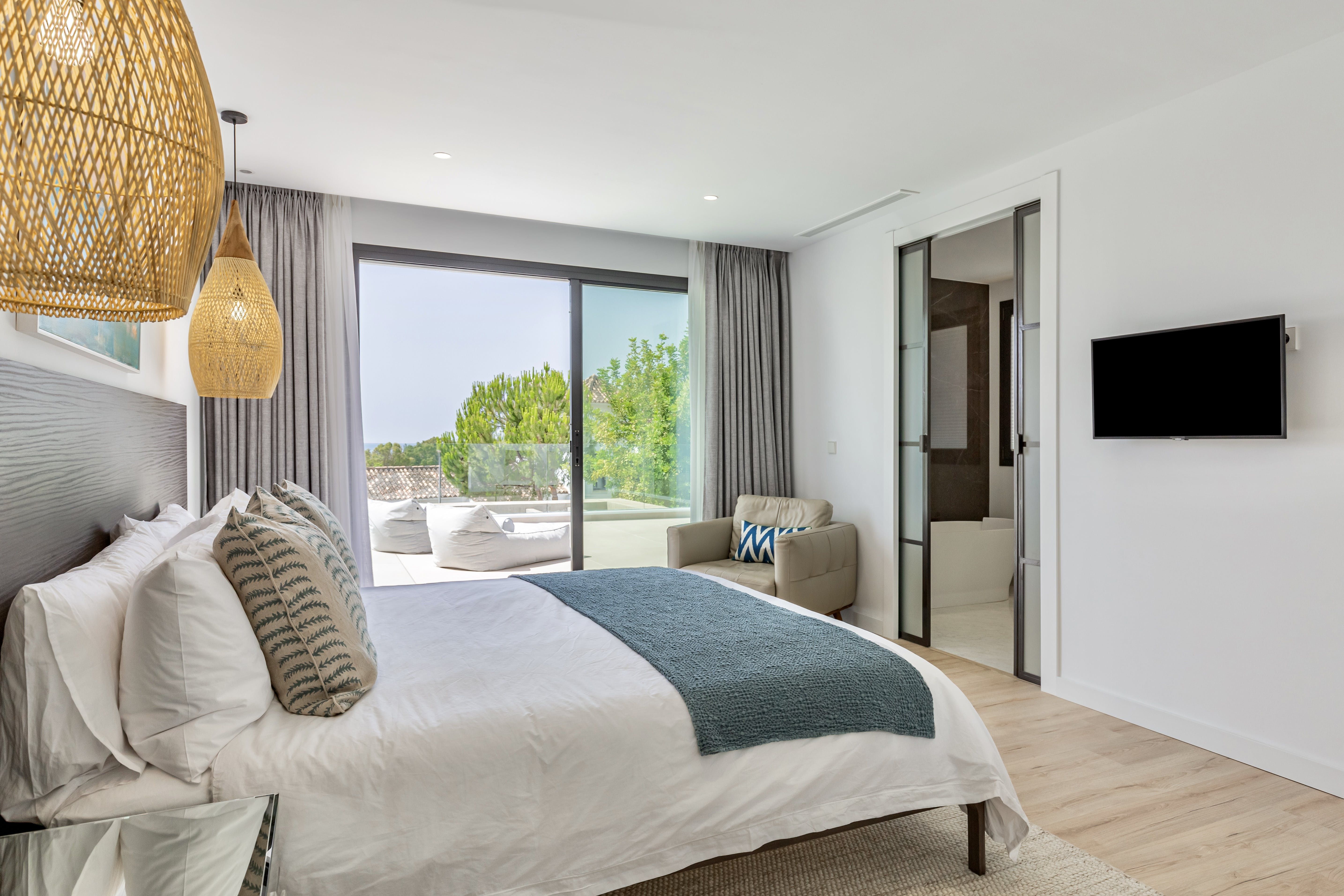 This home is a sun-kissed sanctuary with beautiful views across Atalaya Golf course and the sea – on a clear day you'll see the coast of Africa. Outside, you can experience pure relaxation while lounging by the pool – which can also be heated for an additional fee. There are also four terraces, a cinema room and a home gym here, ensuring plenty of entertainment options for the whole group. Your host can arrange child-friendly amenities and one of the rooms is adapted for guests with reduced mobility, making this a great option for a family gathering. You will need a car to get around the area, but it’s just a short drive to the nearest golf courses while Marbella and Puerto Banús are about ten minutes by car.