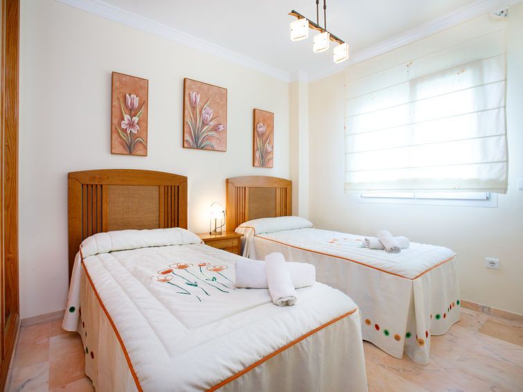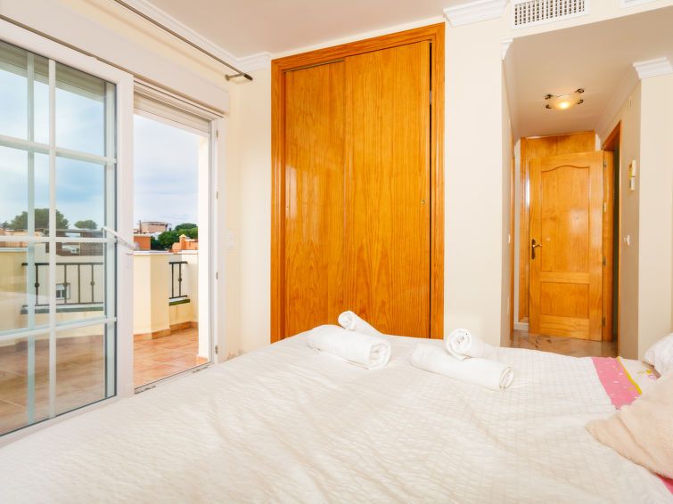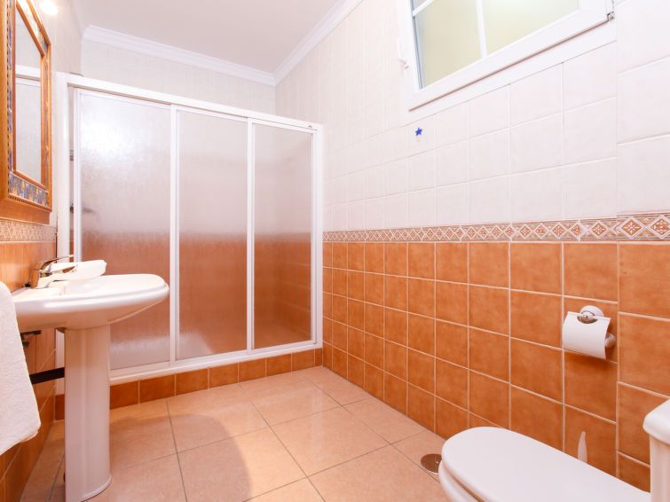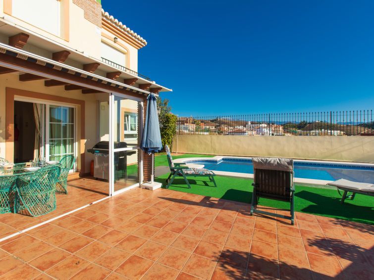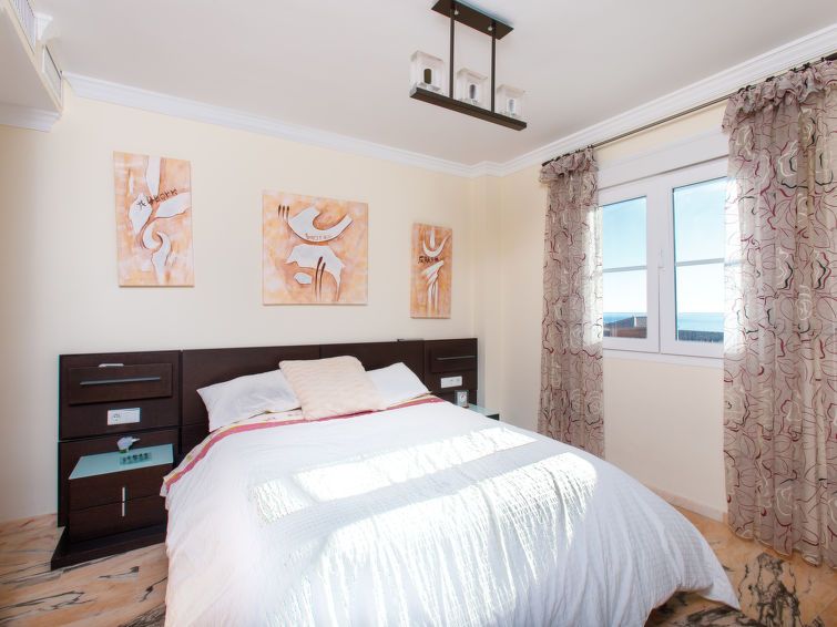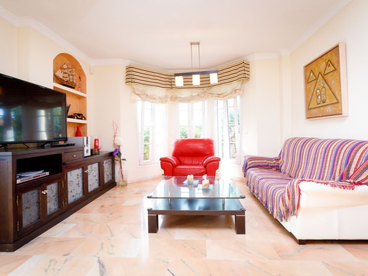 "La Esperanza", 6-room house 236 m2, south facing position. Spacious, comfortable furnishings: living/dining room with digital TV. Exit to the patio, to the swimming pool, south facing position. 1 room with 1 french bed (1 x 150 cm, length 190 cm), TV. Kitchen-/living room (oven, dishwasher, 4 ceramic glass hob hotplates, microwave, freezer, electric coffee machine).