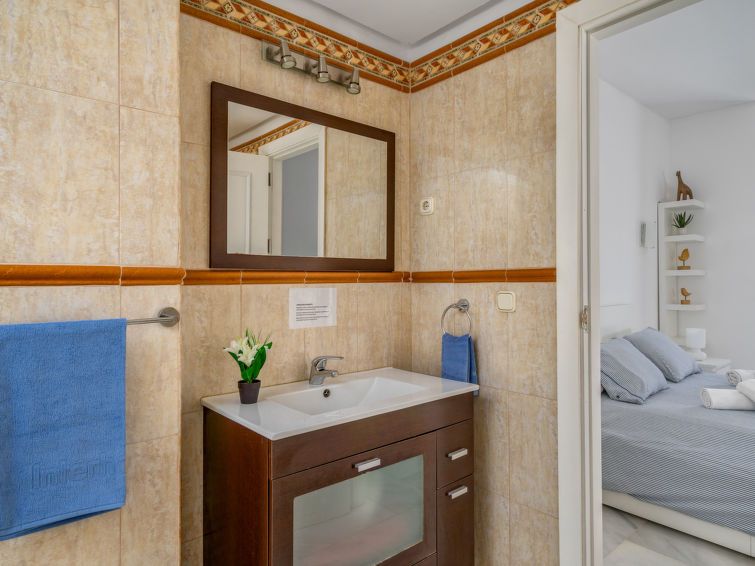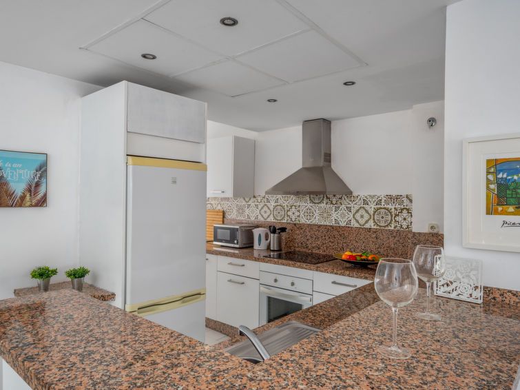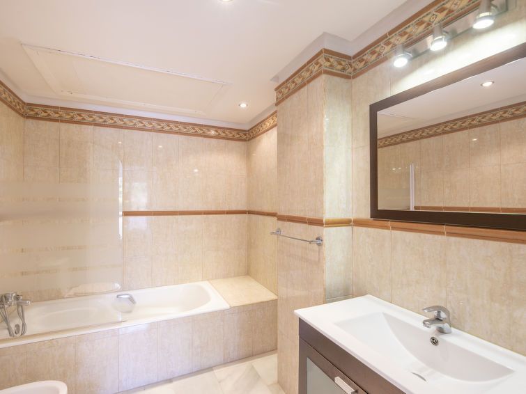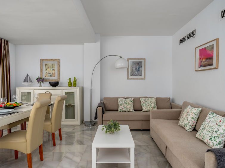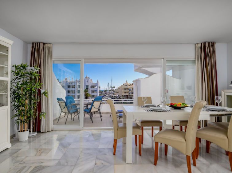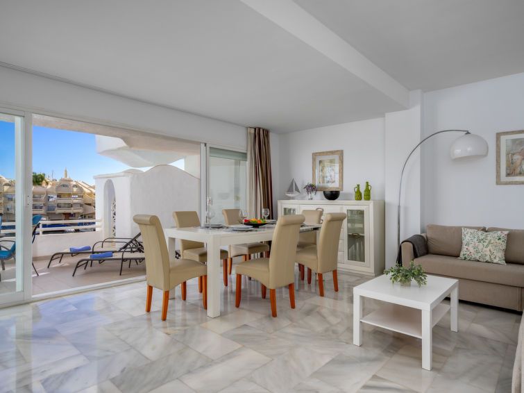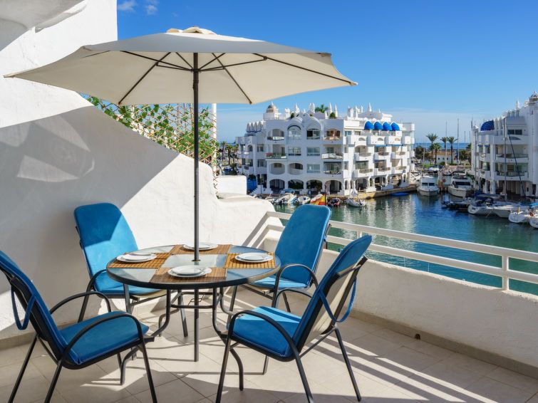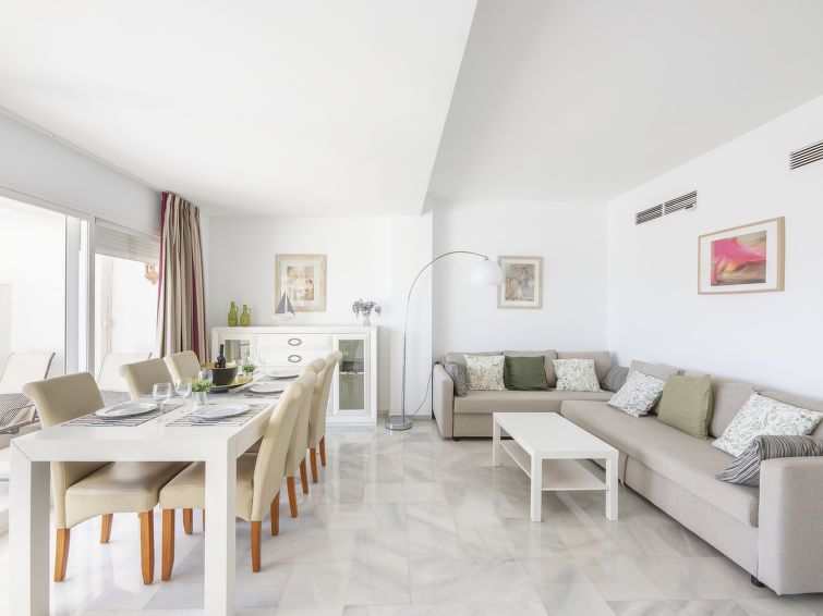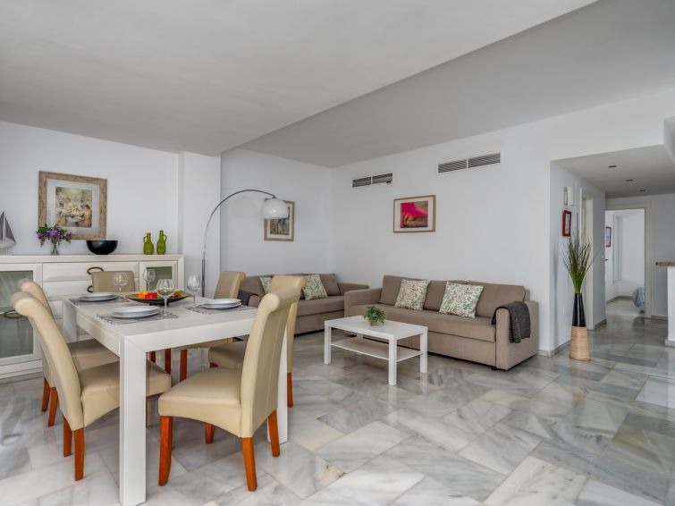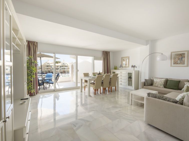 "Puerto Marina", 3-room apartment 100 m2 on 1st floor. Object suitable for 4 adults + 2 children. Beautiful and luxurious furnishings: living/dining room with 1 sofabed, digital TV and flat screen. Exit to the terrace, south facing position. 1 double bedroom with 1 french bed (150 cm).