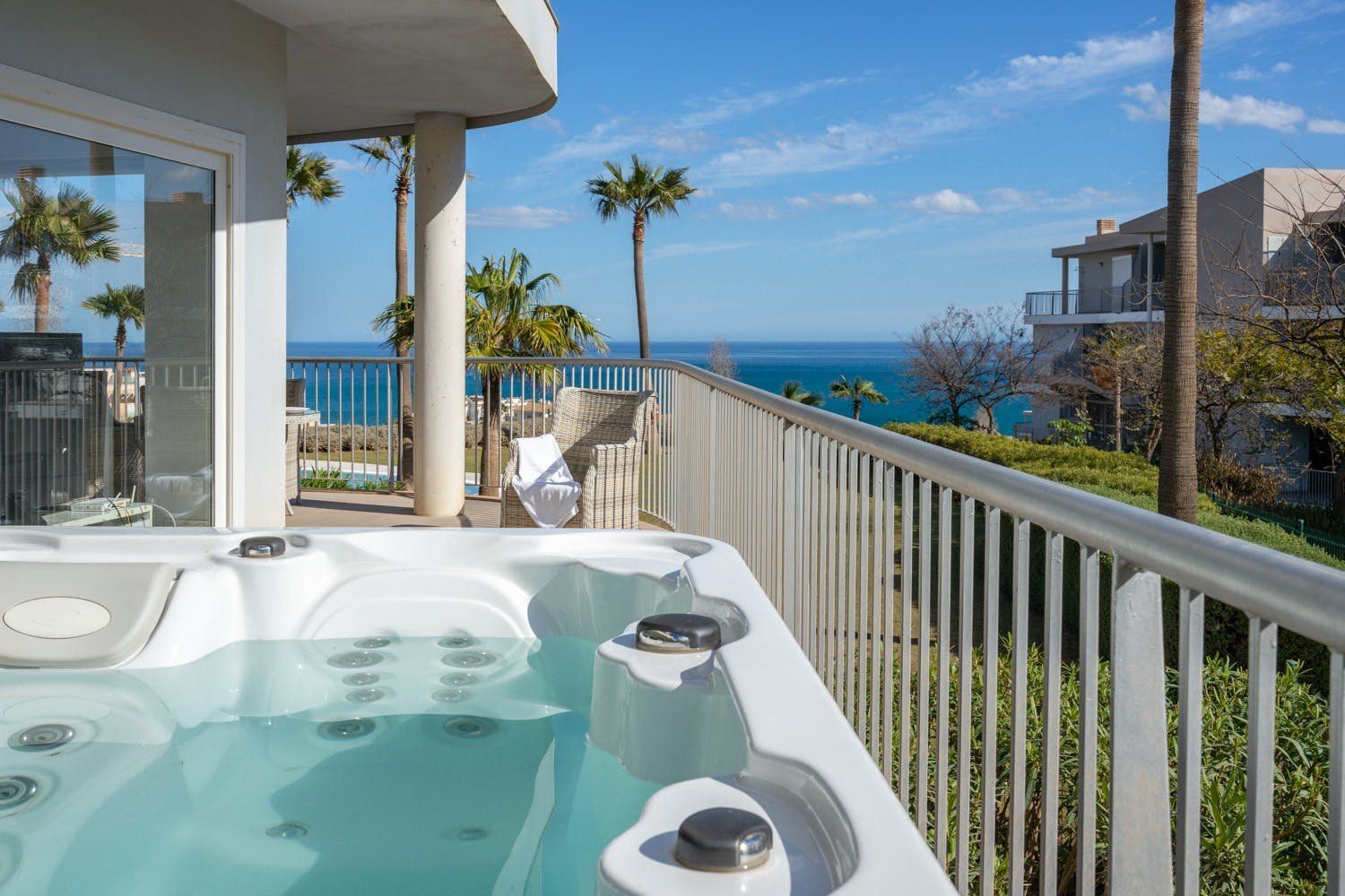 Set between Fuengirola and Benalmadena, this apartment offers a range of restaurants and shops on its doorstep, while also being just a short drive from the sands of Playa de Carvajal. Guests will have their own terrace to enjoy, perfect for dining alfresco while admiring the sea views, as well as a private hot tub for soaking under the stars. The designs may be minimal, albeit a little dated, but the apartment is practical for a stay along Spain's Costa del Sol. Additionally, with sports clubs, beach bars, and an 8km-long promenade nearby, this location is perfect for exploring the region.
