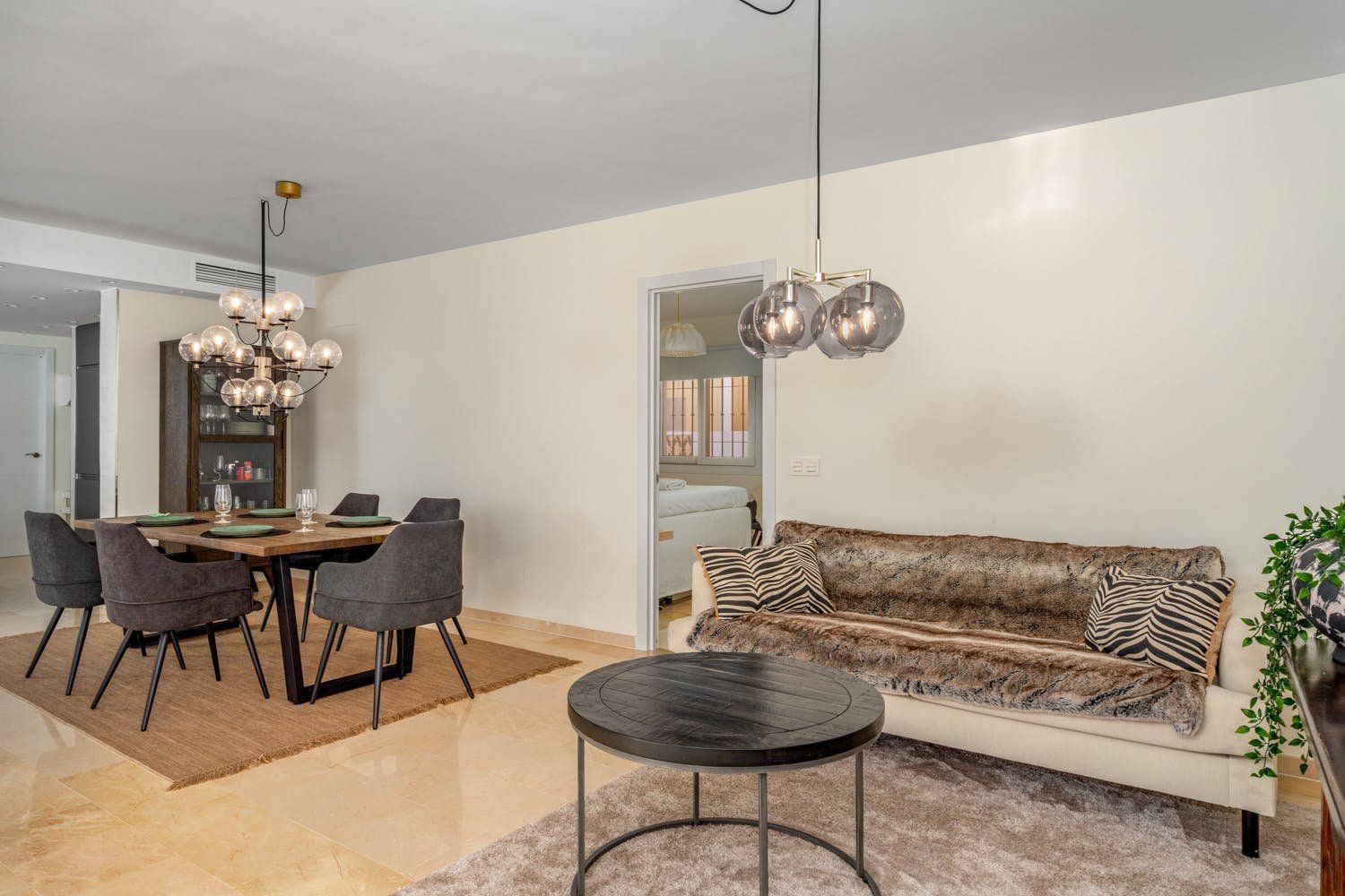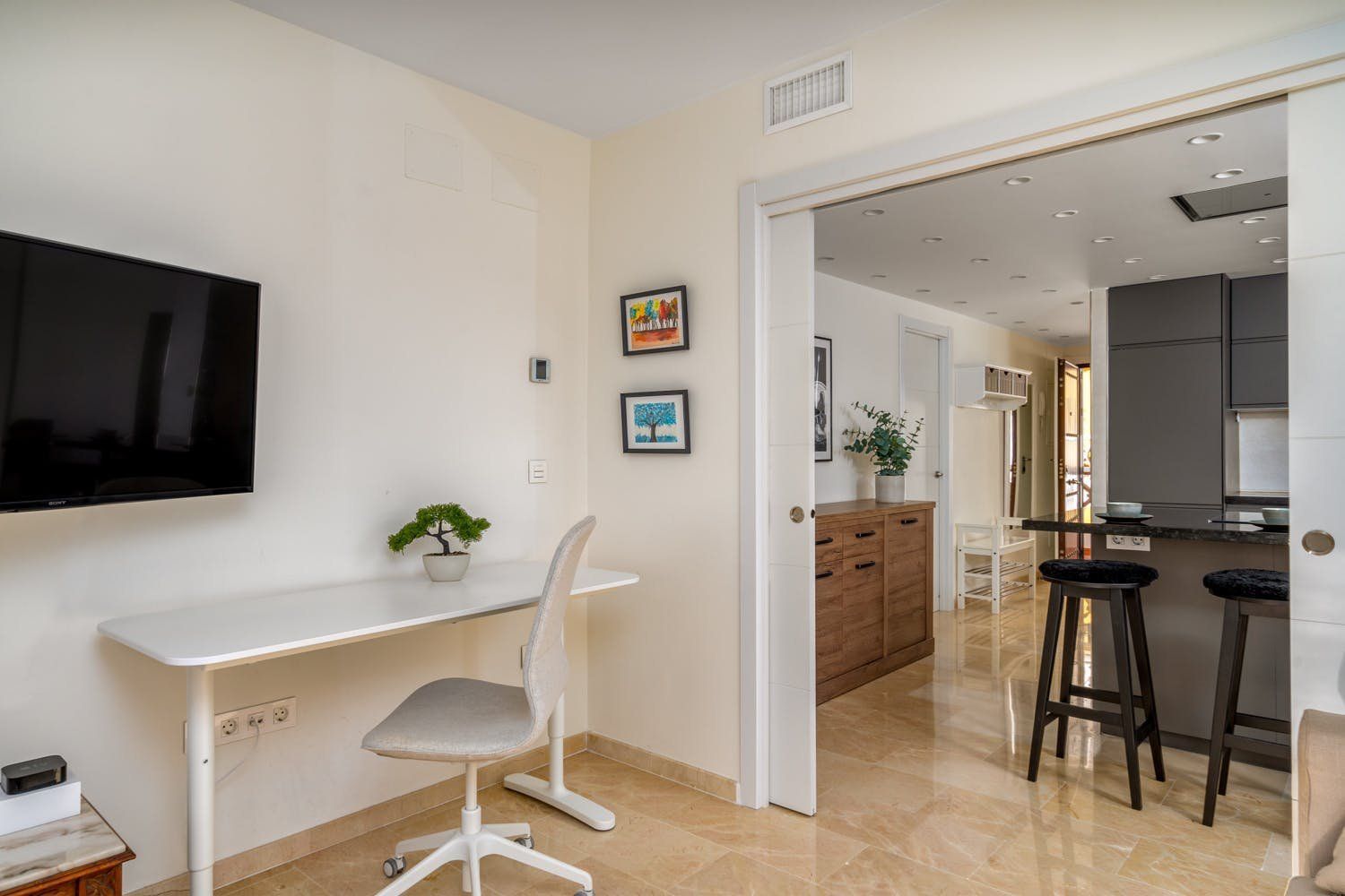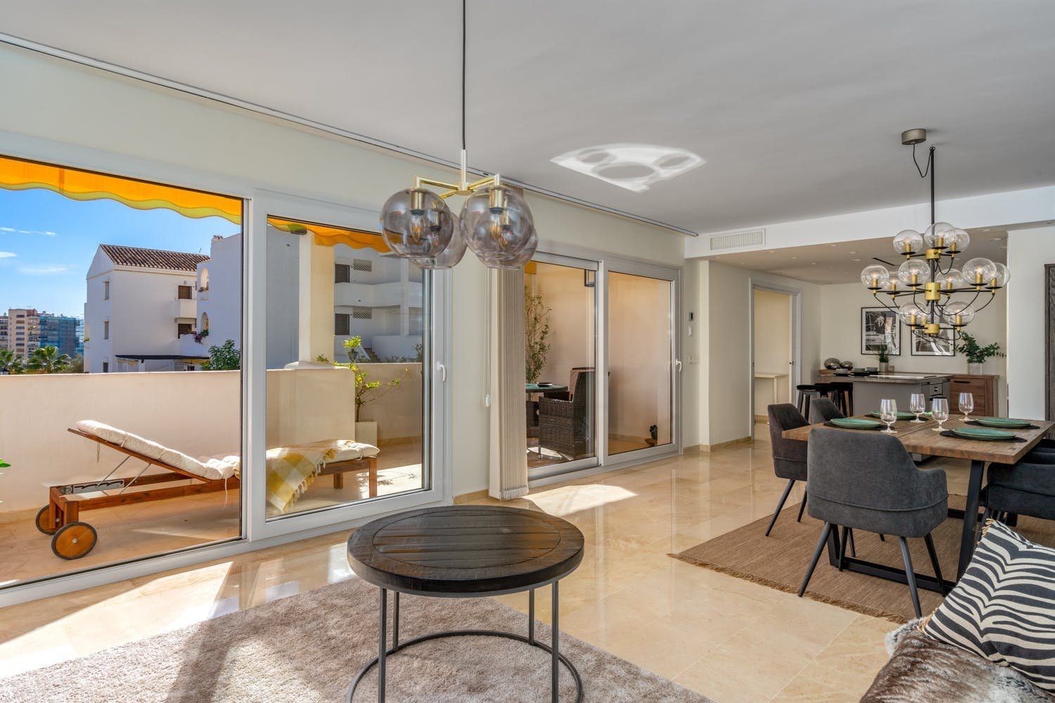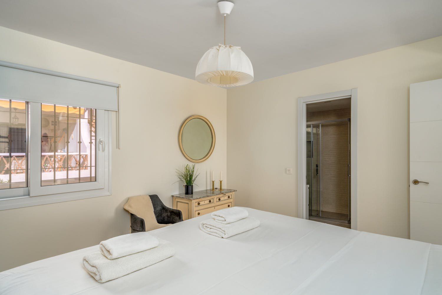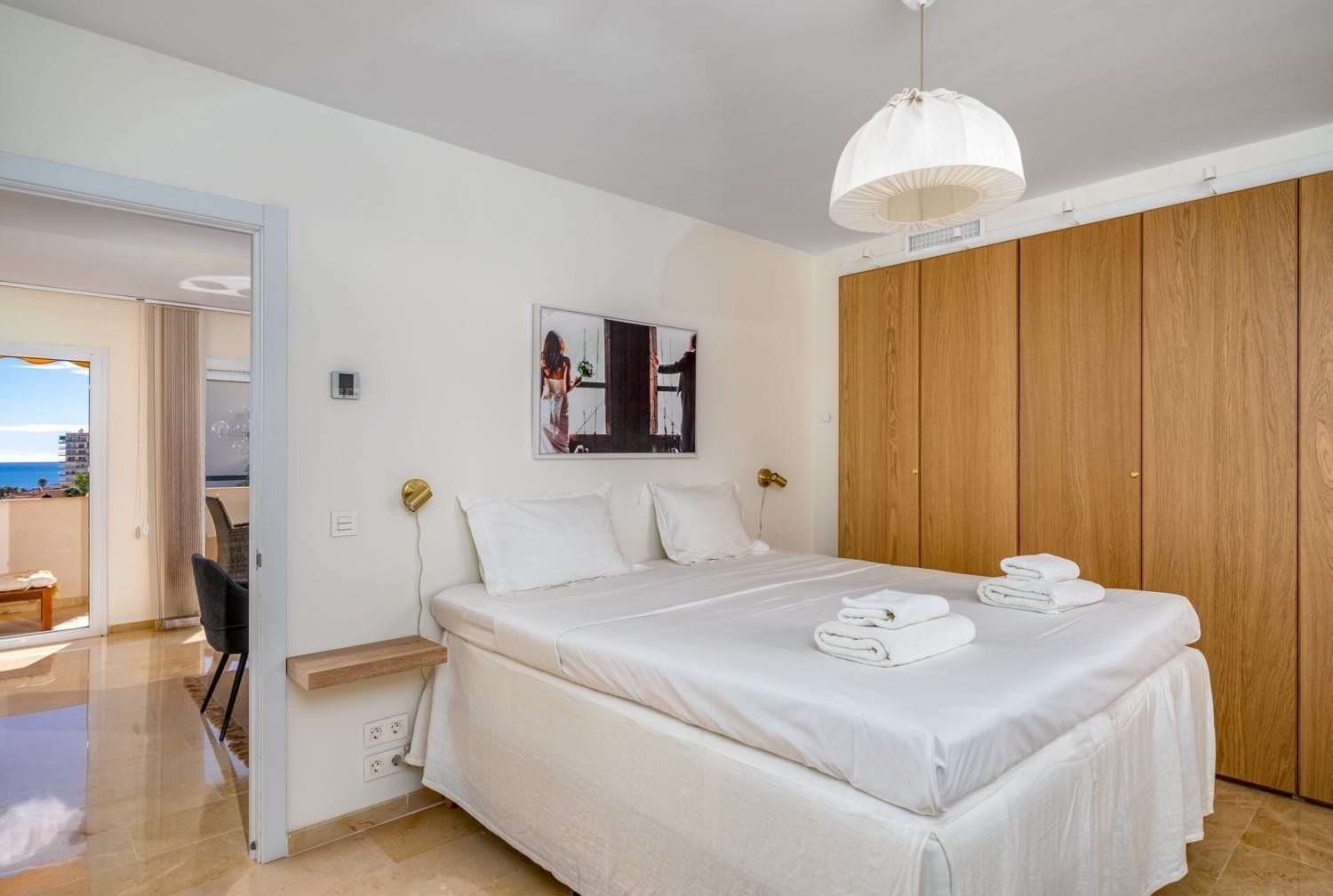 This apartment is in one of the best areas of Benalmadena, just a three-minute walk from the soft-sand beach. With a private roof terrace, guests can enjoy stunning views of the sea and mountains. You’ll find all the essentials inside – a fully-equipped kitchen and open living room. The added bonus is the fitness room with a private sauna and treadmill that overlooks the mountains of Benalmadena and Mijas. Plus, there’s a shared swimming pool downstairs for those hot summer days.