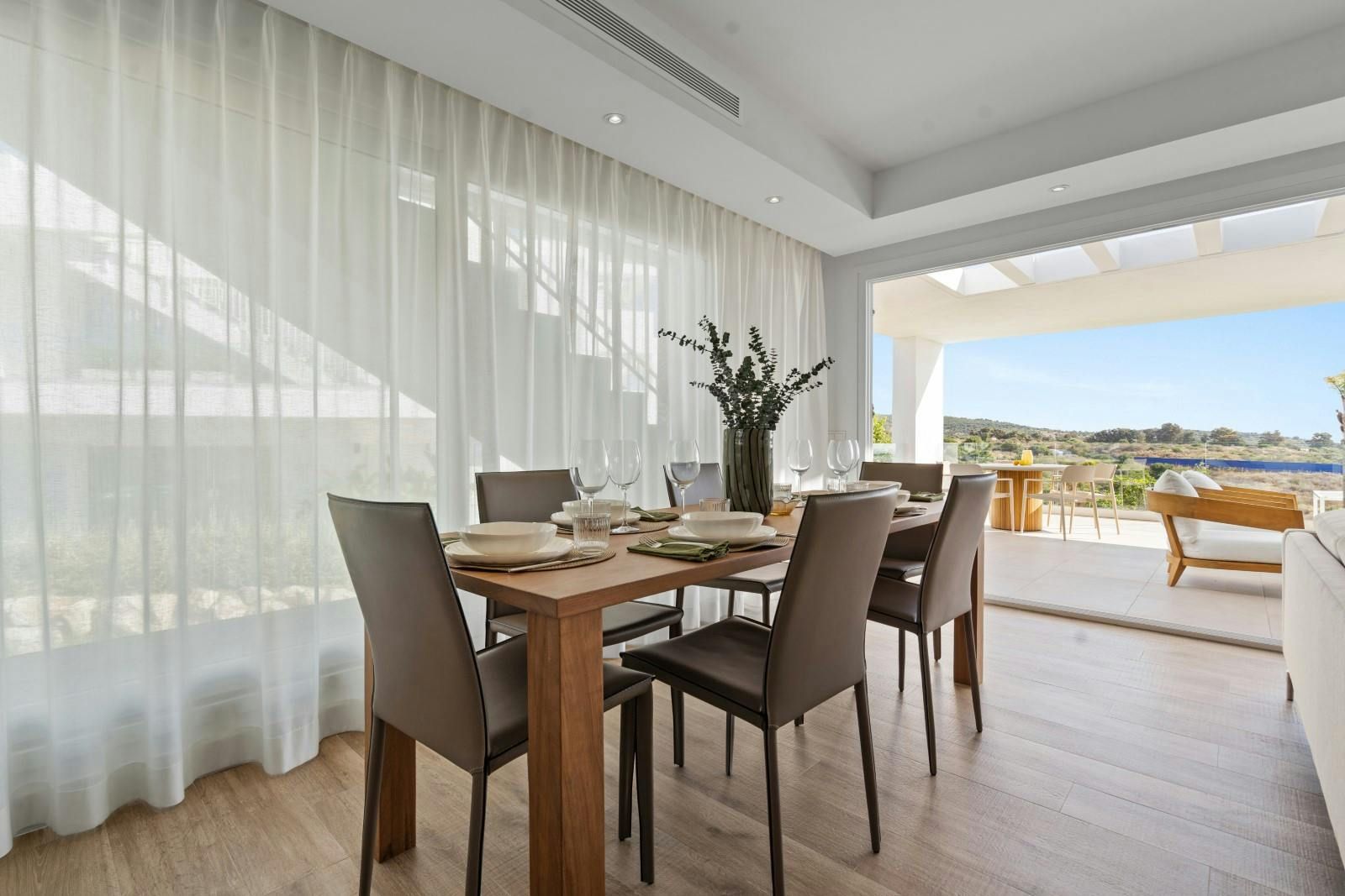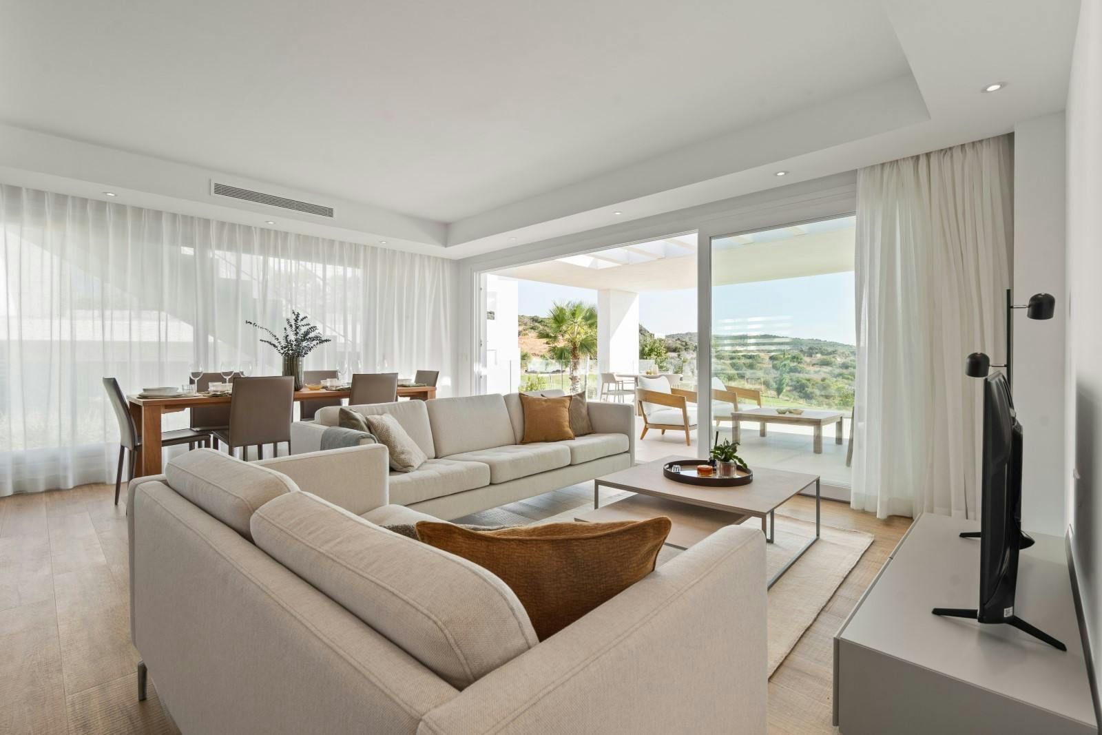 With beautiful views and a large private terrace, this home is a Mediterranean sanctuary with a lot to offer. The rooms are cool, contemporary and well suited to families with one of the bedrooms featuring an en-suite bathroom for privacy. You can enjoy access to the resort facilities – including a swimming pool, gym, sauna and restaurant. It’s worth noting you will need a car to explore further afield, but it’s just 4-kilometres to the beach in Estepona as well as the town centre for restaurants and shops.