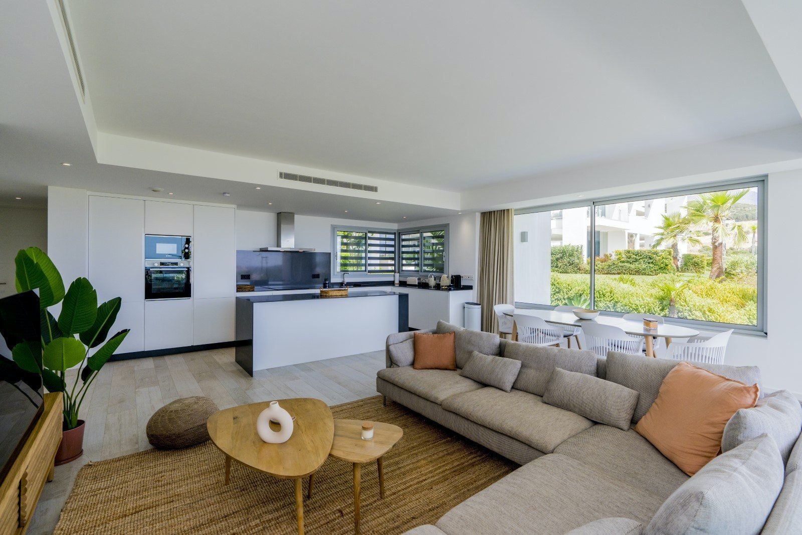 Taken in and of itself, we'd be quite impressed by this ground-floor apartment in Estepona. The huge windows and glass doors let in ample amounts of Andalusian sunshine, an asset that's only accentuated by the bright colour palette that rarely veers away from whites and neutrals. We've only got kind words for the minimalist kitchen, as well as the similarly chic bedrooms and bathrooms that also cut out unnecessary accoutrements. To top it all off, there's a private garden in which to catch some rays during summer afternoons.
