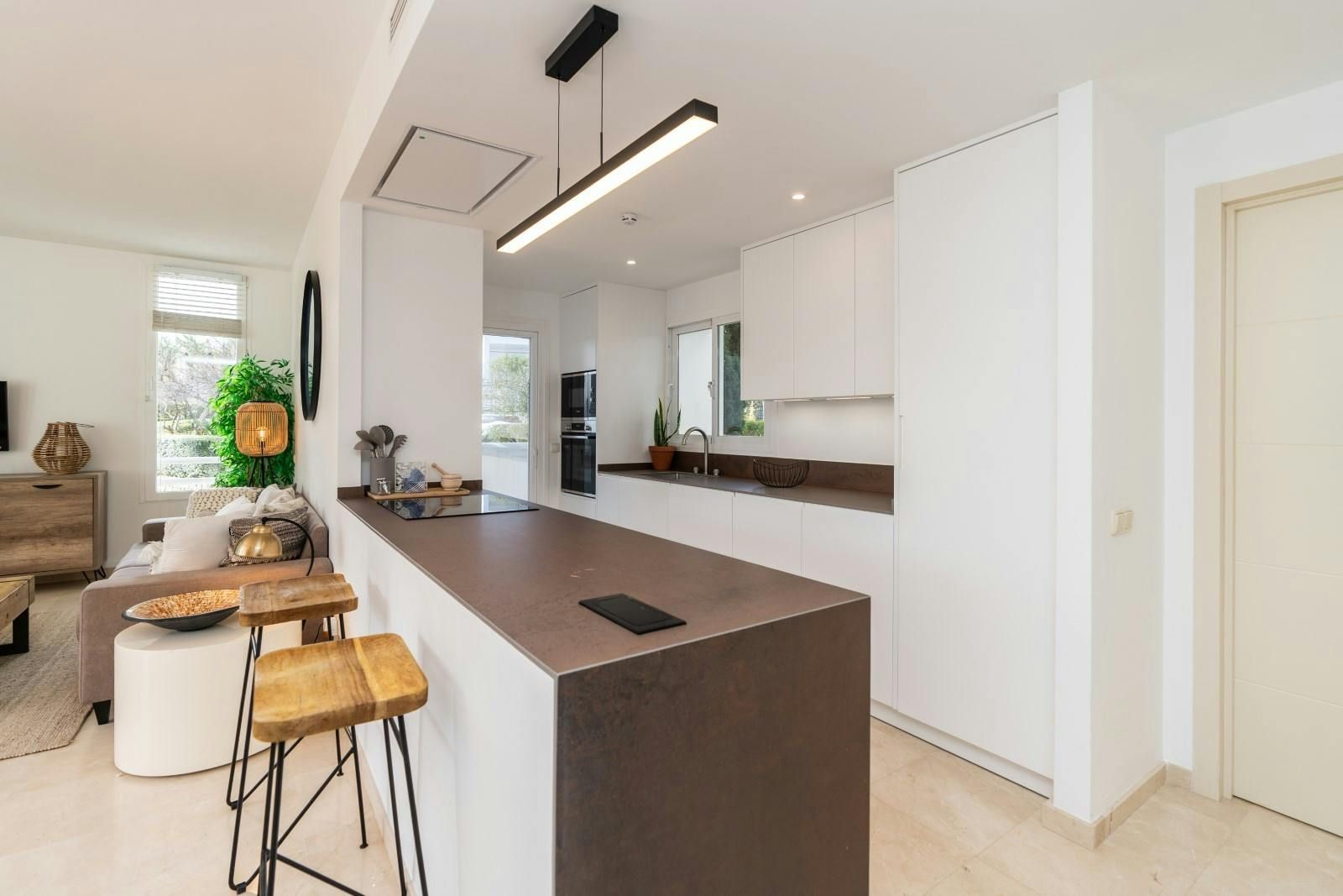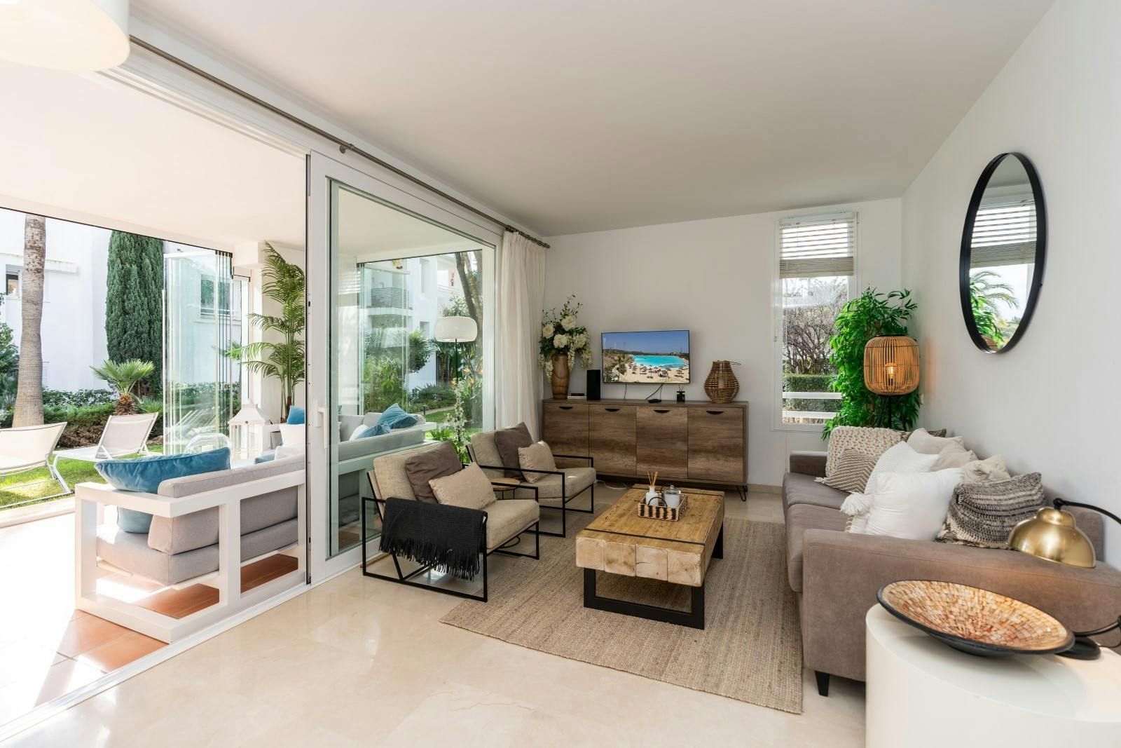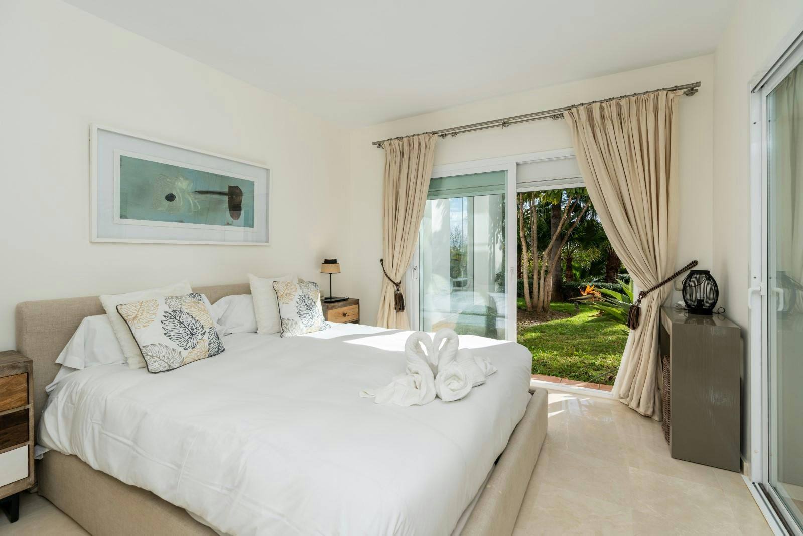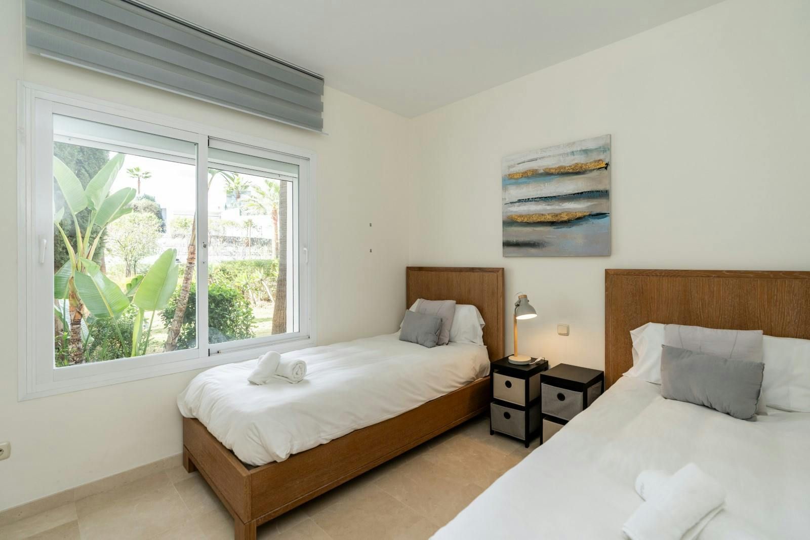 This apartment sits within a sought-after resort, offering an easy-going escape on the Costa del Sol. Surrounded by palm-filled gardens, it comes with access to a huge lagoon – a turquoise showstopper with sandy beaches and calm, crystal-clear waters surrounding it. There’s plenty more to enjoy on site too, from swimming pools and saunas to two restaurants, so you may never feel the need to leave. The apartment itself is comfortable and well-equipped, with a practical kitchen and a terrace opening onto the communal garden, perfect for slow, sun-soaked mornings. And if you do fancy exploring, Estepona’s charming old town and nearby beaches are just a short drive away.
