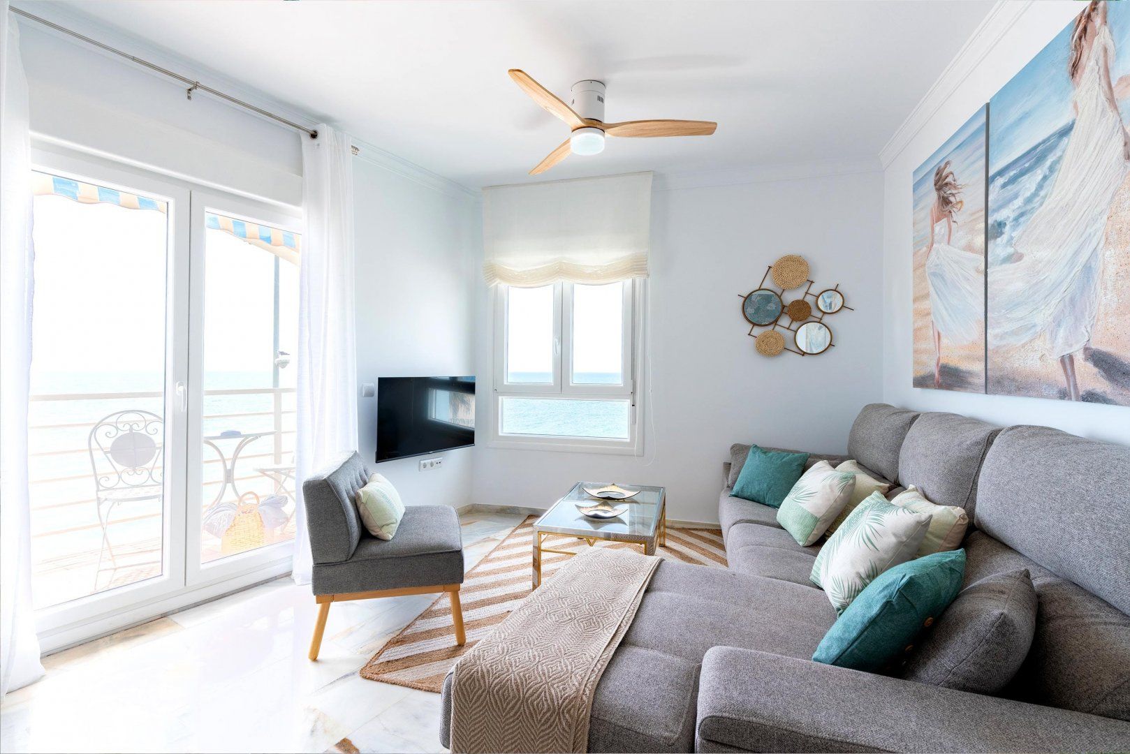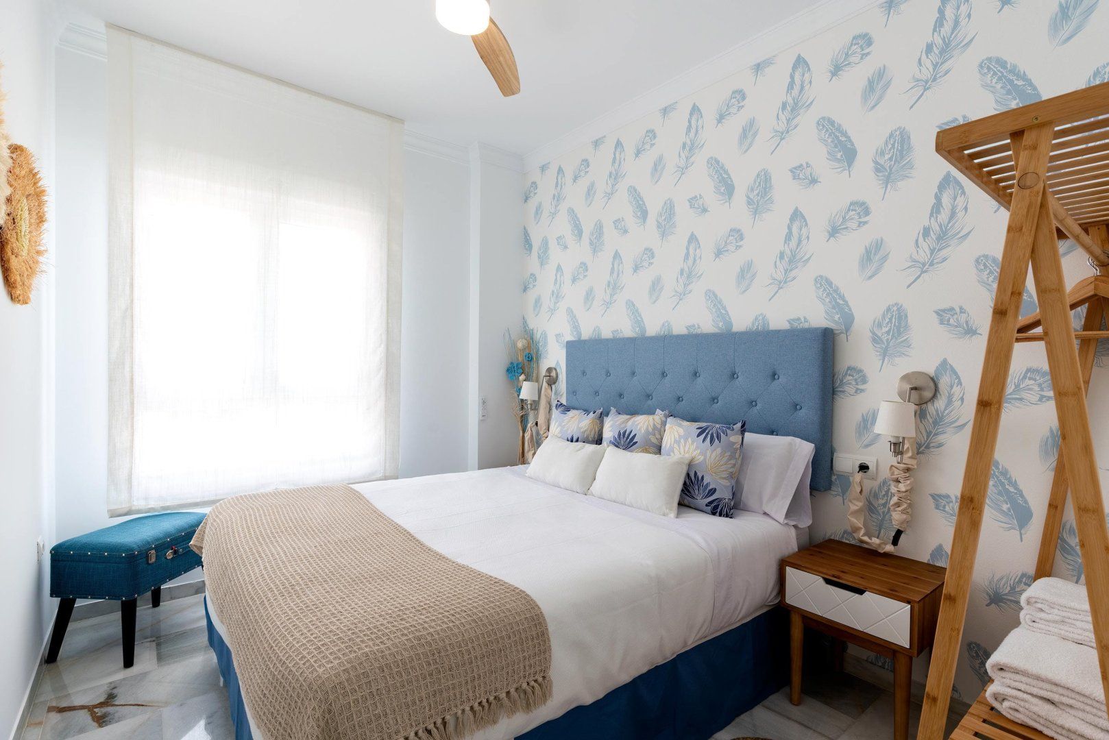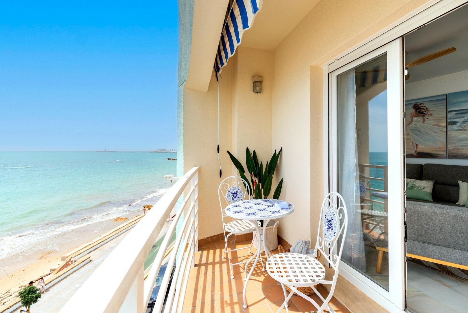 Overlooking the popular Playa de la Victoria, this seafront apartment is a great find for slightly larger groups seeking something comfortable and convenient in Cádiz. Fitting up to six across three tastefully furnished bedrooms, there's plenty of privacy for couples and family members, although only one pair gets their own en-suite bathroom. The living room is bright and expansive, with plenty of seating and room for a dining table, while the kitchen is slightly smaller but just as well stocked. The home's real gem is the balcony, where you can admire the sunsets over the bay and enjoy an evening drink, before getting ready for a half hour walk up the coast to Cádiz's historic city centre.