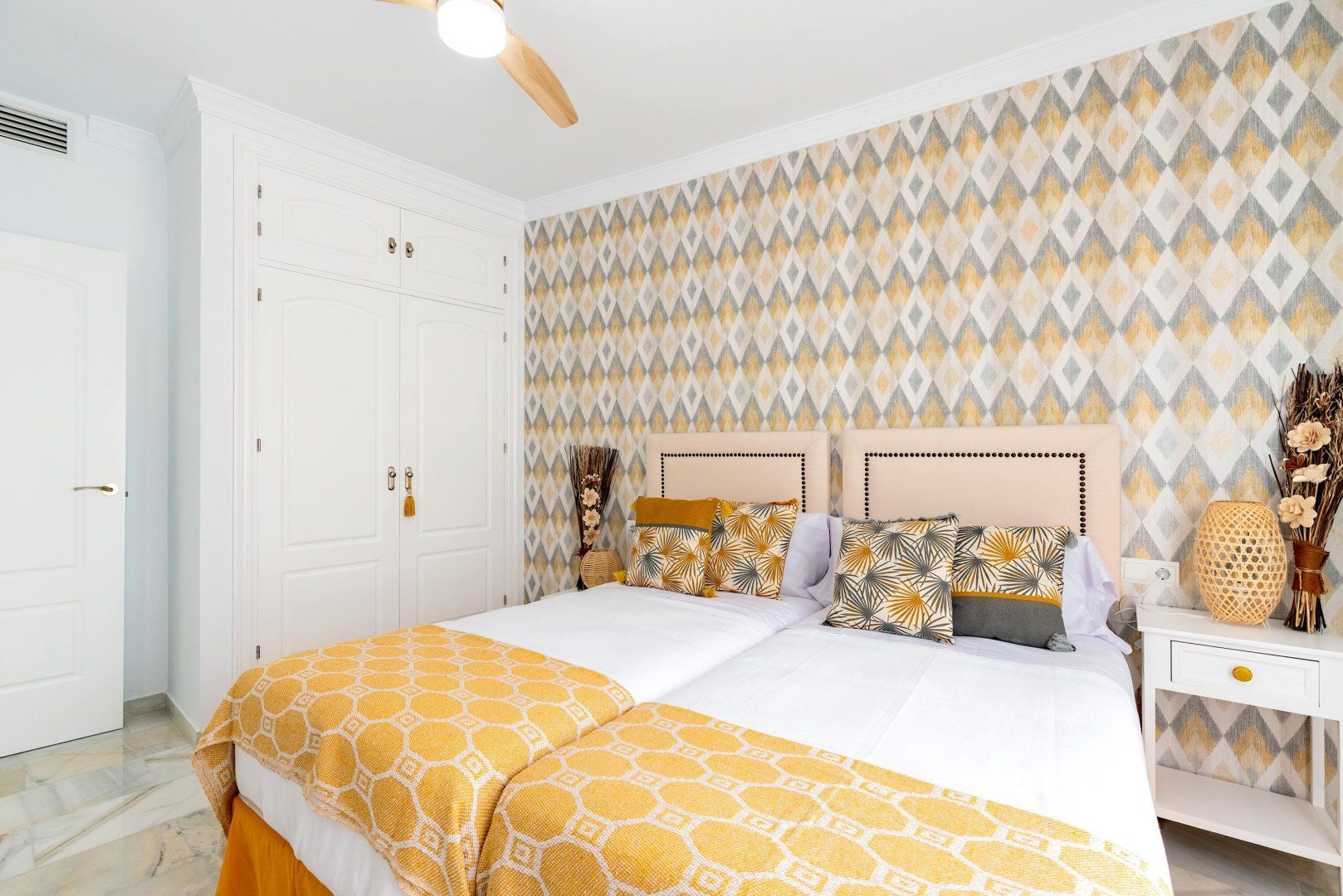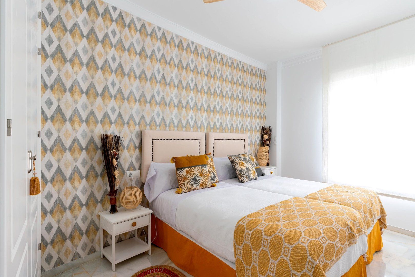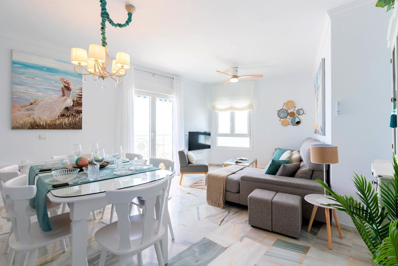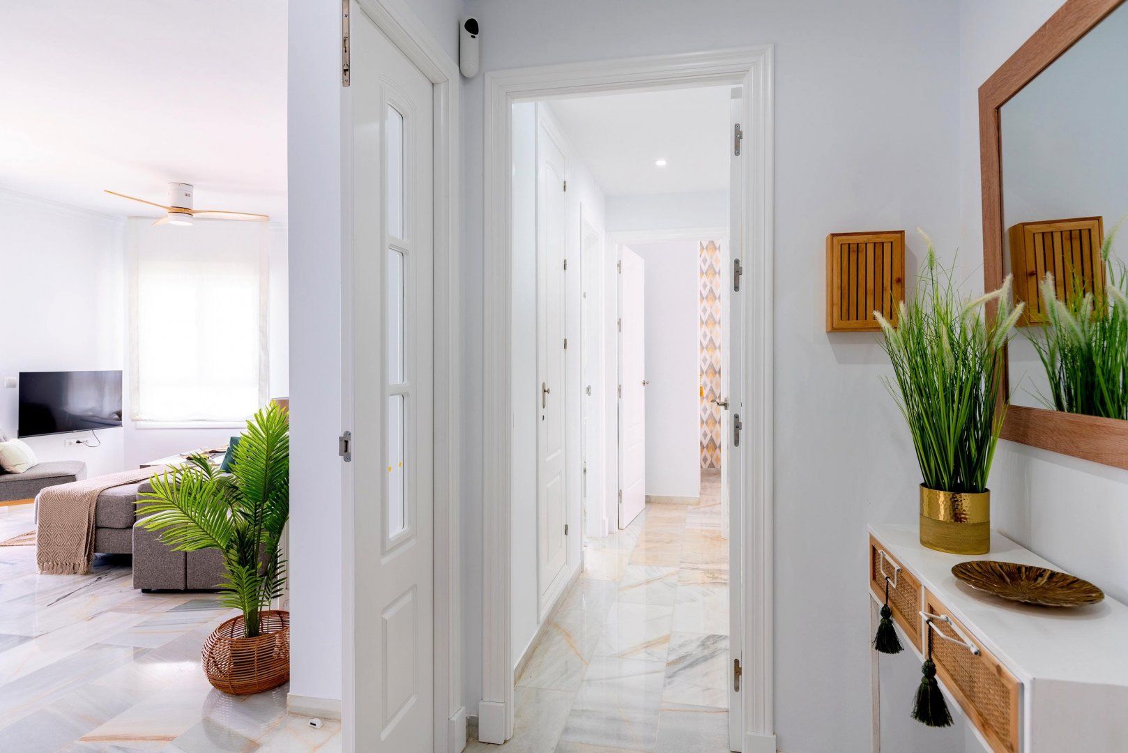 Overlooking the popular Playa de la Victoria, this seafront apartment is a great find for slightly larger groups seeking something comfortable and convenient in Cádiz. Fitting up to six across three tastefully furnished bedrooms, there's plenty of privacy for couples and family members, although only one pair gets their own en-suite bathroom. The living room is bright and expansive, with plenty of seating and room for a dining table, while the kitchen is slightly smaller but just as well stocked. The home's real gem is the balcony, where you can admire the sunsets over the bay and enjoy an evening drink, before getting ready for a half hour walk up the coast to Cádiz's historic city centre.