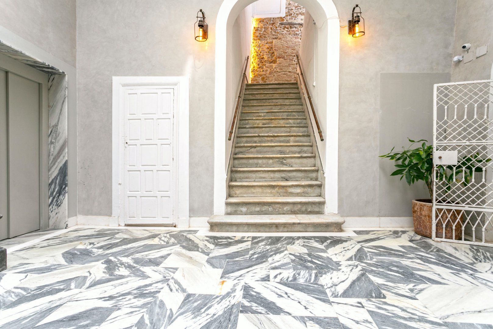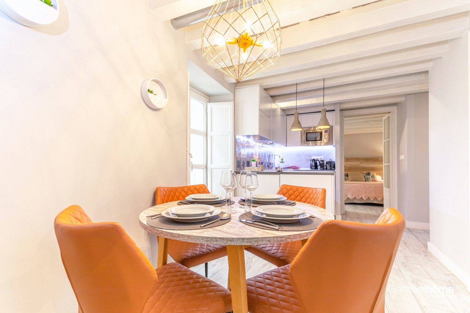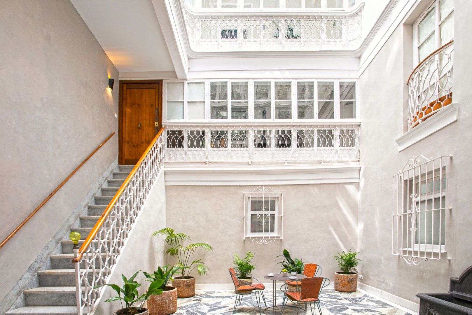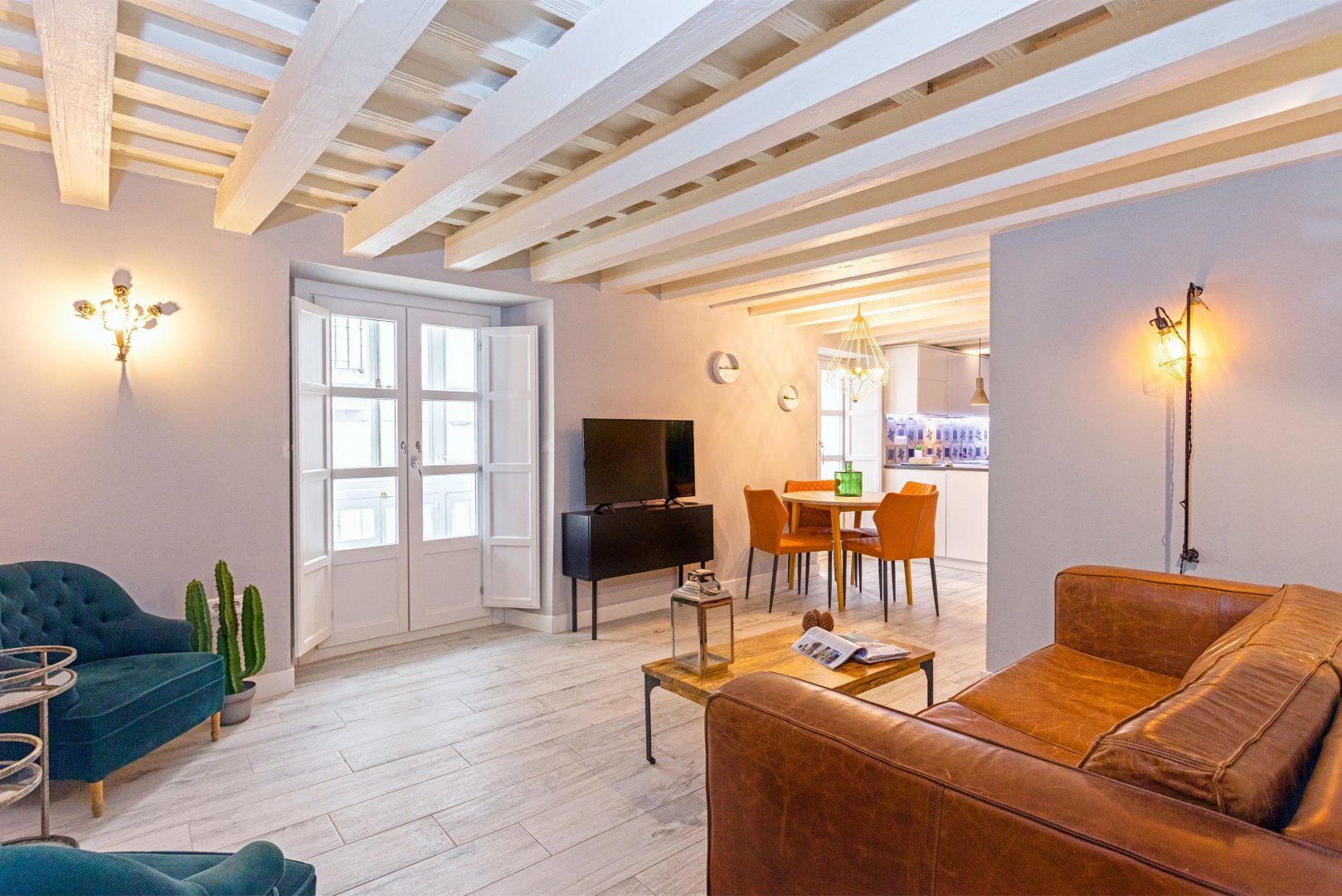 Sitting within the winding network of streets and alleyways in the historic centre of Cádiz, this apartment sits within a period building and still bears a few traces of heritage, not least the handsome patches of exposed stonework and wooden ceiling beams.