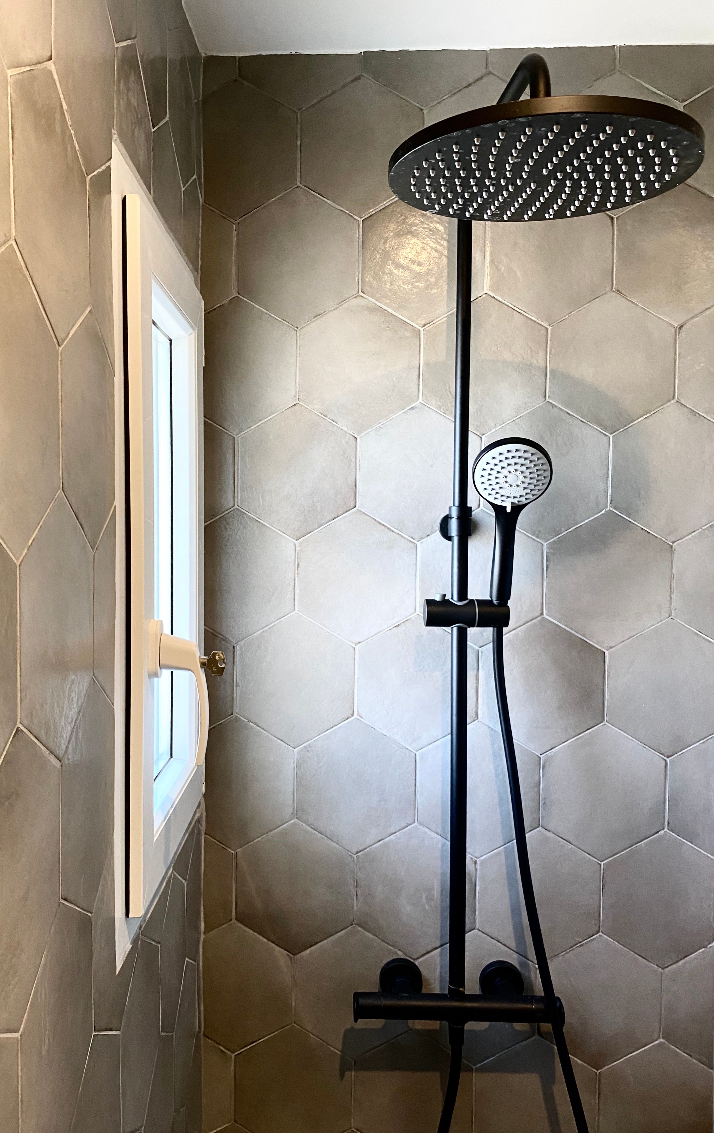 The villa itself is made for outdoor living. First, the pool terrace is a real suntrap, where the Roman-style pool is an inviting spot for a dip in the heat of the day. Here you’ll also find the outdoor dining, courtesy of the summer kitchen with plenty of prep space for the grill master. Between patios and terraces, you’ll find loads of seating spots, some with the boho charm of rope-woven chairs and an outdoor fireplace. Then there’s the crowning jewel of this villa – the courtyard adorned with azulejo tiles and spilling with greenery. It’s our favourite spot to unwind for a few hours with a good book.