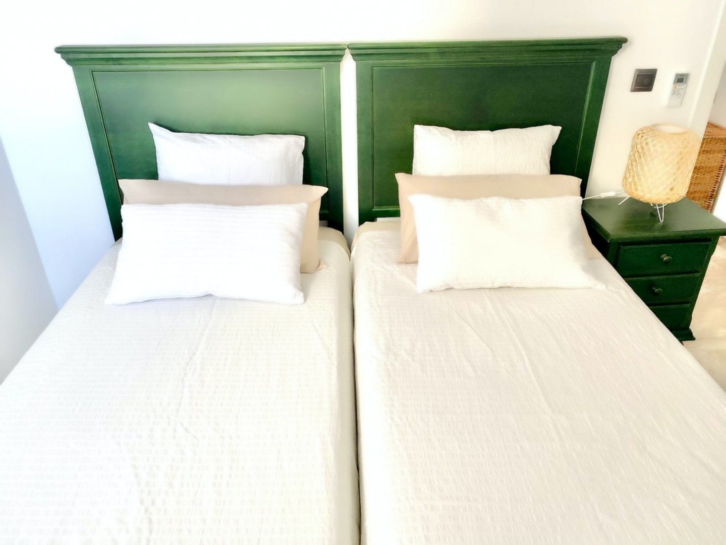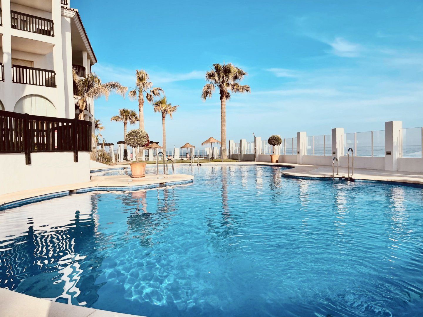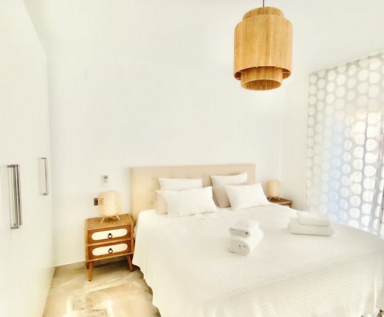 Head to the communal pool for a dip – it’s surrounded by palms and also has lovely sea views (there’s a children’s pool and indoor recreational area here too, so this home is ideal for families as well as friends). Back inside your apartment, you can enjoy the seascape from the living room sofa or prepare an Andalusian feast in the modern kitchen.
