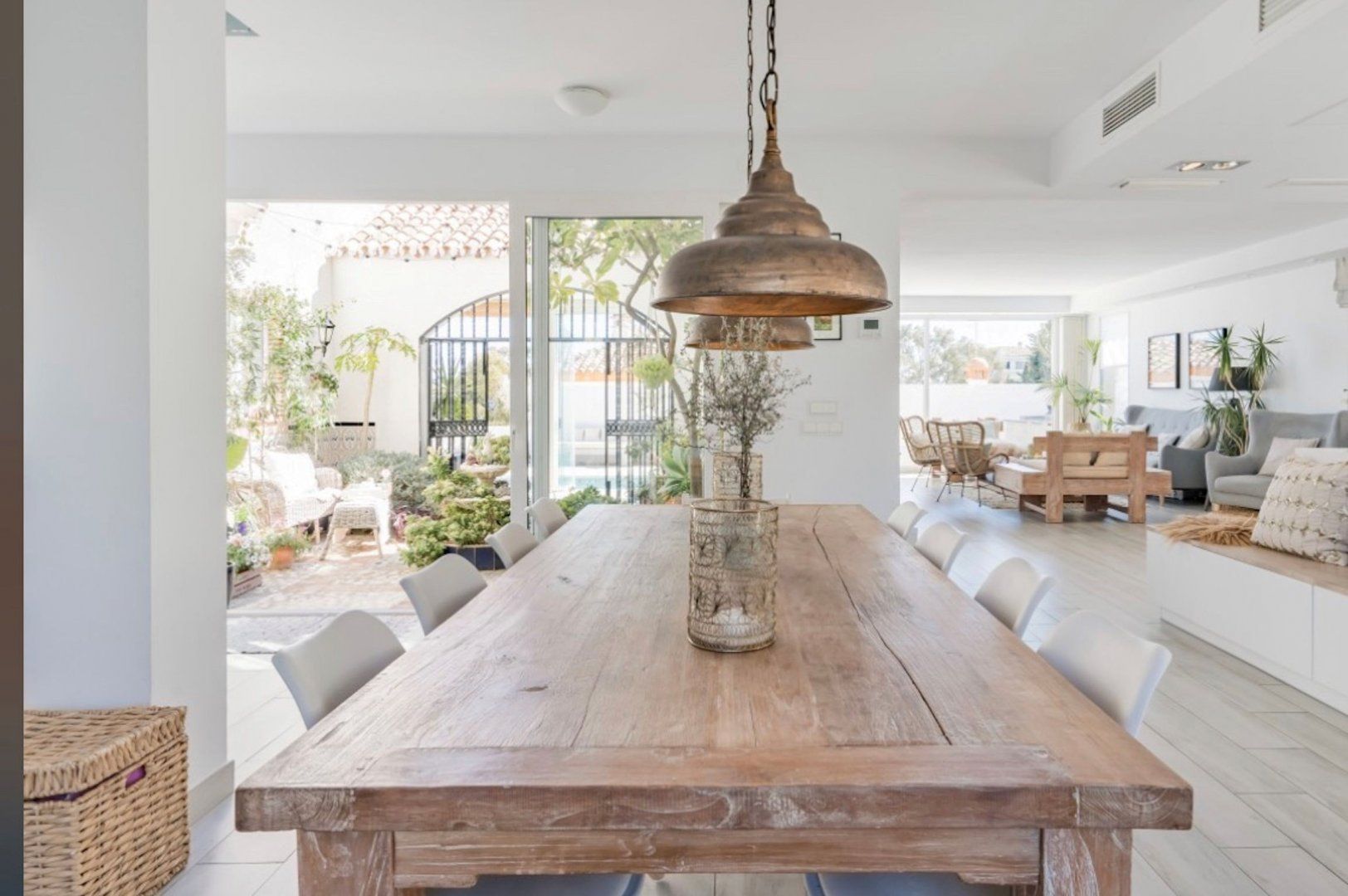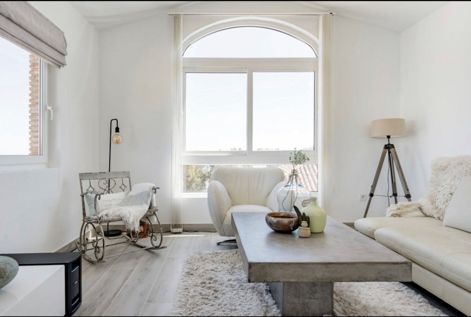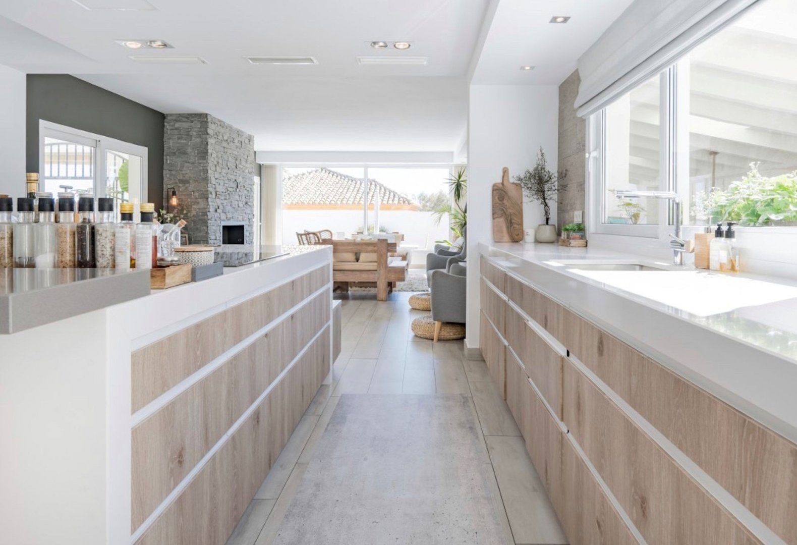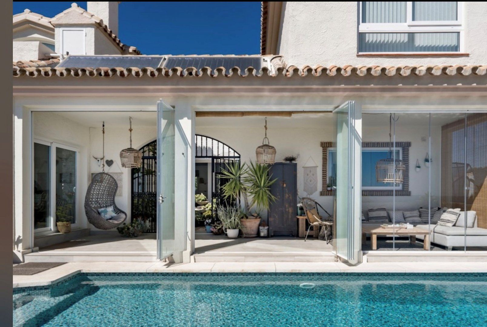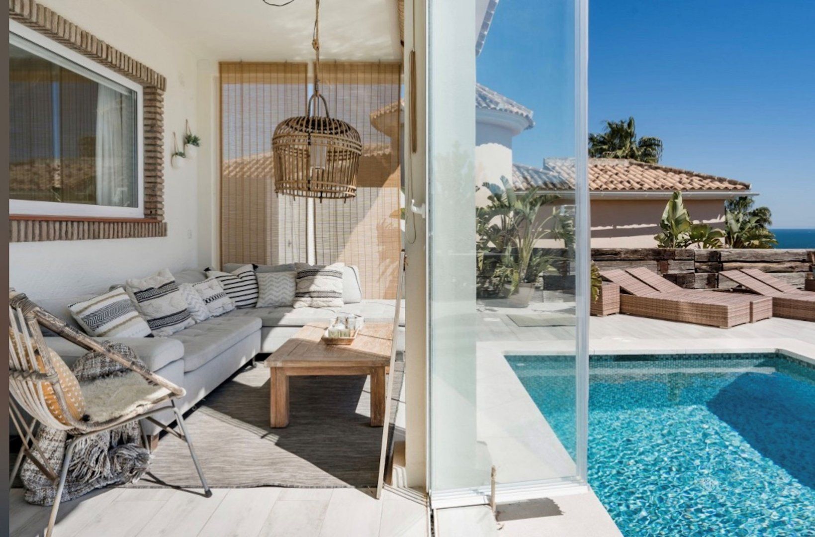 This cool, contemporary home boasts a unique blend of Spanish architecture and Scandinavian décor in the heart of Mijas Costa. Perfect for groups of friends and family, this enviable villa features a light-filled, open plan kitchen, dining and living room – think whitewashed walls, pale wooden floors, hanging lights and indoor plants. Soft, neutral colours, comfortable, modern furnishings, large windows and sliding glass doors which open onto outdoor spaces create a serene space in which to both socialise and relax.