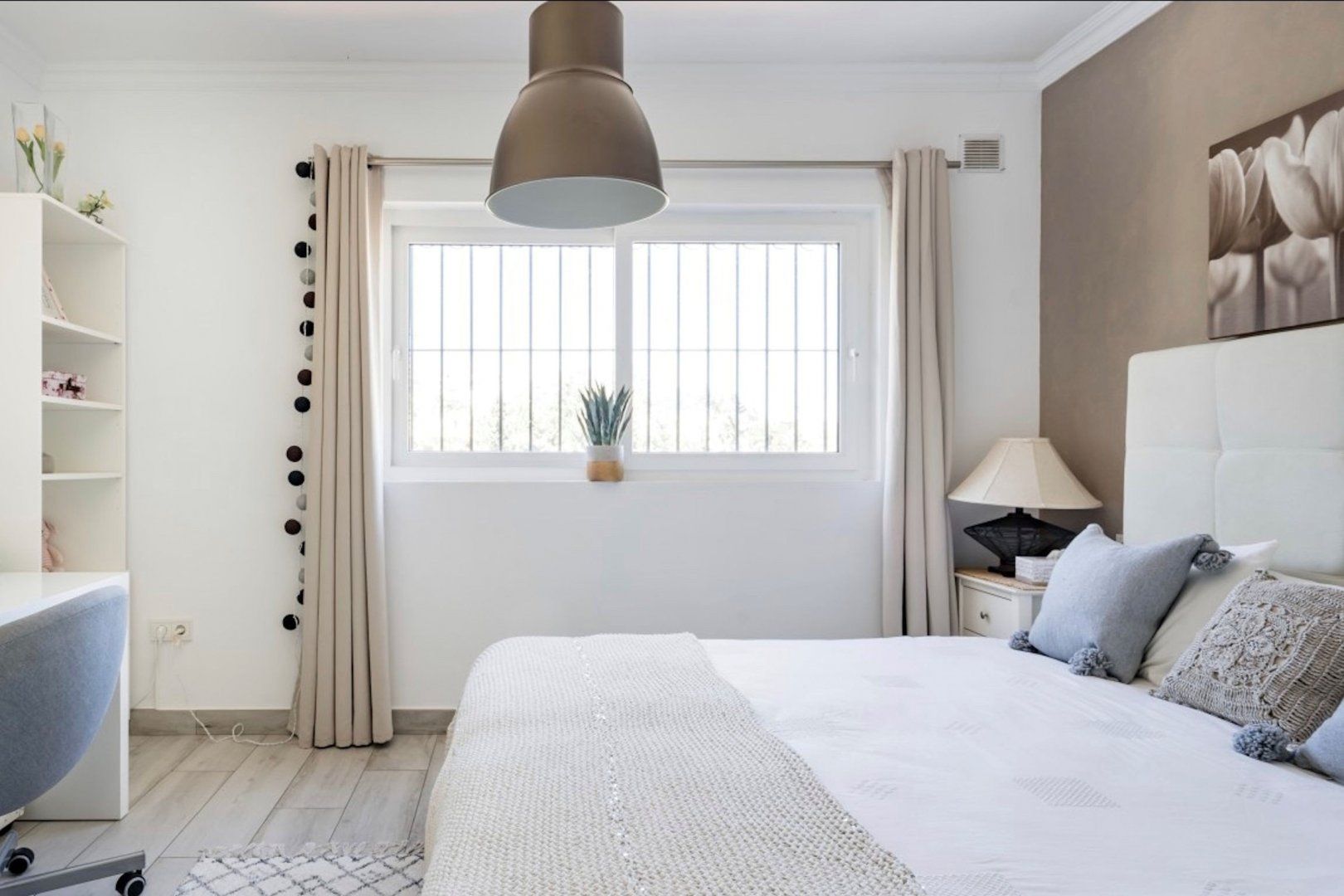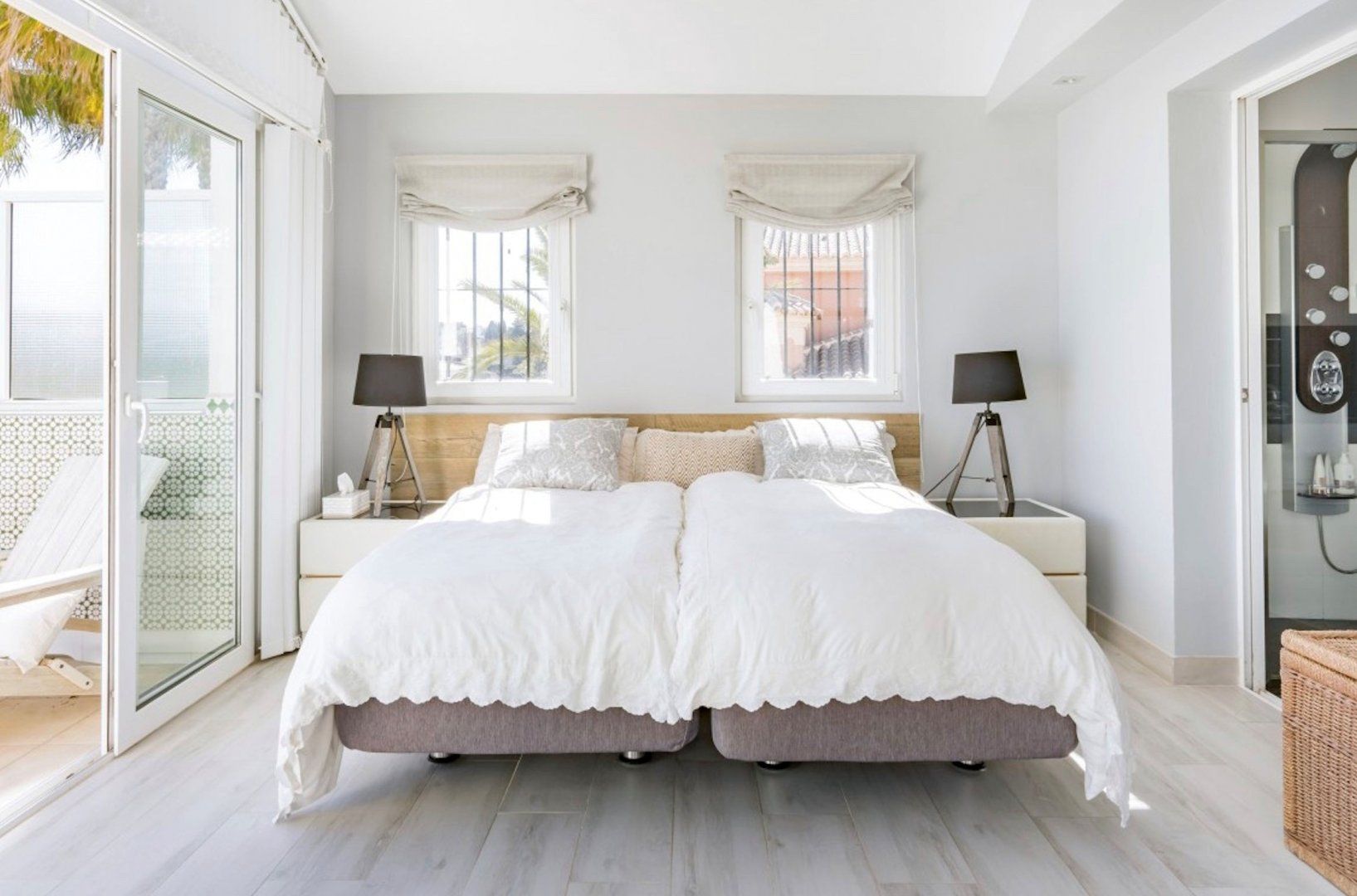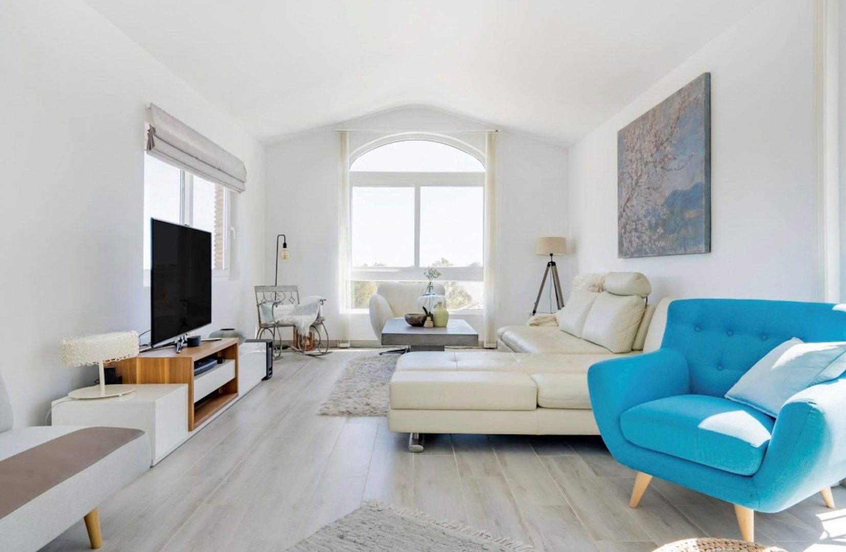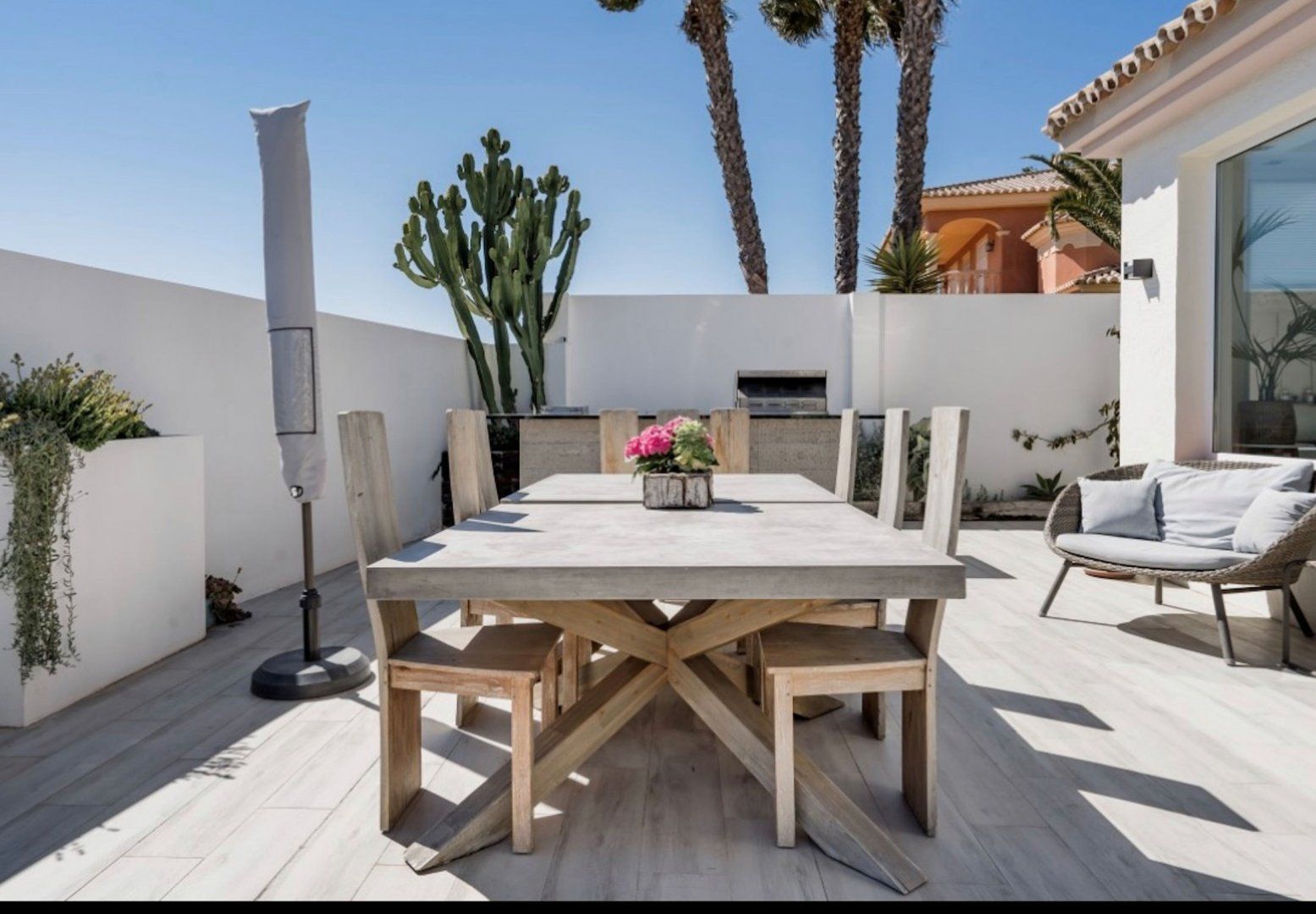 This cool, contemporary home boasts a unique blend of Spanish architecture and Scandinavian décor in the heart of Mijas Costa. Perfect for groups of friends and family, this enviable villa features a light-filled, open plan kitchen, dining and living room – think whitewashed walls, pale wooden floors, hanging lights and indoor plants. Soft, neutral colours, comfortable, modern furnishings, large windows and sliding glass doors which open onto outdoor spaces create a serene space in which to both socialise and relax.