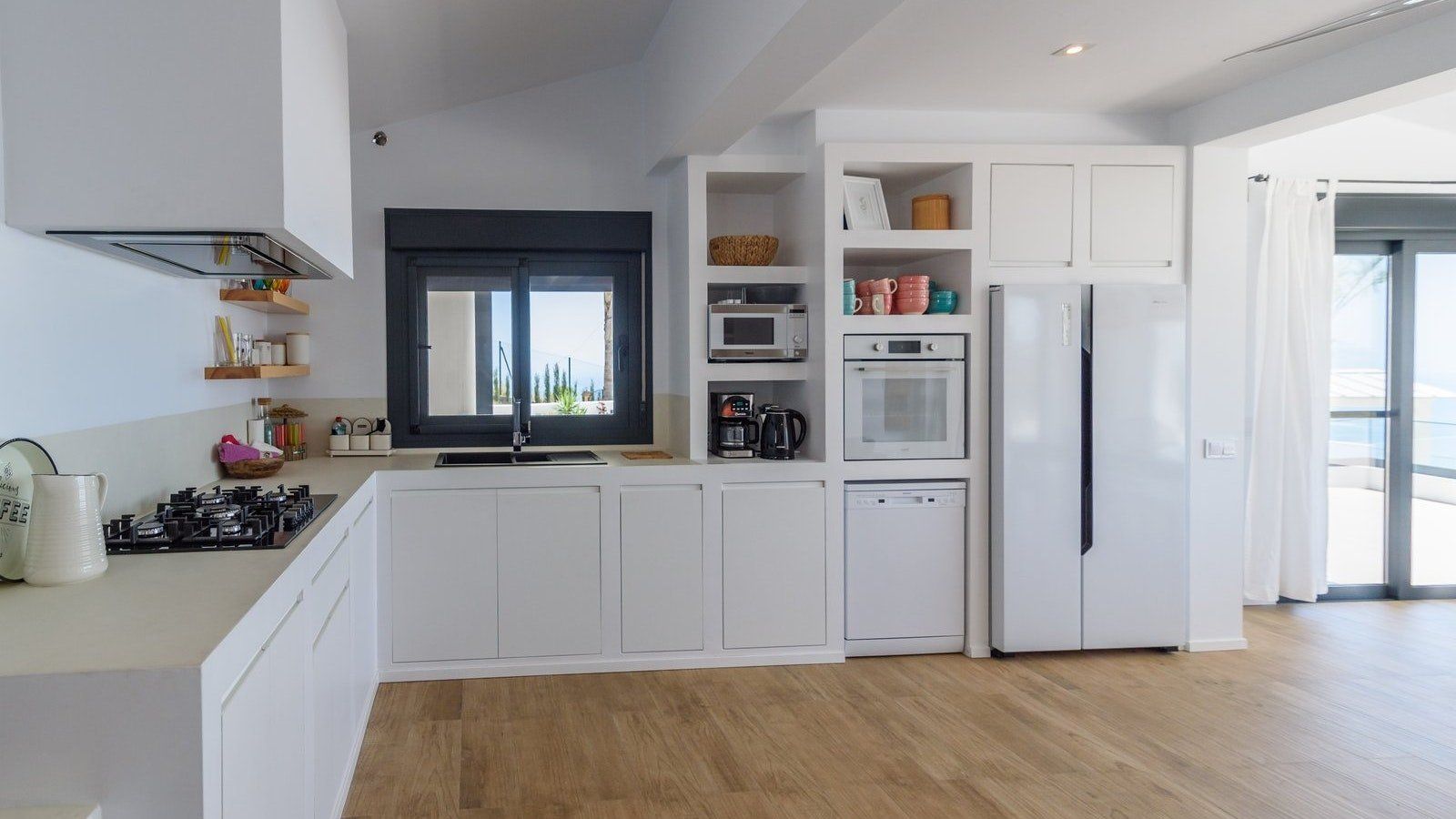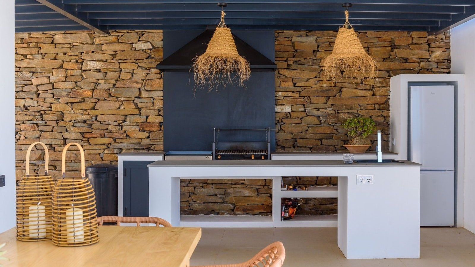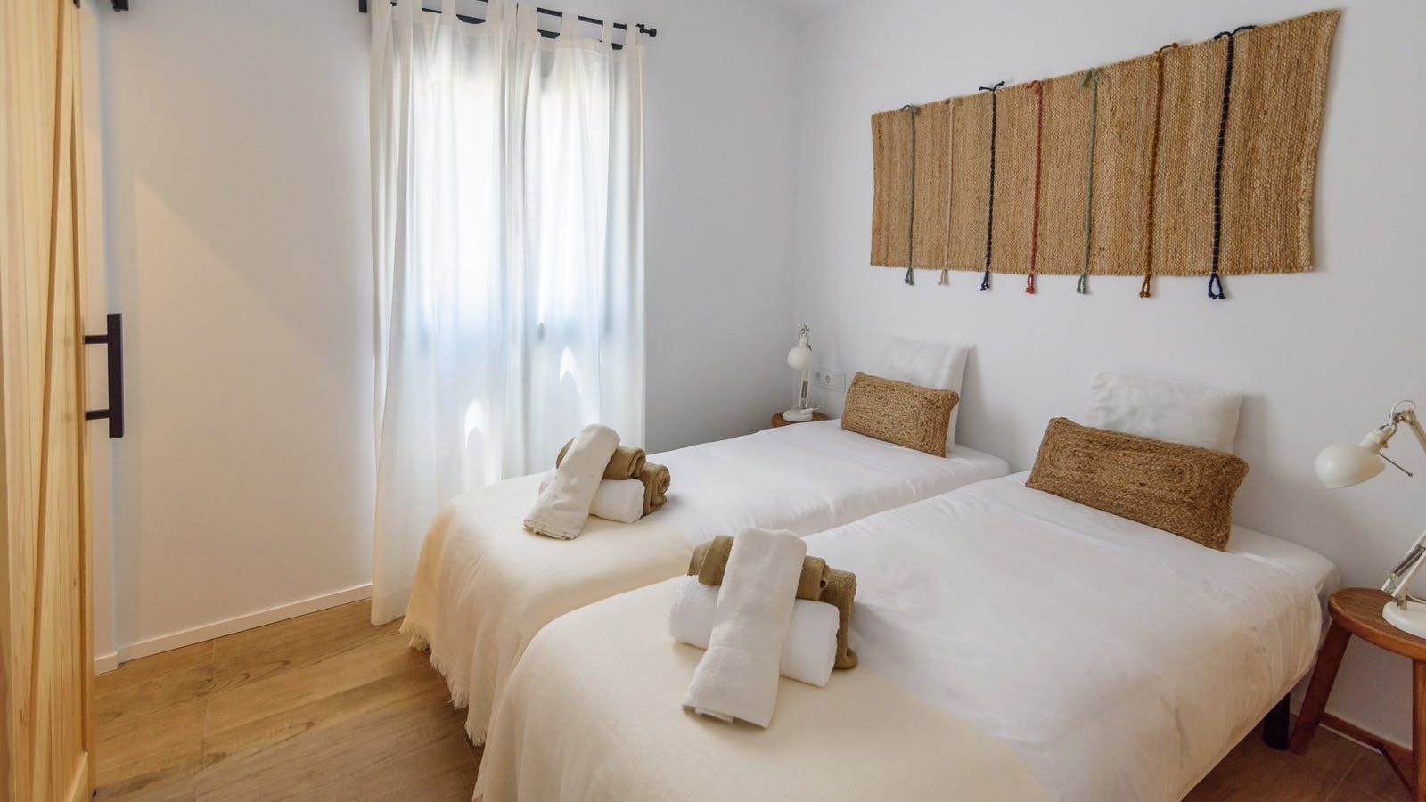 Once you’ve enjoyed sundowners and some alfresco dining, it may be time to retire to the comfort of the indoors. The open-plan living and kitchen area is perfect for a family or group of friends wanting to enjoy some time together. Whether you’re relaxing in front of the fire and the flatscreen TV or putting on a pot of coffee first thing in the morning, this home is ideal for sociable groups wanting a memorable holiday. Neutral colours punctuated with natural wicker features make this home a calm haven after a day of exploring the Spanish outdoors.
