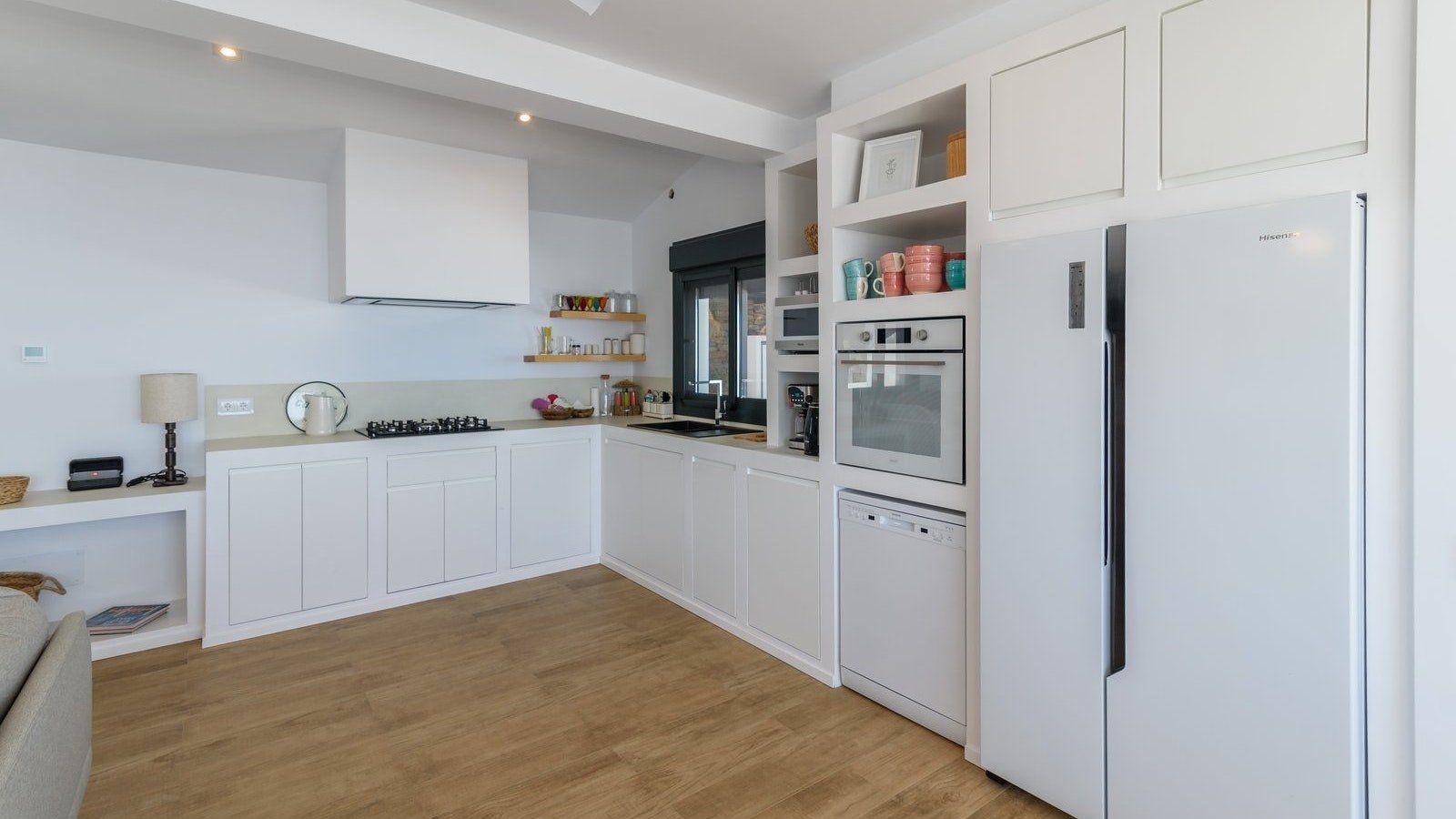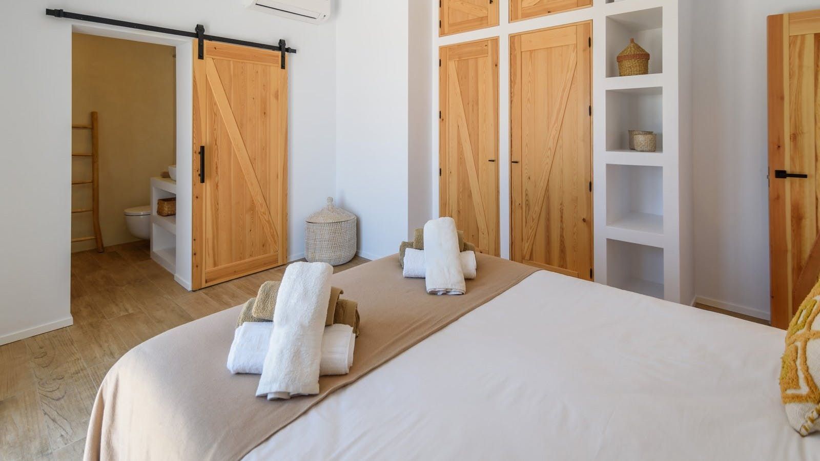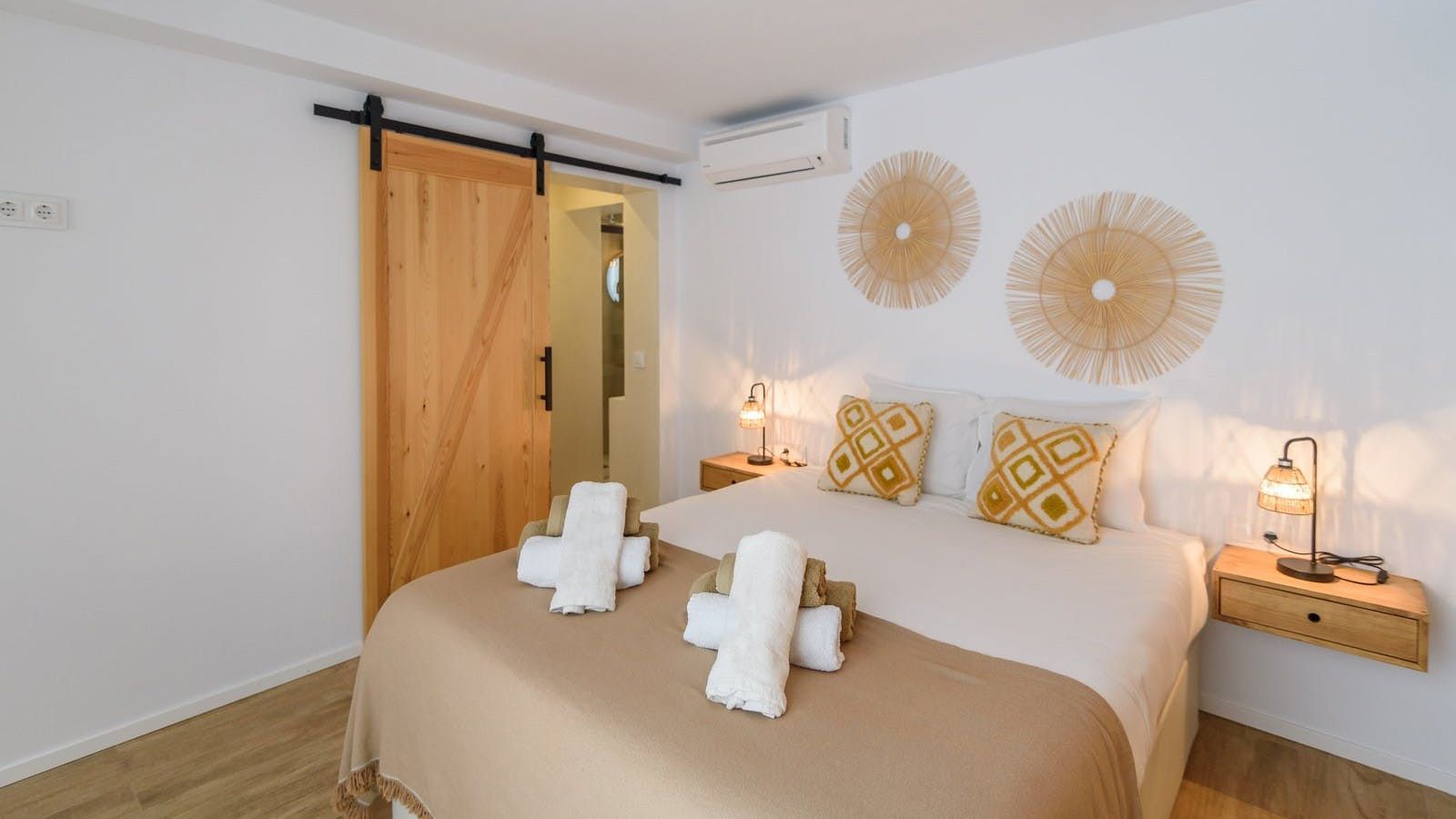 Once you’ve enjoyed sundowners and some alfresco dining, it may be time to retire to the comfort of the indoors. The open-plan living and kitchen area is perfect for a family or group of friends wanting to enjoy some time together. Whether you’re relaxing in front of the fire and the flatscreen TV or putting on a pot of coffee first thing in the morning, this home is ideal for sociable groups wanting a memorable holiday. Neutral colours punctuated with natural wicker features make this home a calm haven after a day of exploring the Spanish outdoors.