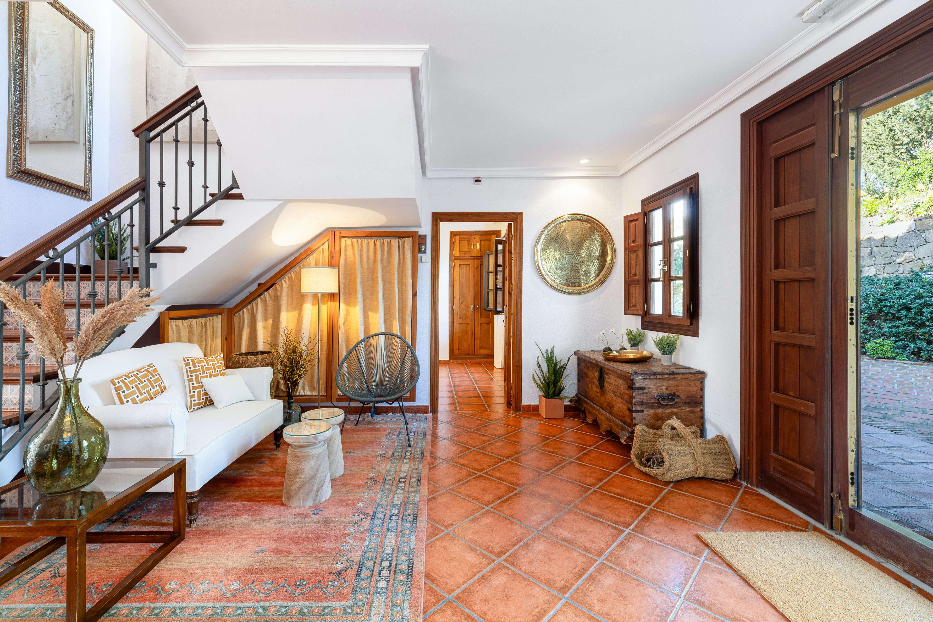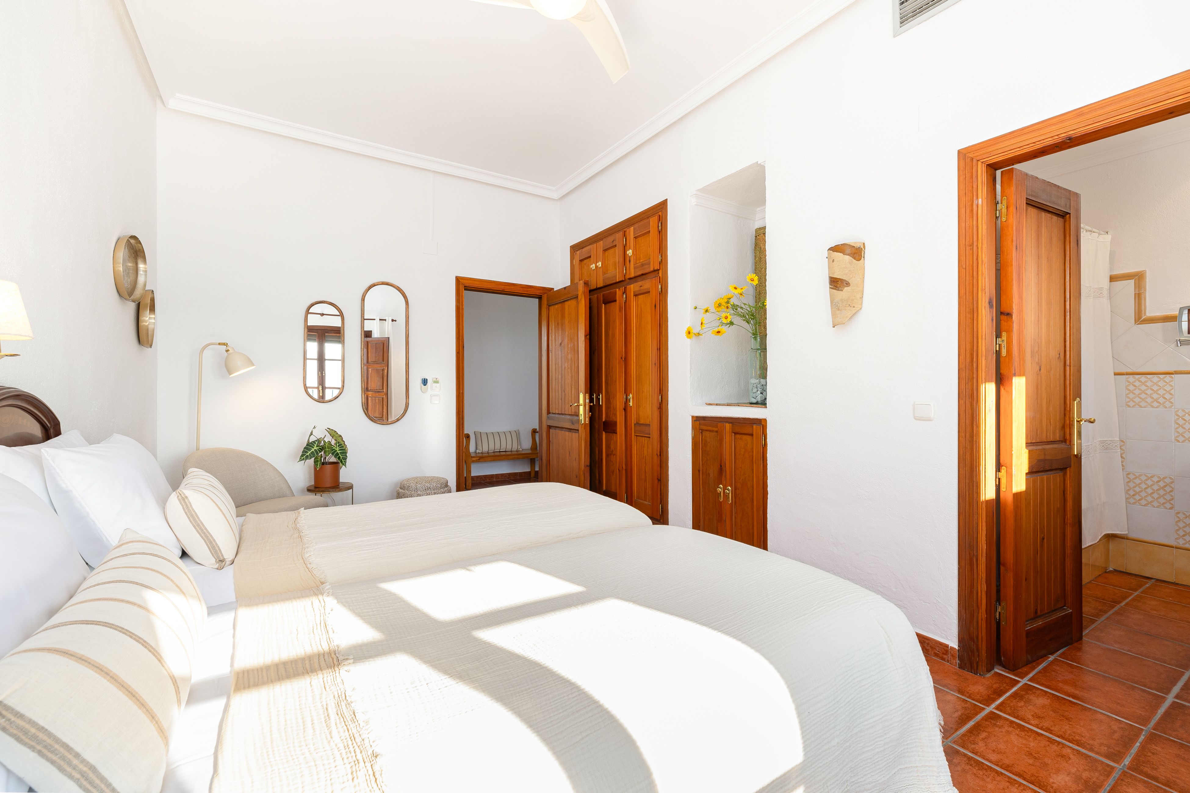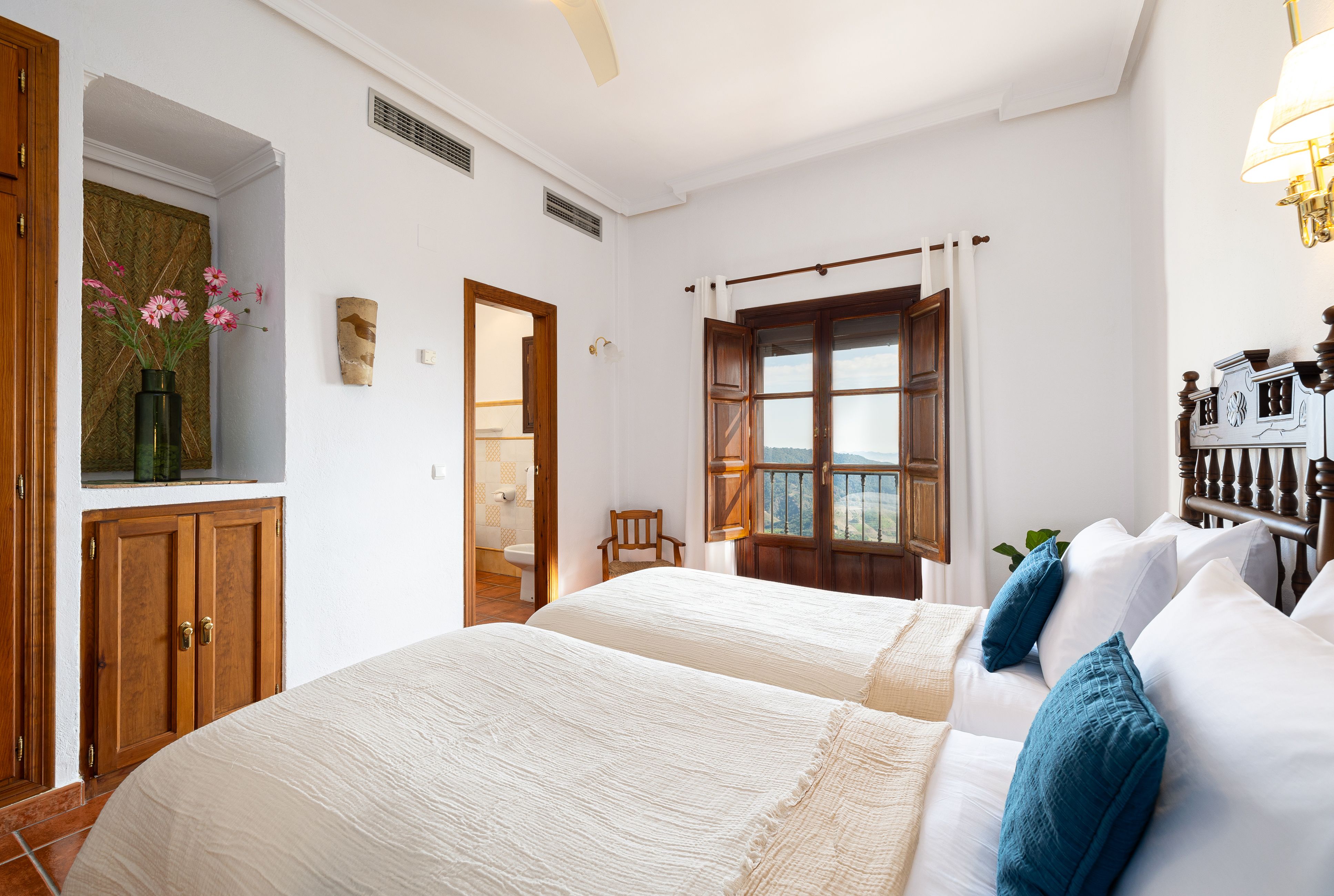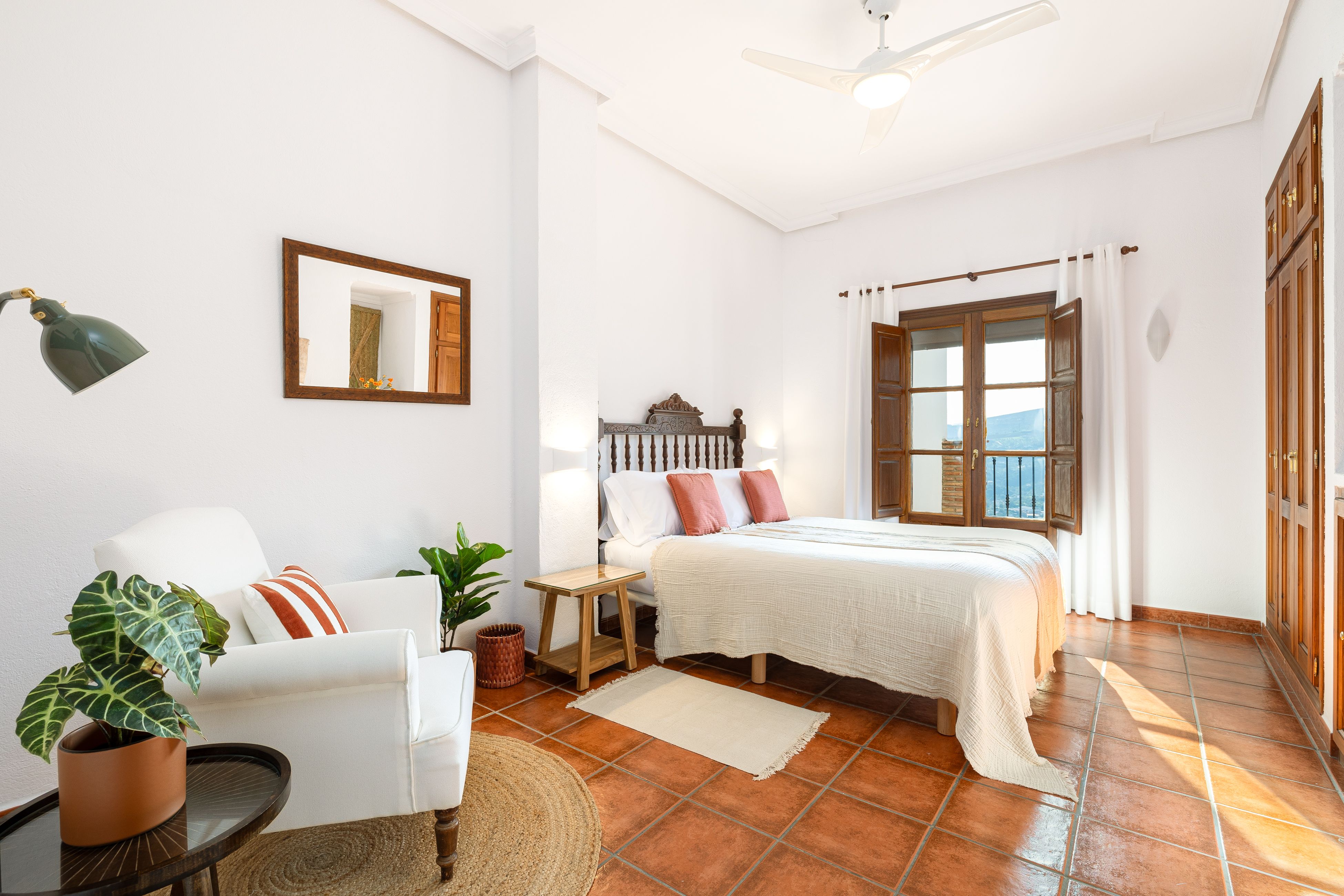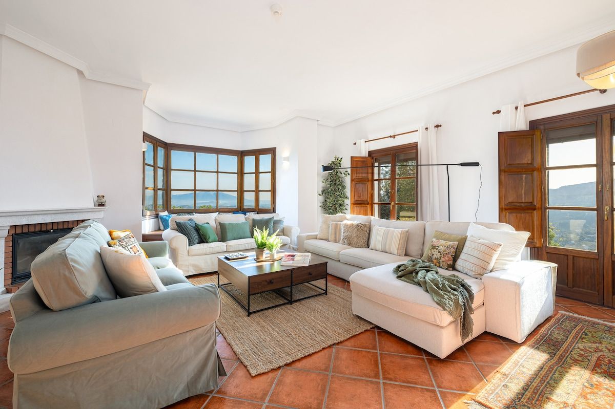 This hilltop home gazes out across the rolling countryside of Andalusia. Inside, it feels bright and homely, with two living spaces and a large dining area made for big group getaways. The bedrooms open onto private terraces or balconies, with wide-reaching views of the surrounding scenery. Days here are best spent lounging by the pool or firing up the grill for alfresco feasts on the patio – better yet, hire a private chef to prepare some Spanish specialities. As for the location, you're in a blissfully secluded spot in the Sierra de las Nieves. Malaga and the beach are just under an hour away (ideal for day trips), while excellent hikes like El Caminito del Rey are also within easy reach.