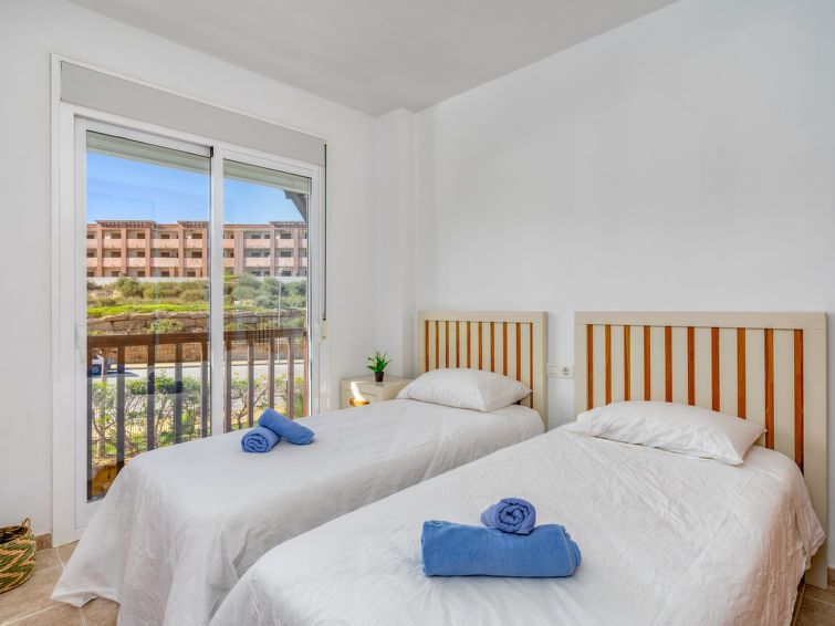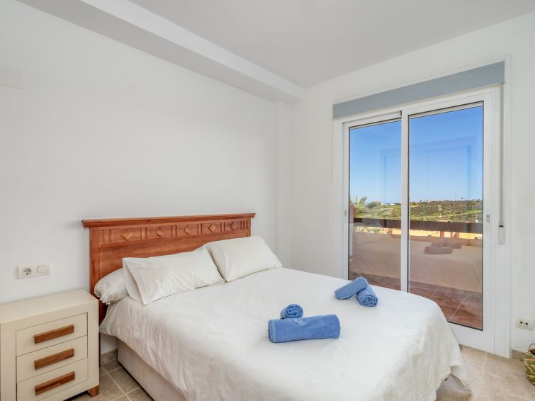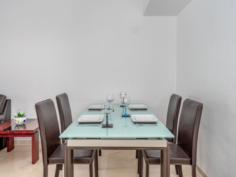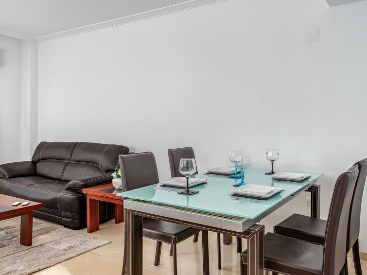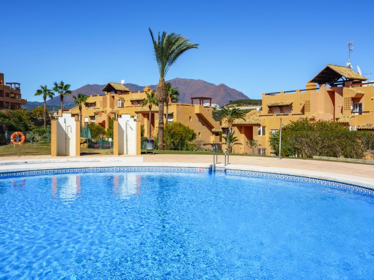 "Casares del Sol", 3-room apartment 77 m2. Spacious and bright, practical and comfortable furnishings: living/dining room with dining table, digital TV, international TV channels, flat screen, air conditioning and forced-air heating. Exit to the terrace. 1 room with 1 french bed (140 cm, length 190 cm), bath/bidet/WC, air conditioning and forced-air heating.