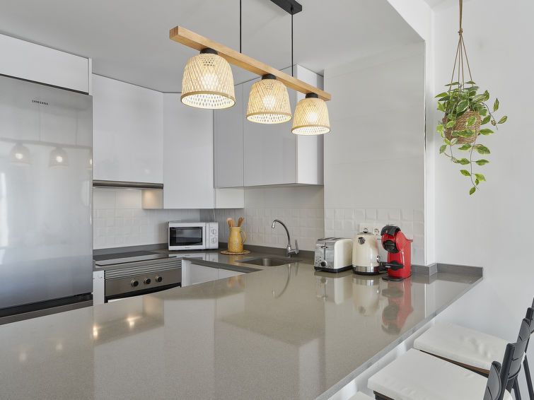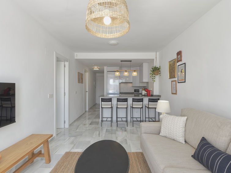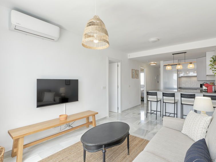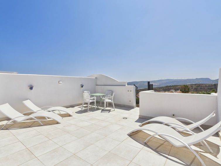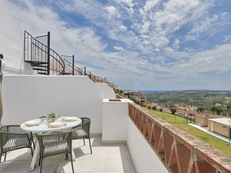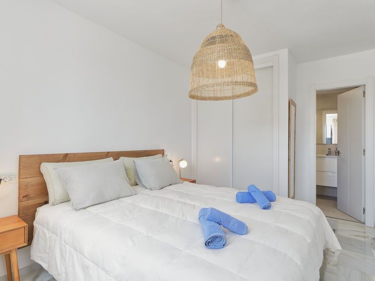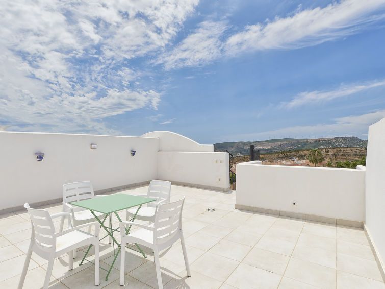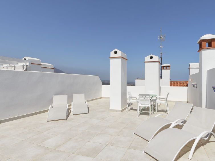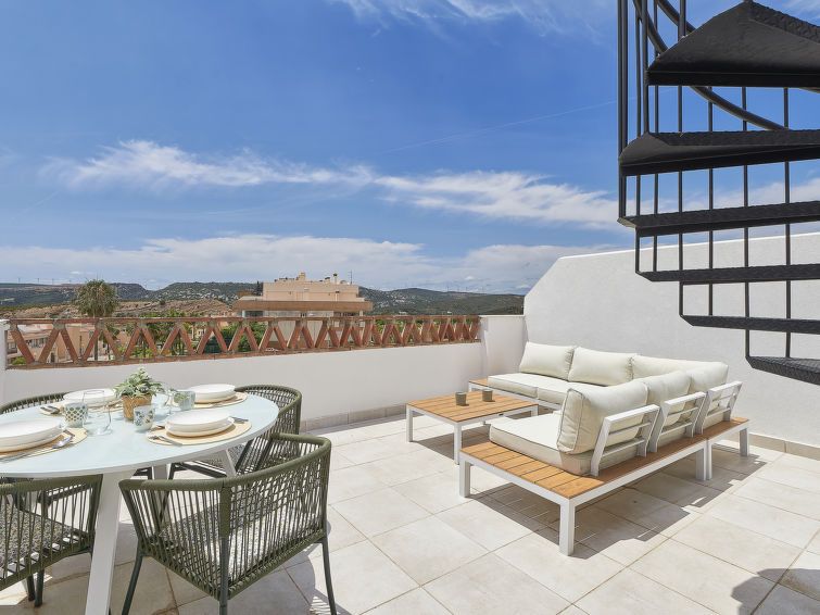 "Doña Julia Golf Views", 3-room penthouse 122 m2 on 2 levels. Very beautiful and modern furnishings: living/dining room with bathroom, digital TV, air conditioning and forced-air heating. Exit to the terrace. 1 room with 2 beds (90 cm, length 200 cm), bath/shower/WC, air conditioning and forced-air heating.