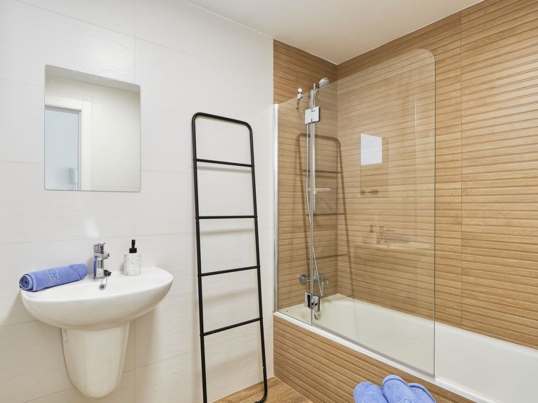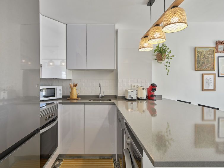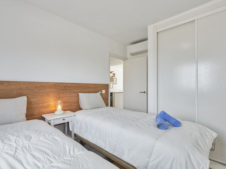 Modernly furnished apartment with two bedrooms and bathrooms and a spacious, uncovered outdoor area.