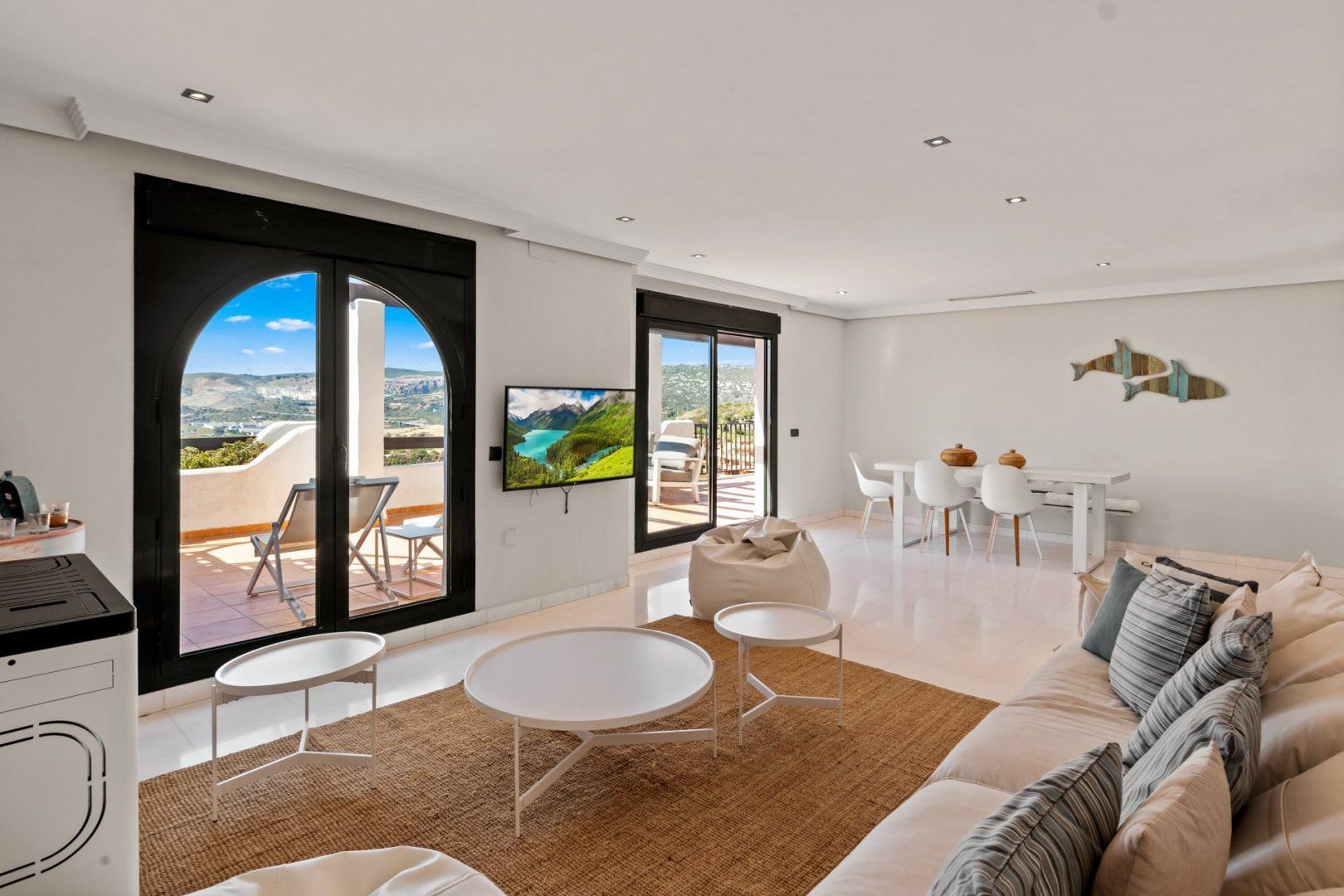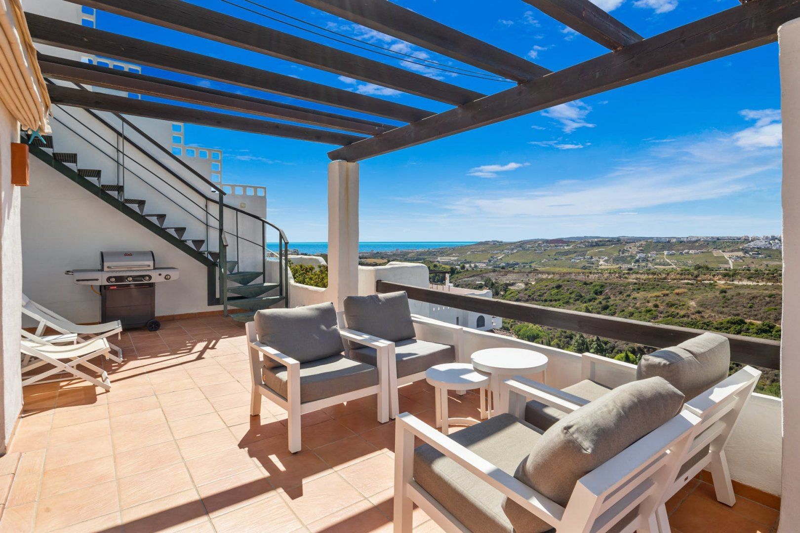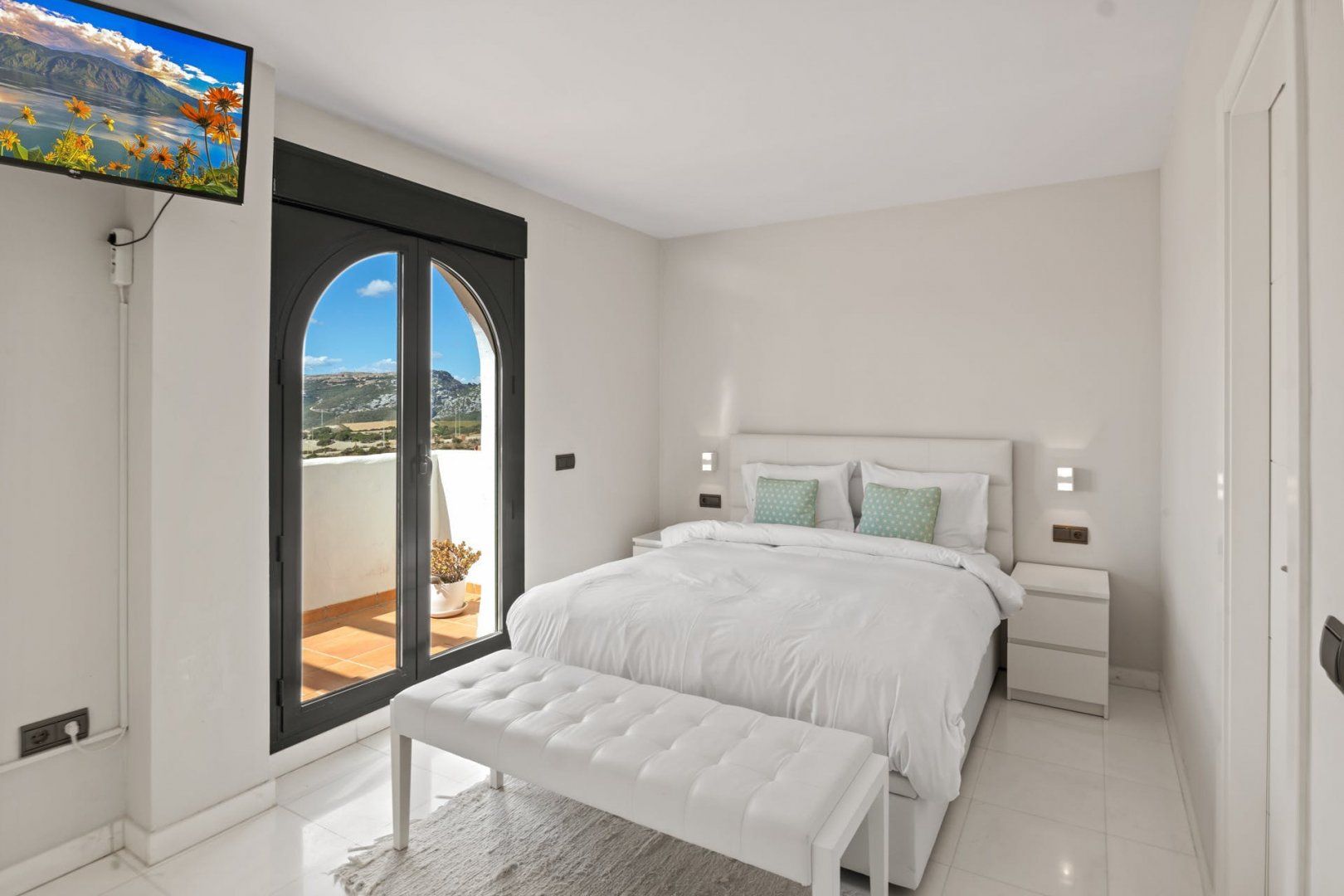This apartment is located in the village of Casares, about half an hour northwest of Estepona and only a short drive from Sabinillas Beach. The terrace steals the show with panoramic views of Gibraltar and the coast of Africa. There’s a dining table and barbecue for alfresco meals and a comfortable seating area for reclining with a glass of something chilled. Inside, the place is simple yet functional, and while the bedrooms are basic, they’re certainly comfortable.