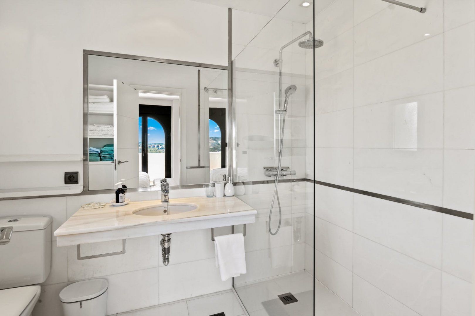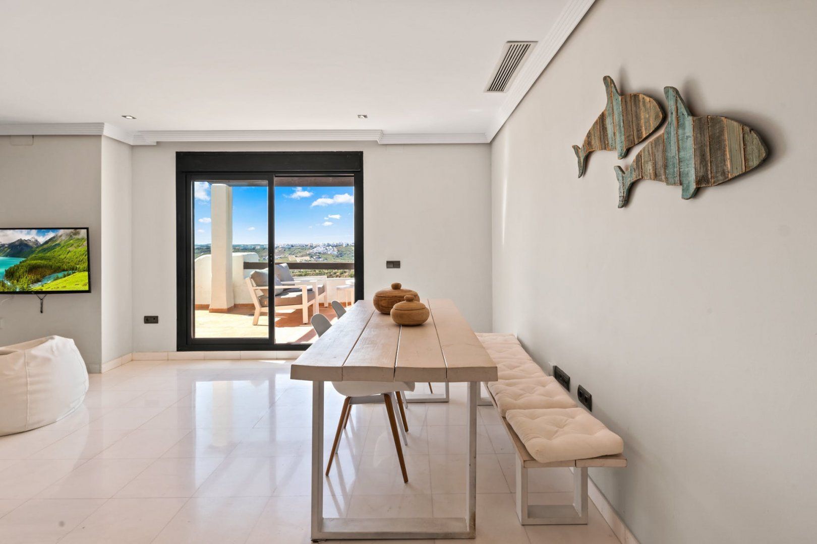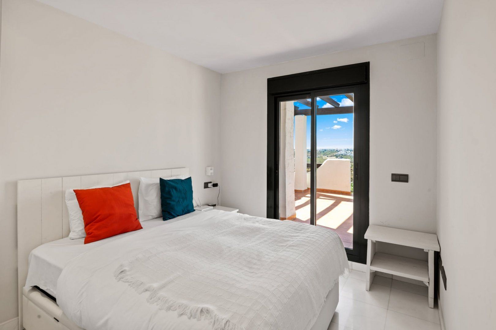 This apartment is located in the village of Casares, about half an hour northwest of Estepona and only a short drive from Sabinillas Beach. The terrace steals the show with panoramic views of Gibraltar and the coast of Africa. There’s a dining table and barbecue for alfresco meals and a comfortable seating area for reclining with a glass of something chilled. Inside, the place is simple yet functional, and while the bedrooms are basic, they’re certainly comfortable.