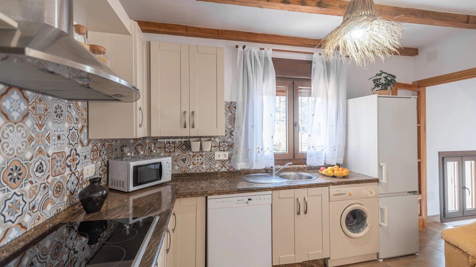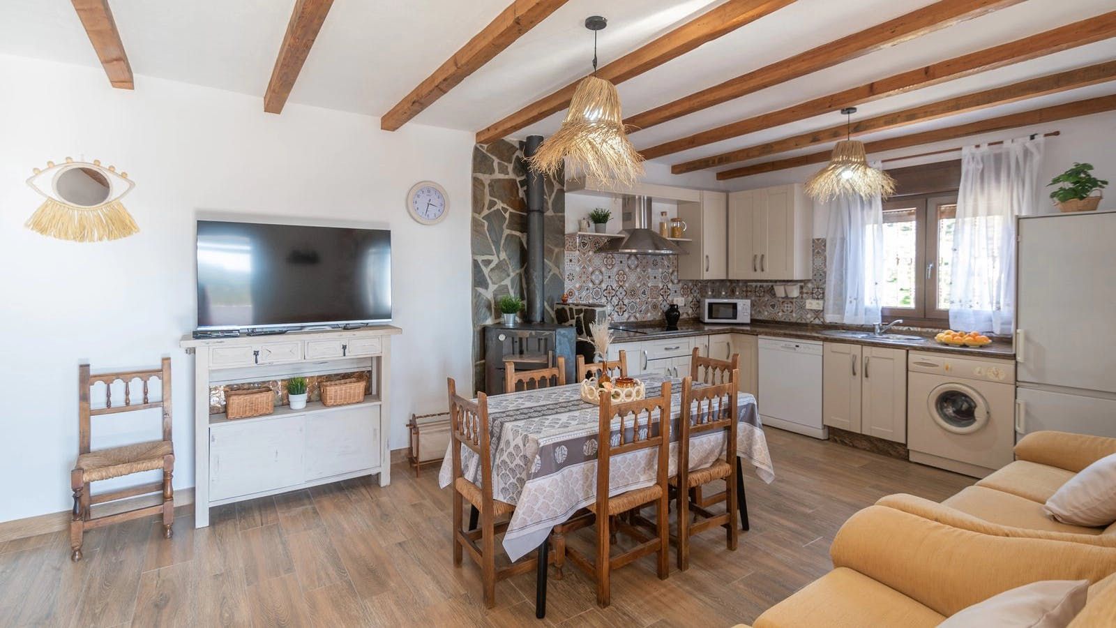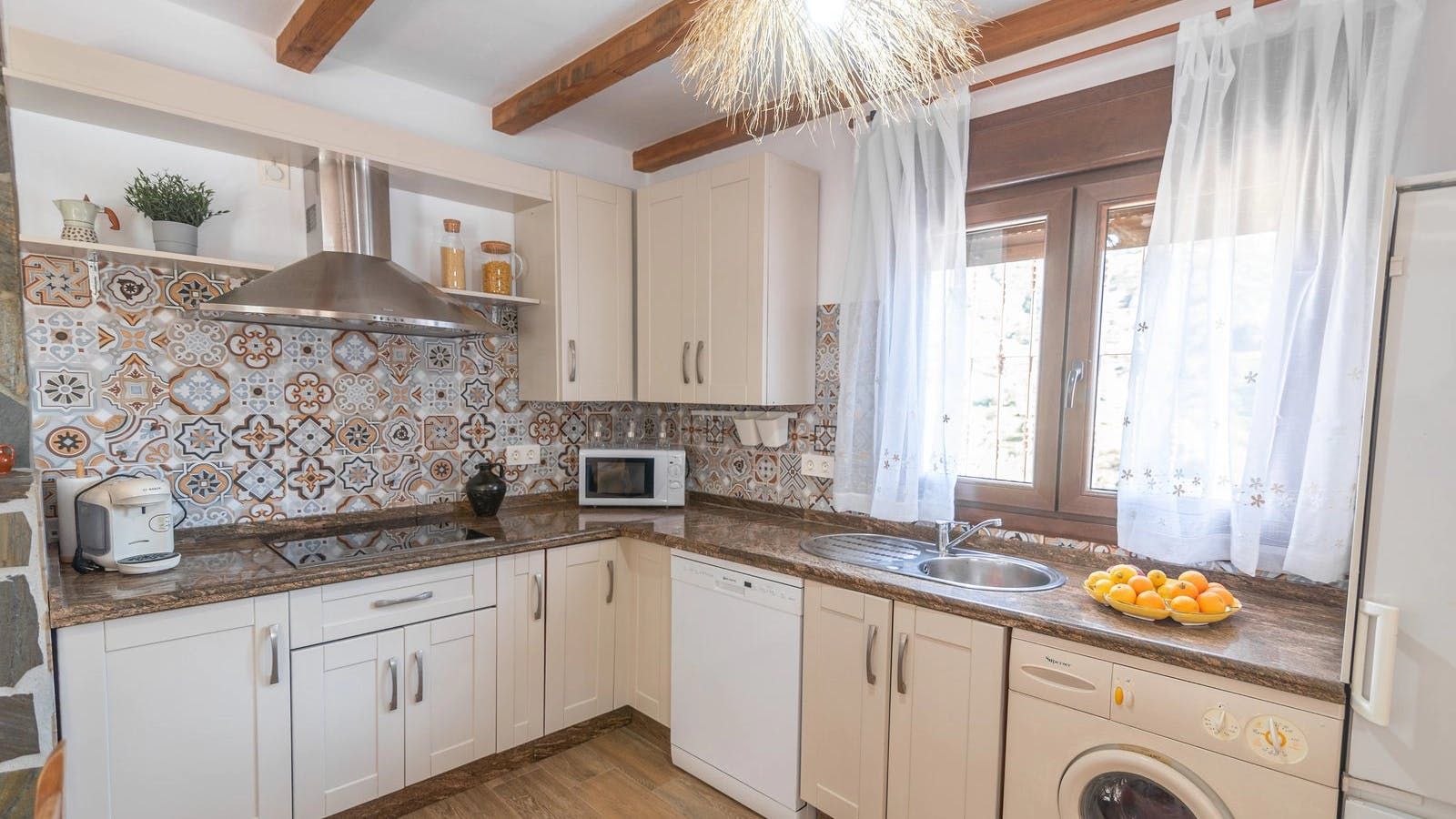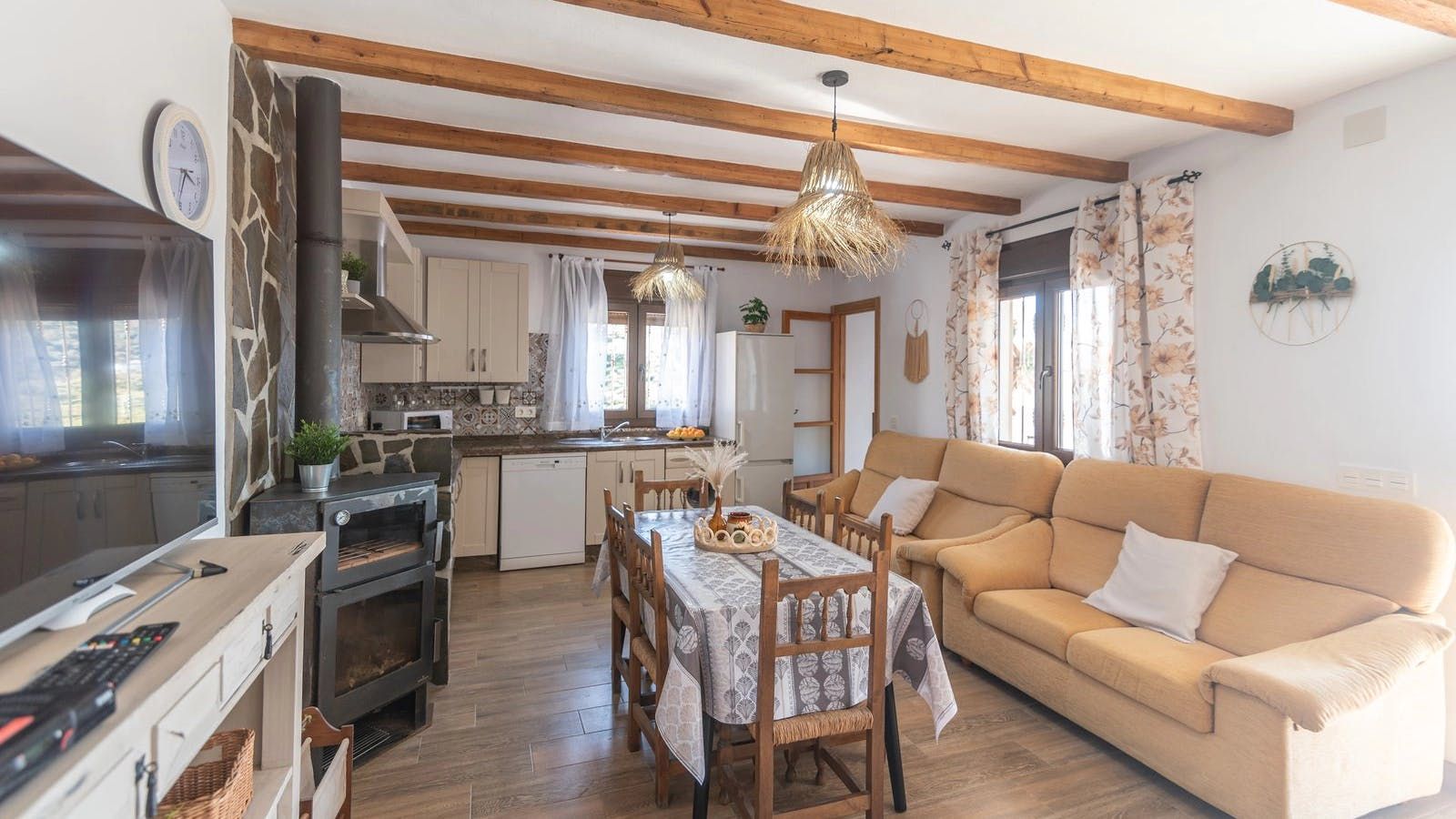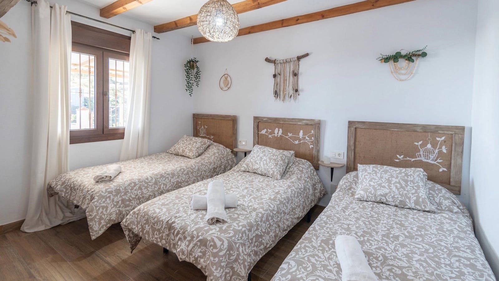 This home sits at the foot of the Sierras de Tejeda, Almijara y Alhama National Park, striking distance from the welcoming village of Cómpeta. There's no shortage of scenery to enjoy in the garden, with views that stretch across the rolling vineyards and mountainous peaks to the sparkling sea in the distance. Factor in the private pool and alfresco dining area, and we bet you'll spend most of your time here outdoors. Inside is cosy and comfortable, although the kitchen is a bit dated. Two of the bedrooms have three single beds, so it'd be a good fit for families. But as there are only two bathrooms, we recommend a lower guest count unless you're happy to share.