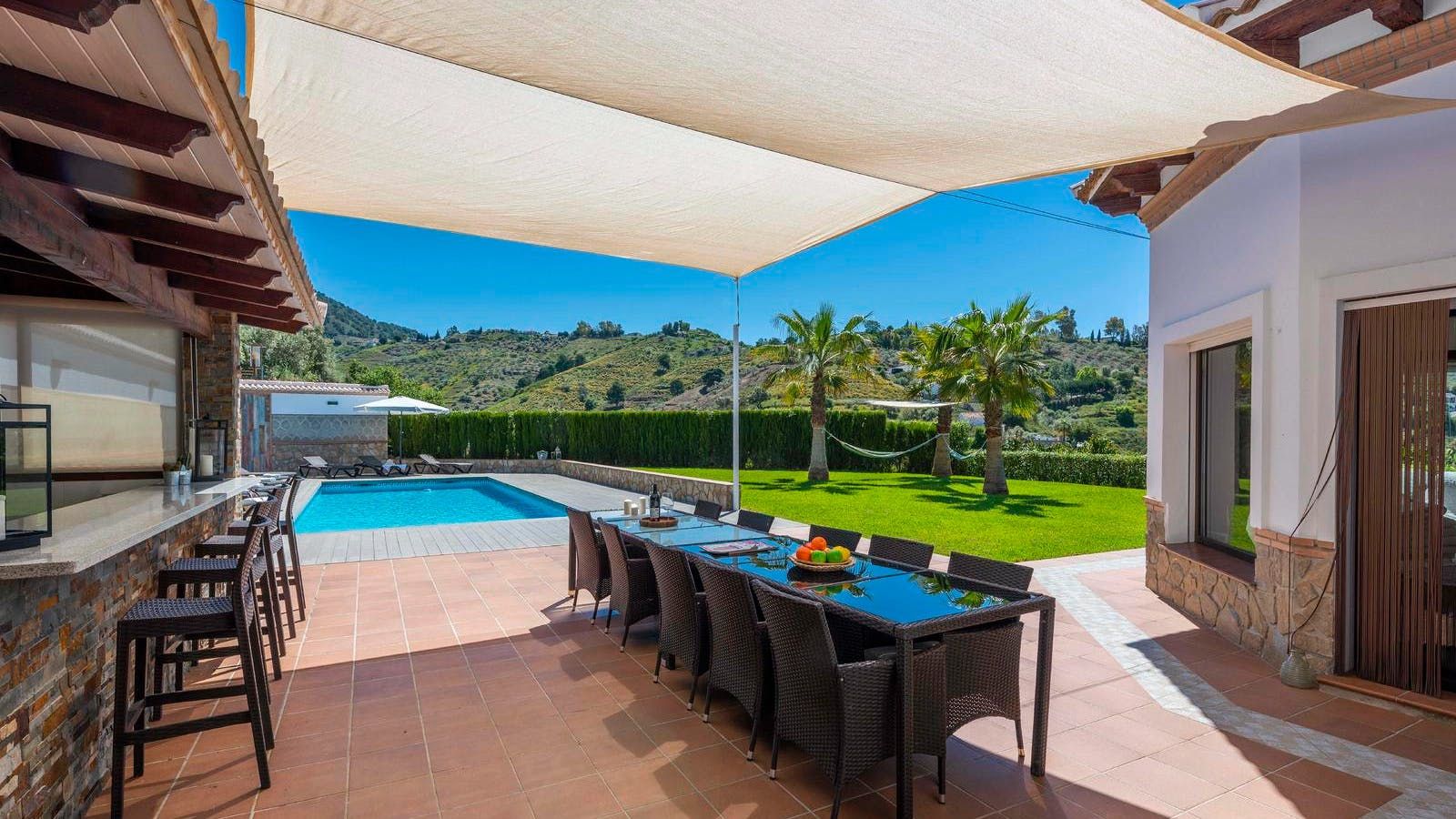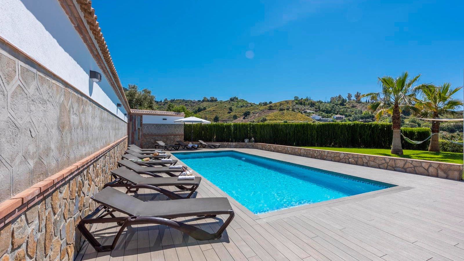 Surrounded by a mango plantation and picturesque white houses, this villa provides a relaxing retreat in Cómpeta. The lawned garden is our favourite part of the home. Which provides the perfect spot to soak up the sun, thanks to a private pool, hammocks and barbecue area. In the porch area you’ll find a ping pong table, pool table and foosball, which will no doubt prove a hit with the little ones or teenagers of the family. There’s also a covered Jacuzzi area where you can unwind after a day of exploring the fascinating city – we’d highly recommend a car to make the most of this beautiful part of Andalusia.