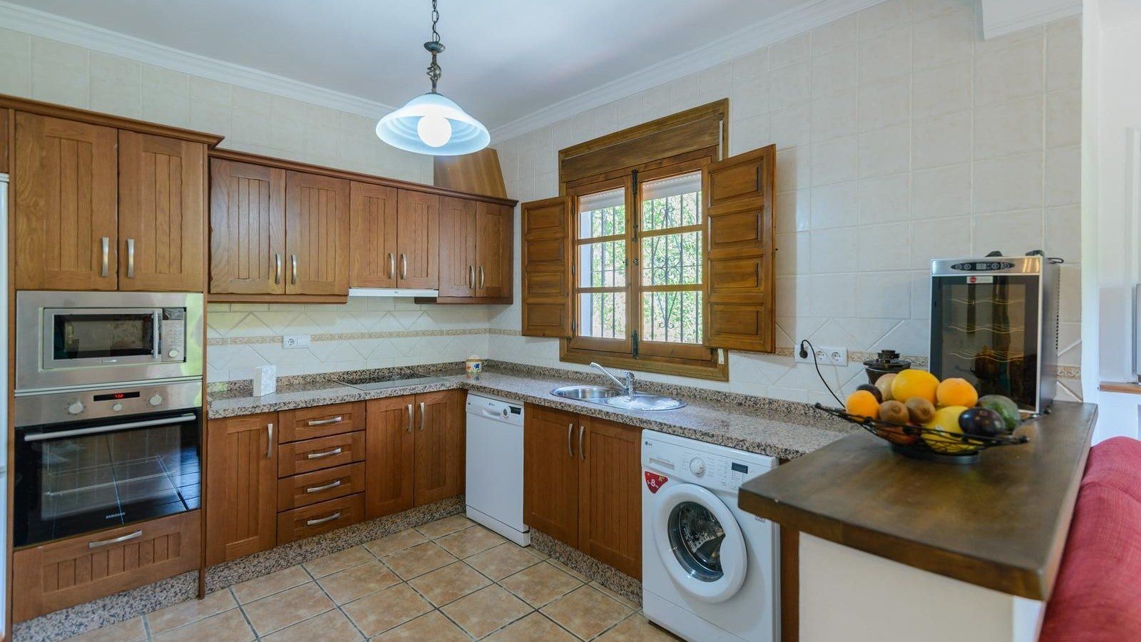 Venturing inside when the sun is overhead and you want a break from the pool, you’ll enjoy traditional Spanish decor with beautiful wooden french doors, shutters, and wrought iron headboards. This home has every modern comfort whilst retaining its old-fashioned charm, with cool terracotta tiles peppered throughout.