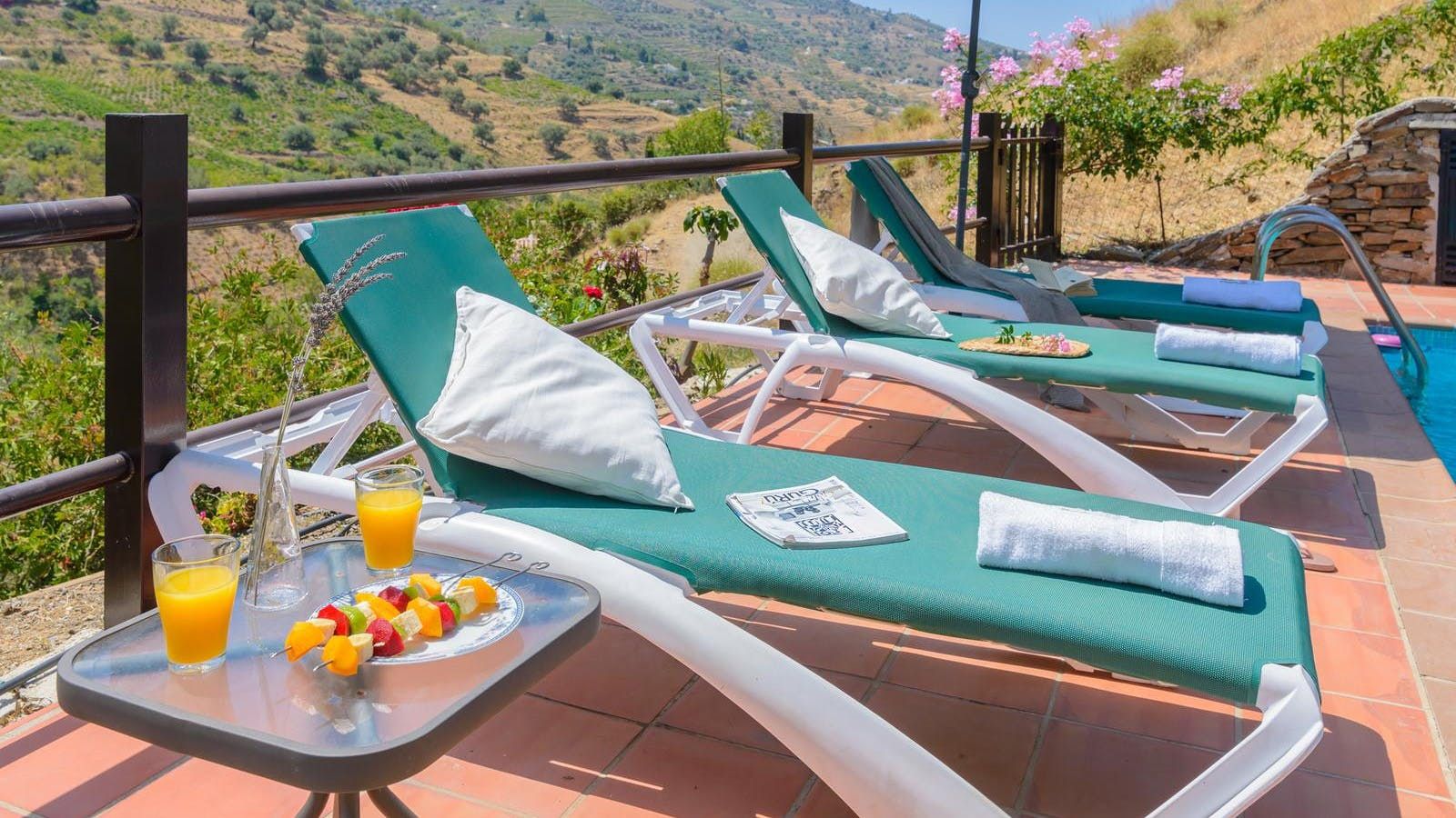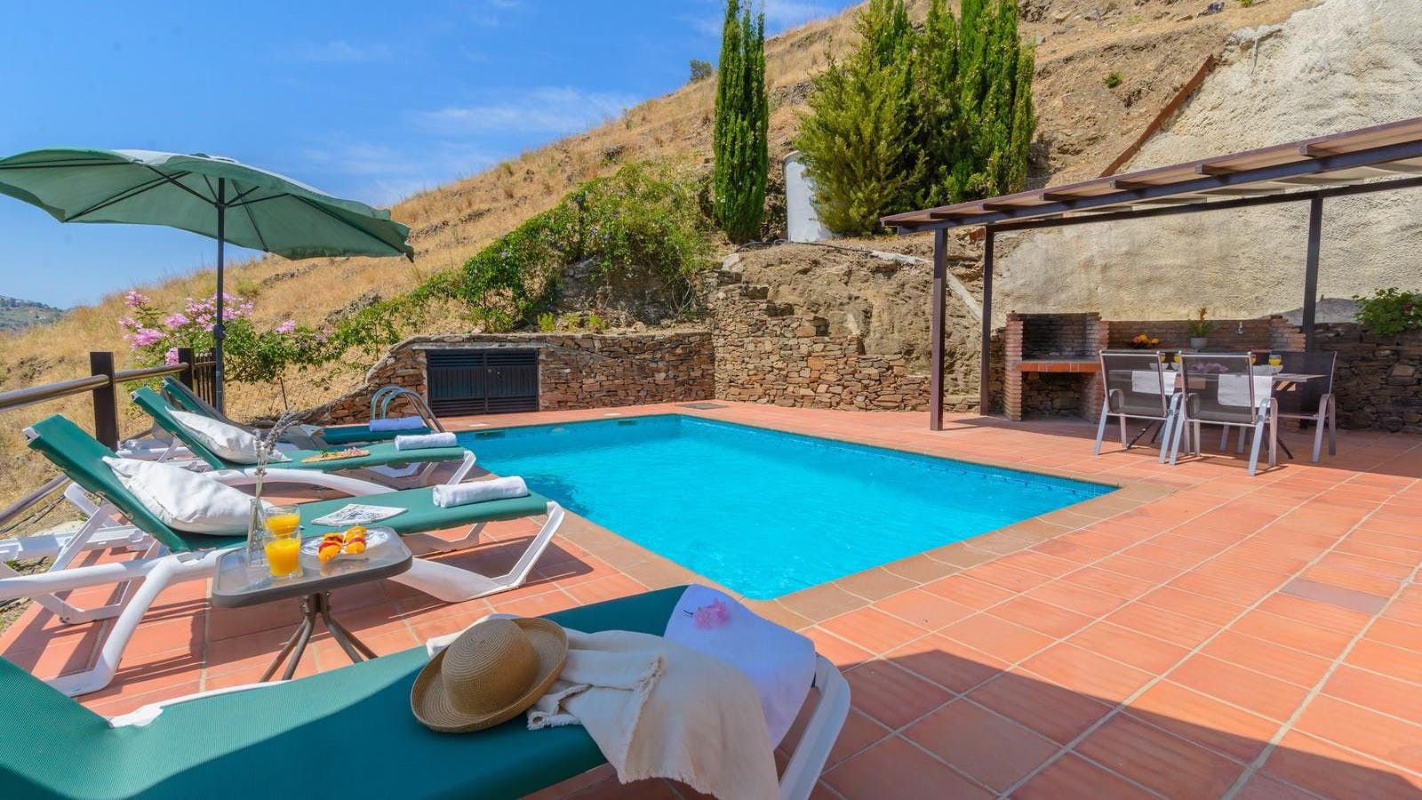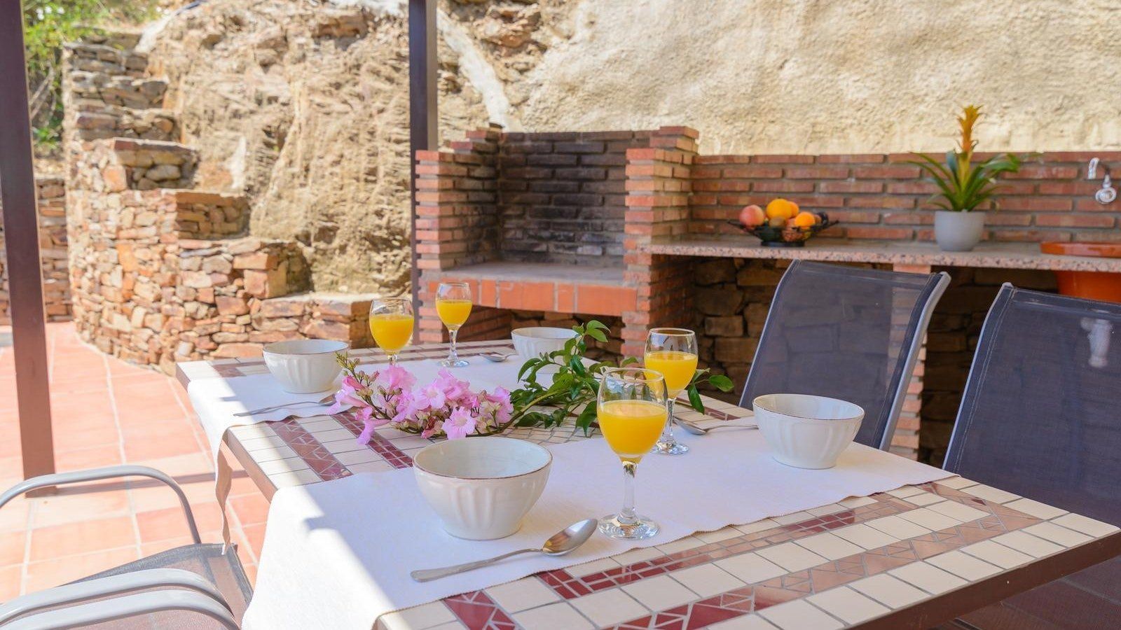 Just imagine yourself lying back on the sun lounger, feeling the Andalusian sun warming your skin, and listening to the quiet of nature, or the sizzle of dinner cooking on the stone barbecue. This cosy spot is nothing short of idyllic, perfect for a group of friends or family.