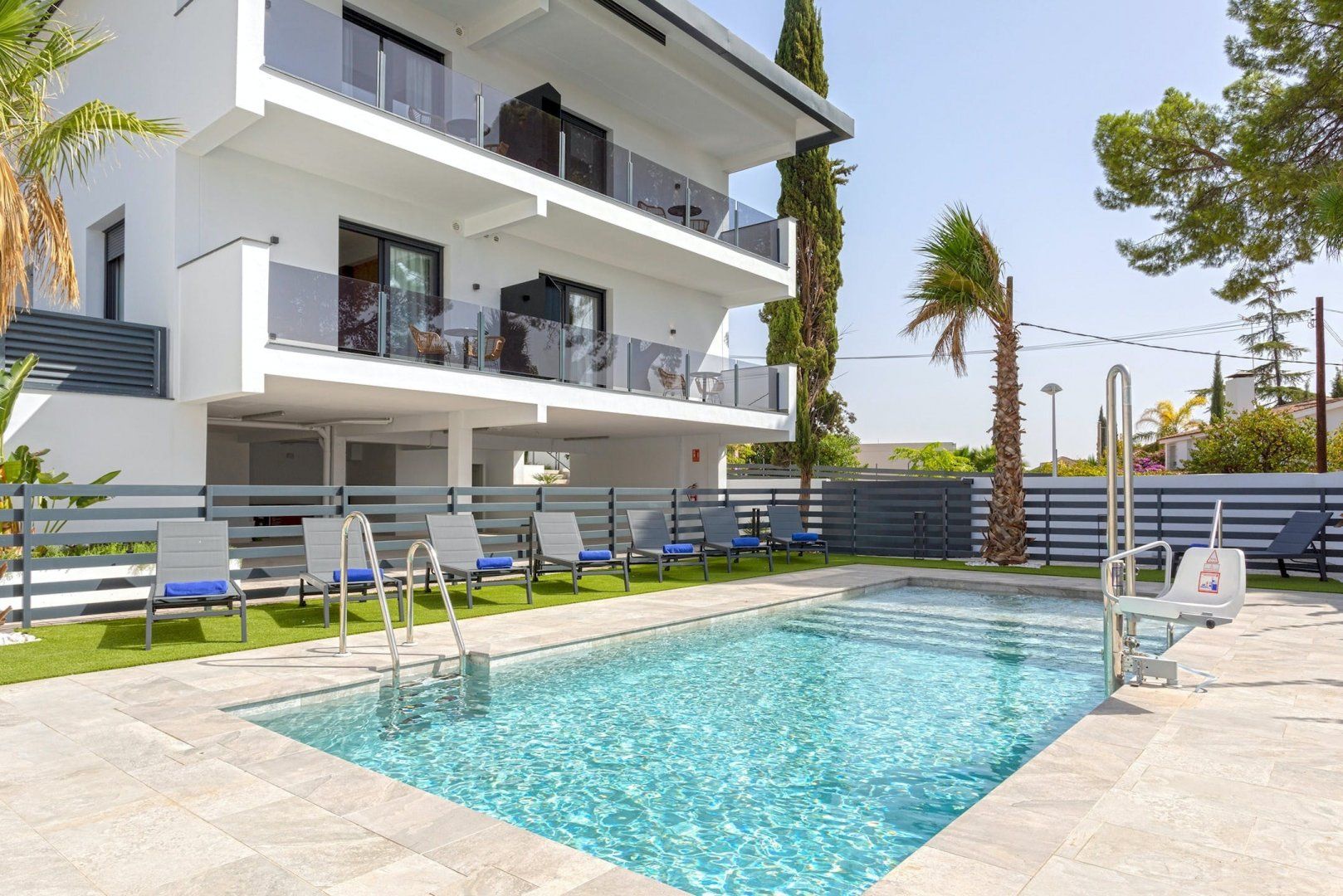 Just a short distance from Cordoba's town centre, this contemporary apartment offers a stylish and functional space to guests seeking a relaxing holiday in the sun. With a private terrace featuring comfortable outdoor furniture, it's a sweet spot to kick back with a cocktail. The open-plan main living area creates a sociable setting for guests to come together. However, it's worth bearing in mind that at full occupancy, two guests will sleep on the sofa beds in the living area. You'll have access to the building's swimming pool, poolside loungers and garden. Plus, there's an array of restaurants and shops around the local Arruzafa, alongside the historic centre of Cordoba, only 2 kilometres away.