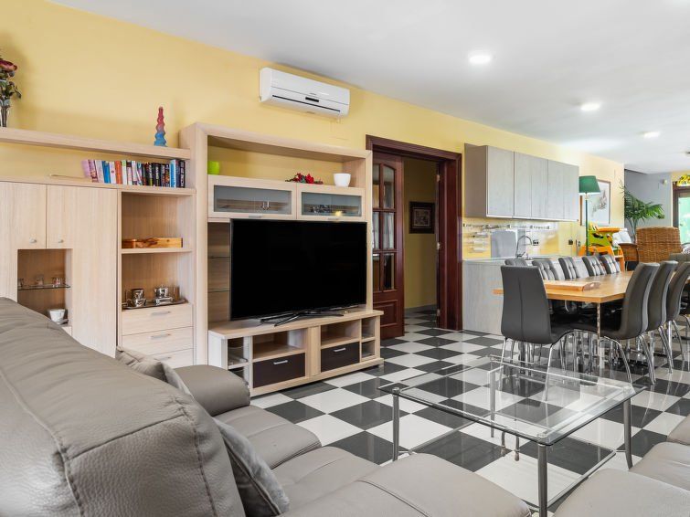 8-room house 300 m2 on 2 levels. Comfortable furnishings: living room with satellite TV, video, radio, CD-player, DVD and air conditioning. Exit to the garden. Living/dining room. Exit to the garden. 1 room with 1 double bed (180 cm, length 190 cm). Open kitchen (dishwasher, 4 ceramic glass hob hotplates, microwave, freezer, grill) with dining table.