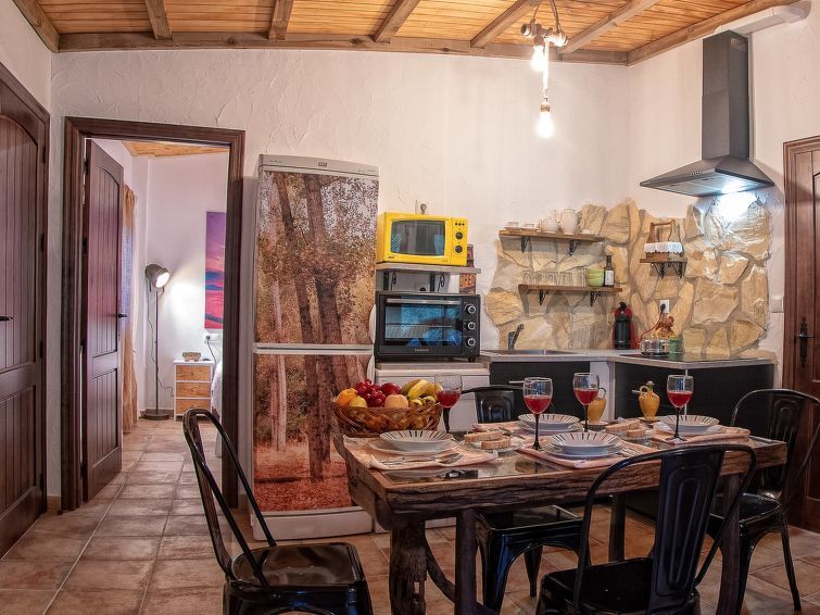 "La Cascada", 3-room house 80 m2, on the ground floor. Practical and comfortable furnishings: living/dining room with Scandinavian wood stove, dining table, air conditioning and forced-air heating. Exit to the garden. 2 rooms, each room with 1 french bed (150 cm, length 190 cm). Open kitchen (oven, dishwasher, 4 ceramic glass hob hotplates, microwave, freezer, electric coffee machine, Capsules for coffee machine (Dolce Gusto) extra) with dining table.