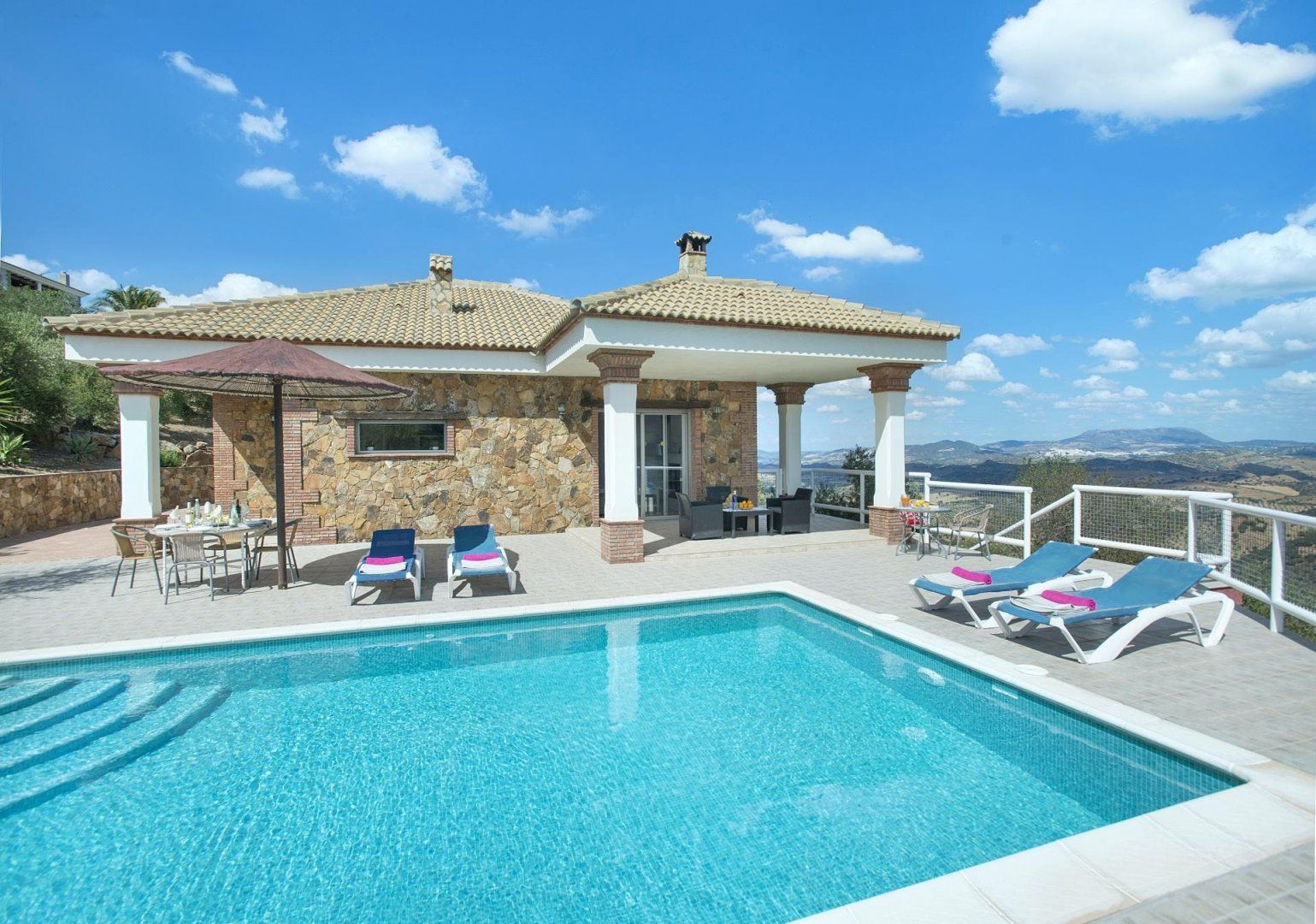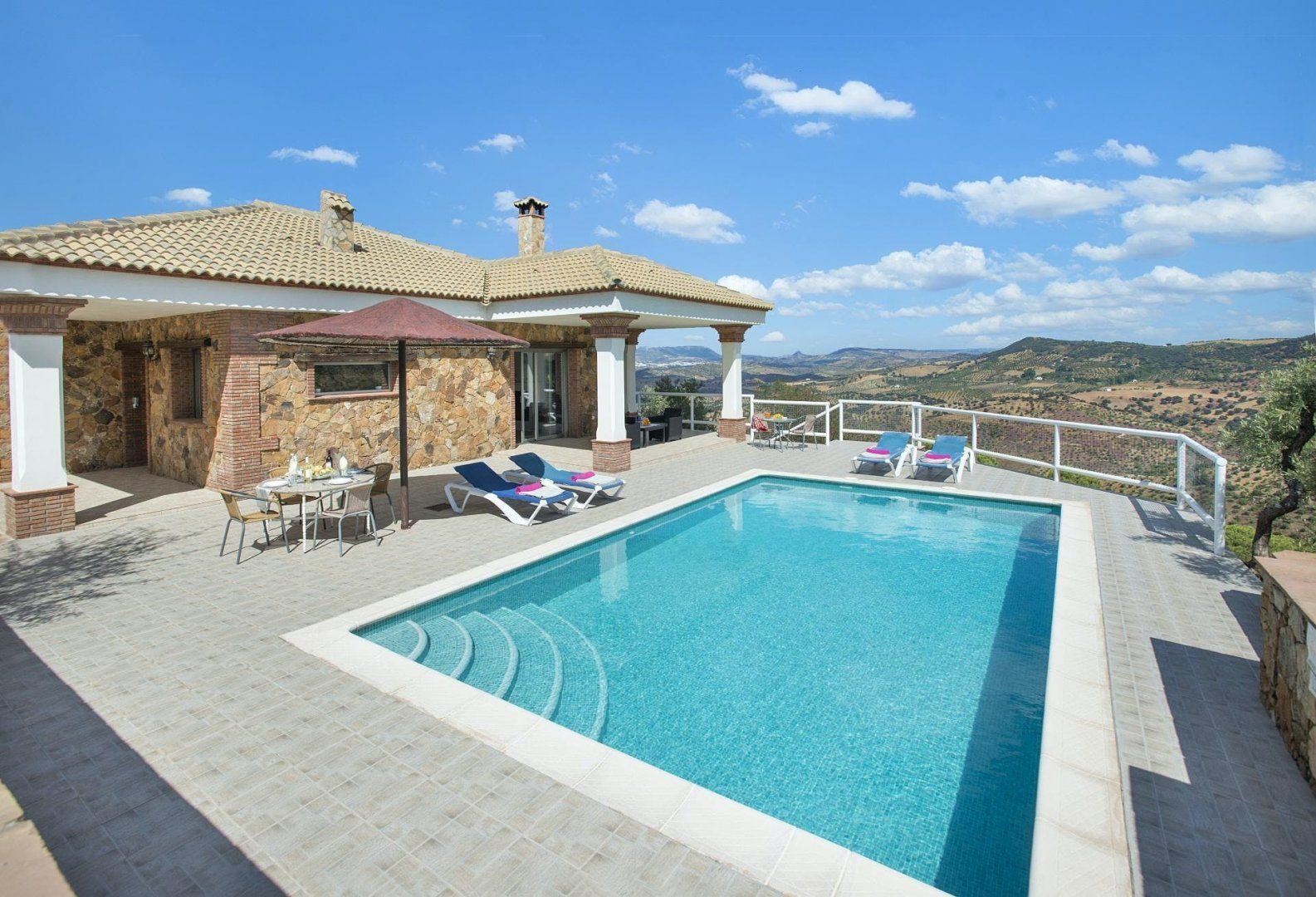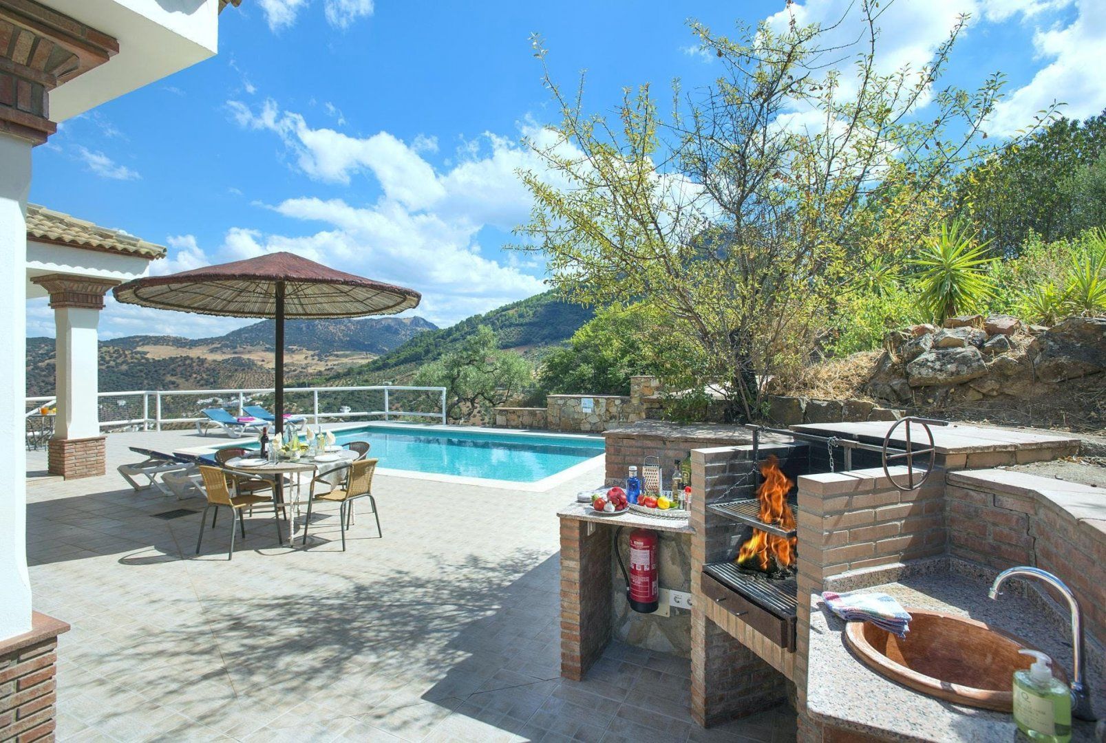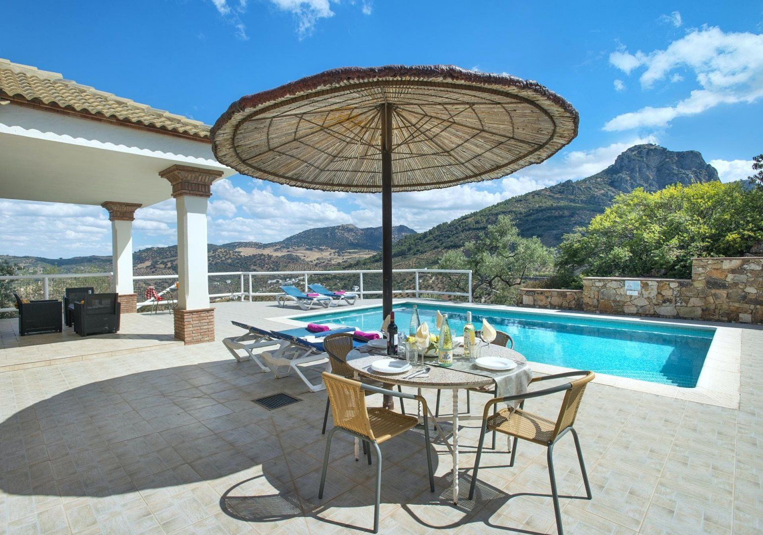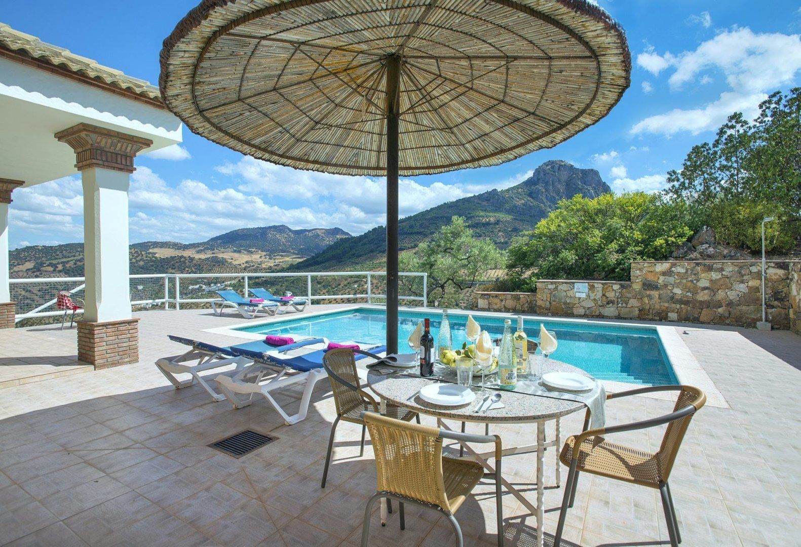 Stunning views across the Sierra de Cádiz await you at this traditional Andalusian villa. With a backdrop like that, we're guessing you'll spend most of your time outside. Take your pick between the sun-kissed terrace, the main suite's balcony, and the private swimming pool – just be careful with little ones, though, since the grounds are terraced. The inside isn't as impressive – and in some places, it's a little dated – but it's comfortable nonetheless. When you're ready to explore, El Gastor is a five-minute drive away, home to restaurants serving Spanish classics and local shops. Or, venture further afield to the historical city of Ronda – it's just under forty minutes by car.