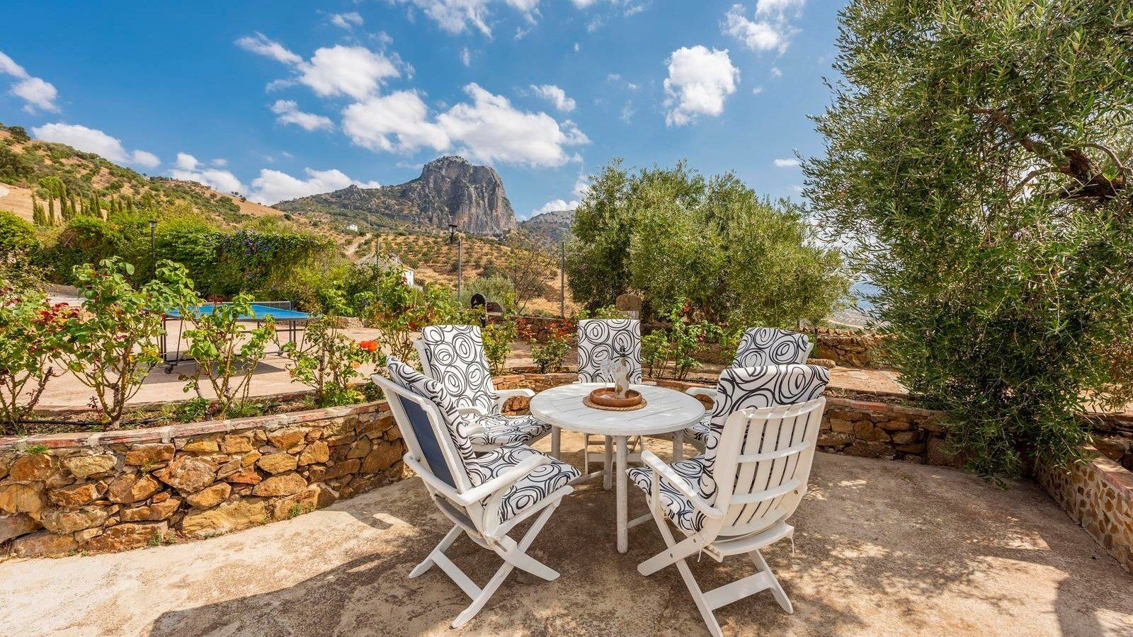 From wherever you are in the outdoor space, ranging from the swinging hammock to the cosy cushions, the stunning Sierra de Cádiz mountains are on display. It's a breathtaking view that needs to be seen in person to be truly appreciated.