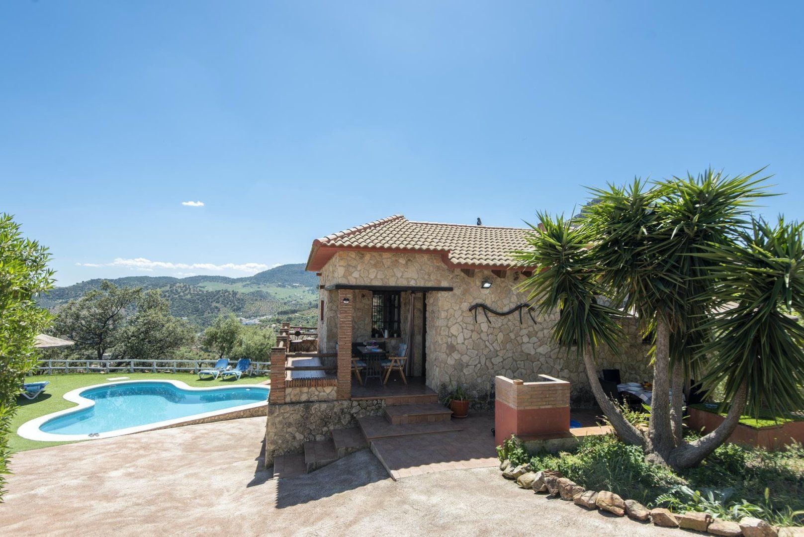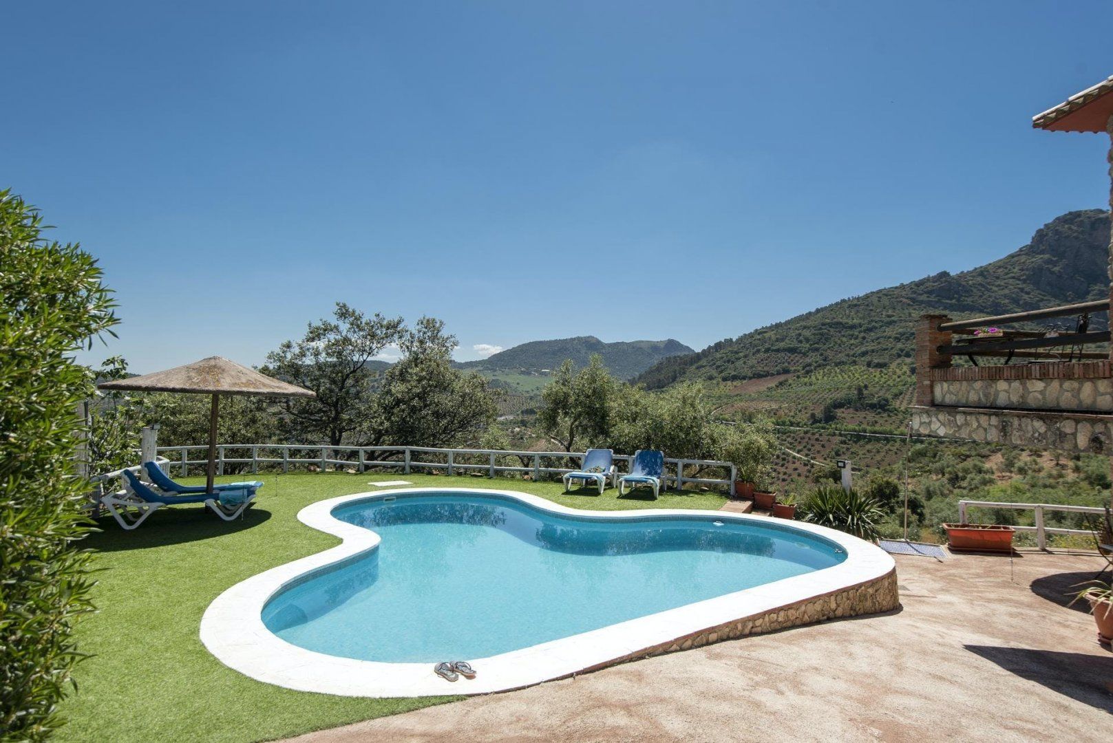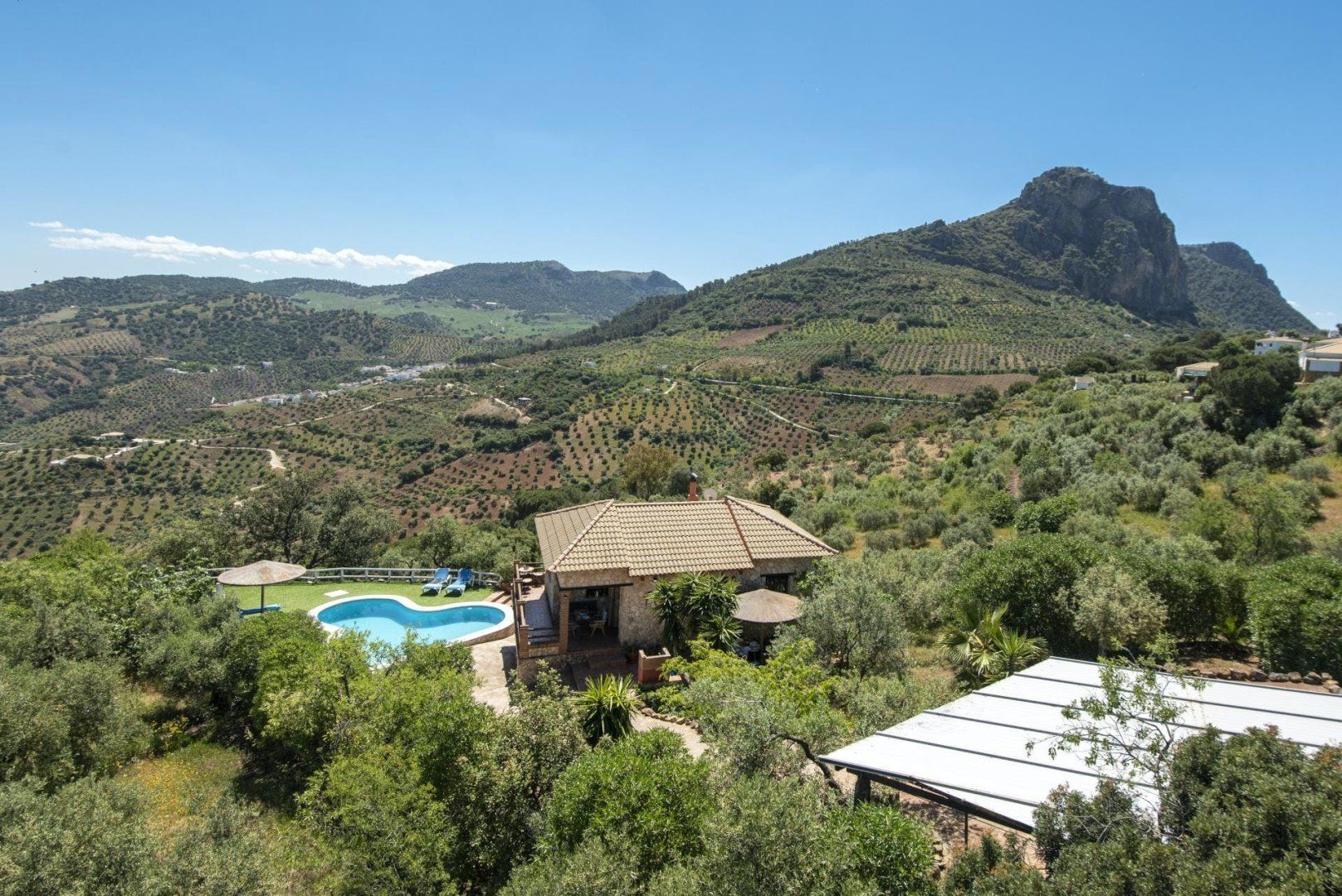 Anyone in search of a restorative retreat will love the location of this home. Surrounded by olive trees and offering views across the peaks of El Algarín and Las Grajas, this is the ideal opportunity to disconnect and enjoy total relaxation. The rooms and furnishings are a little dated, but there’s plenty of traditional charm. We imagine most of your time will be spent outdoors lounging by the pool or out exploring the region. From here, it’s just 2.2 kilometres to the whitewashed village of El Gastor, while the historic town of Ronda is just a thirty-minute drive away.