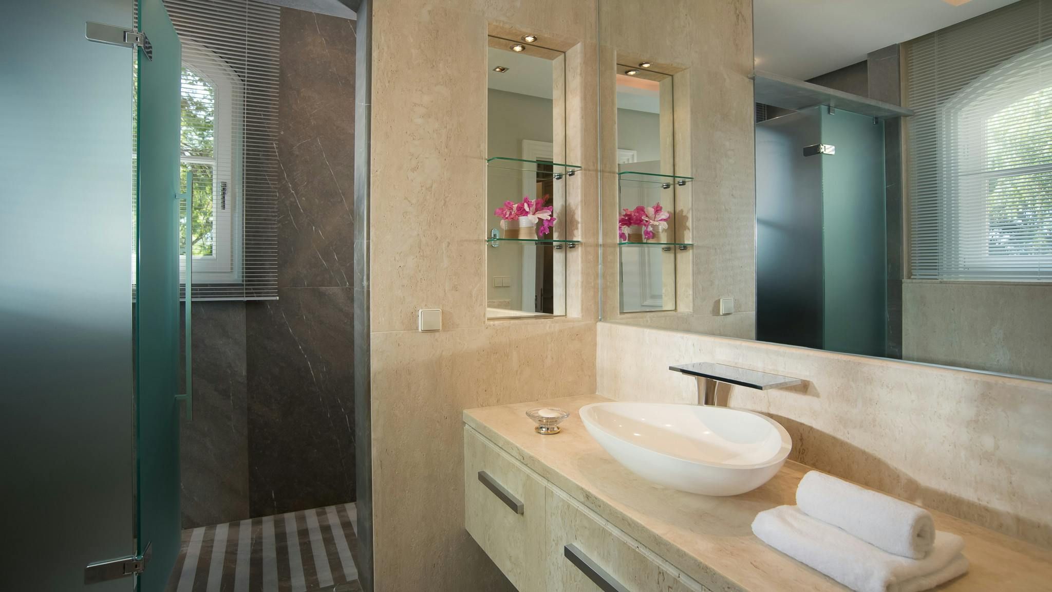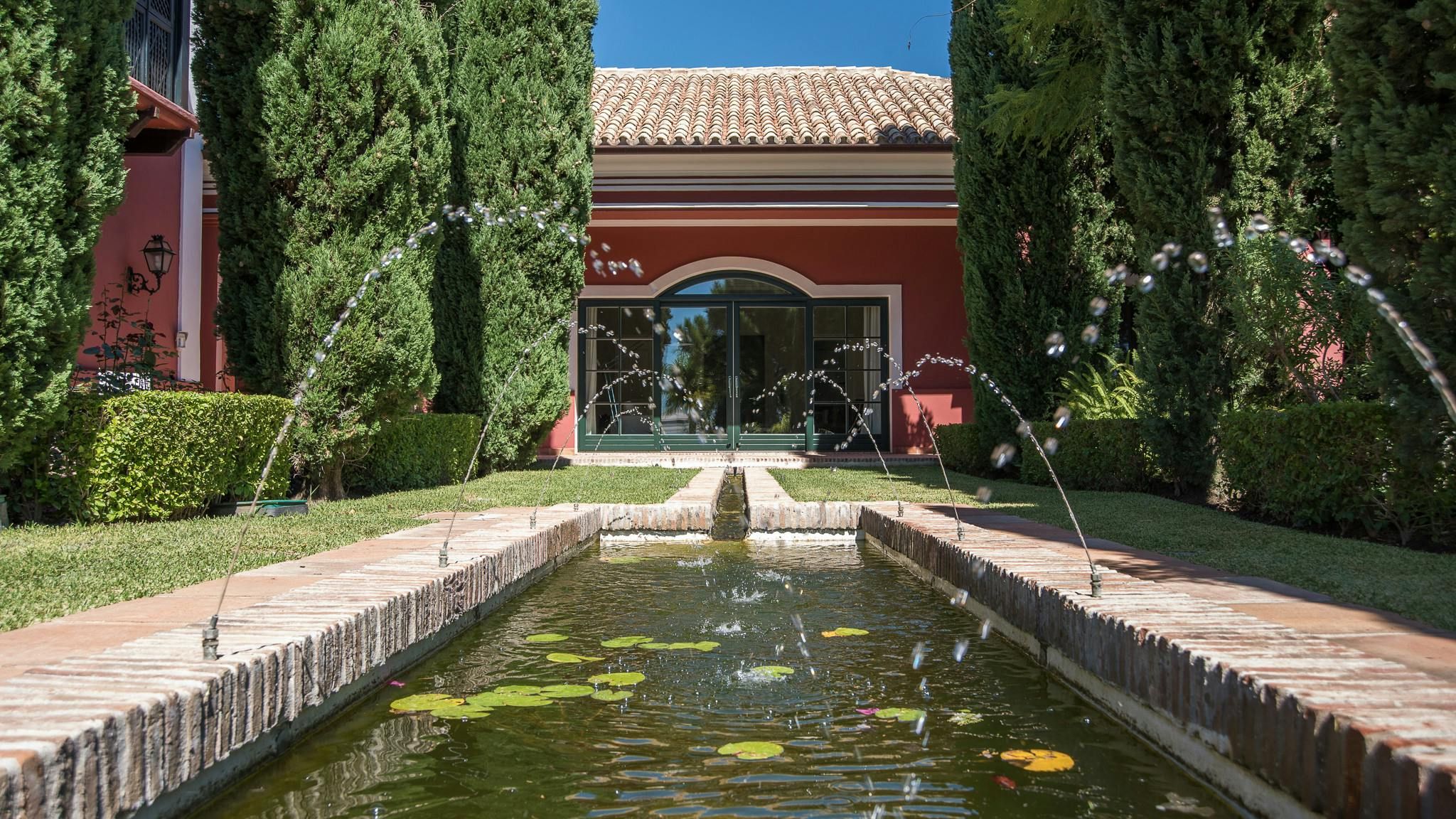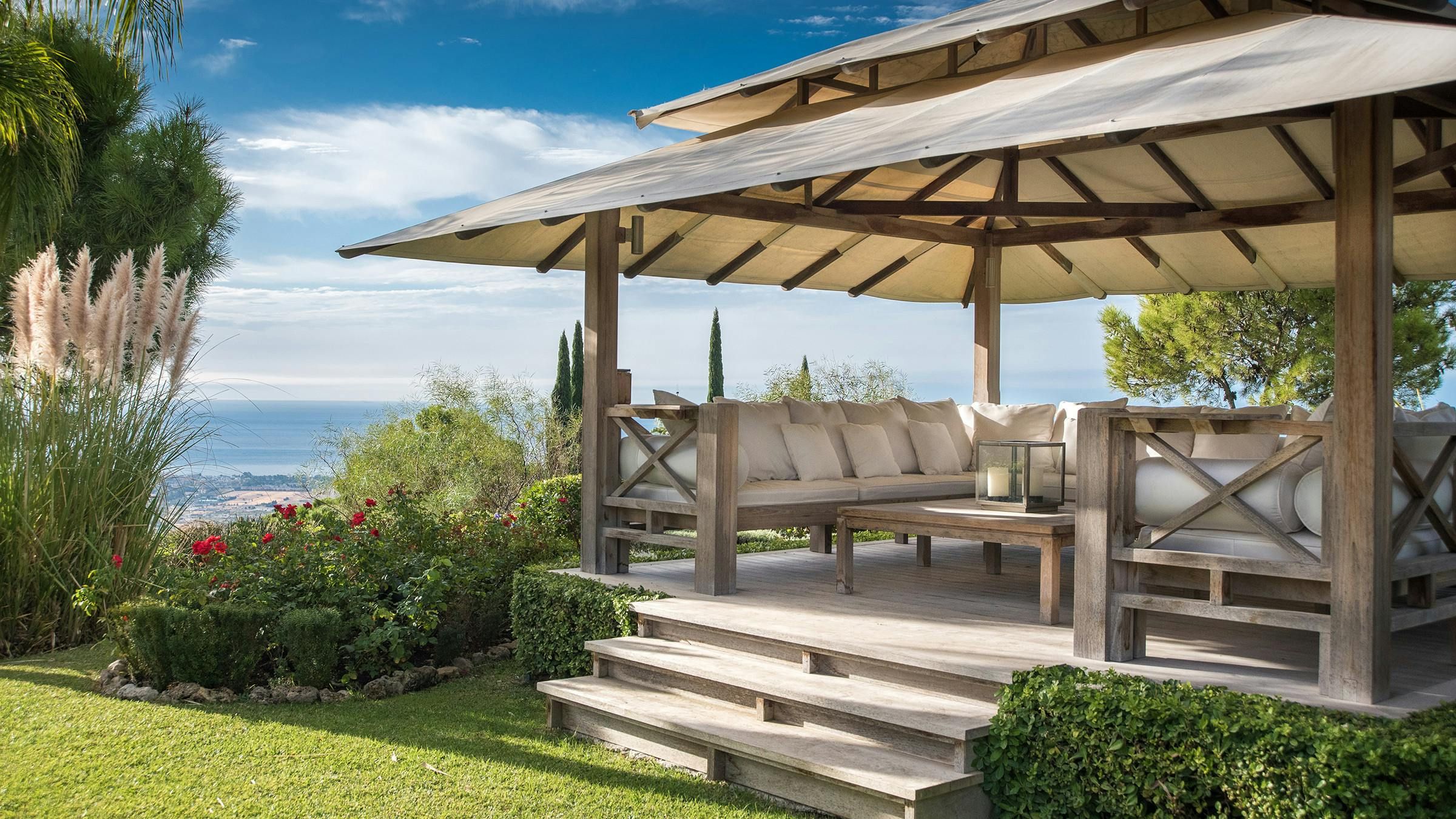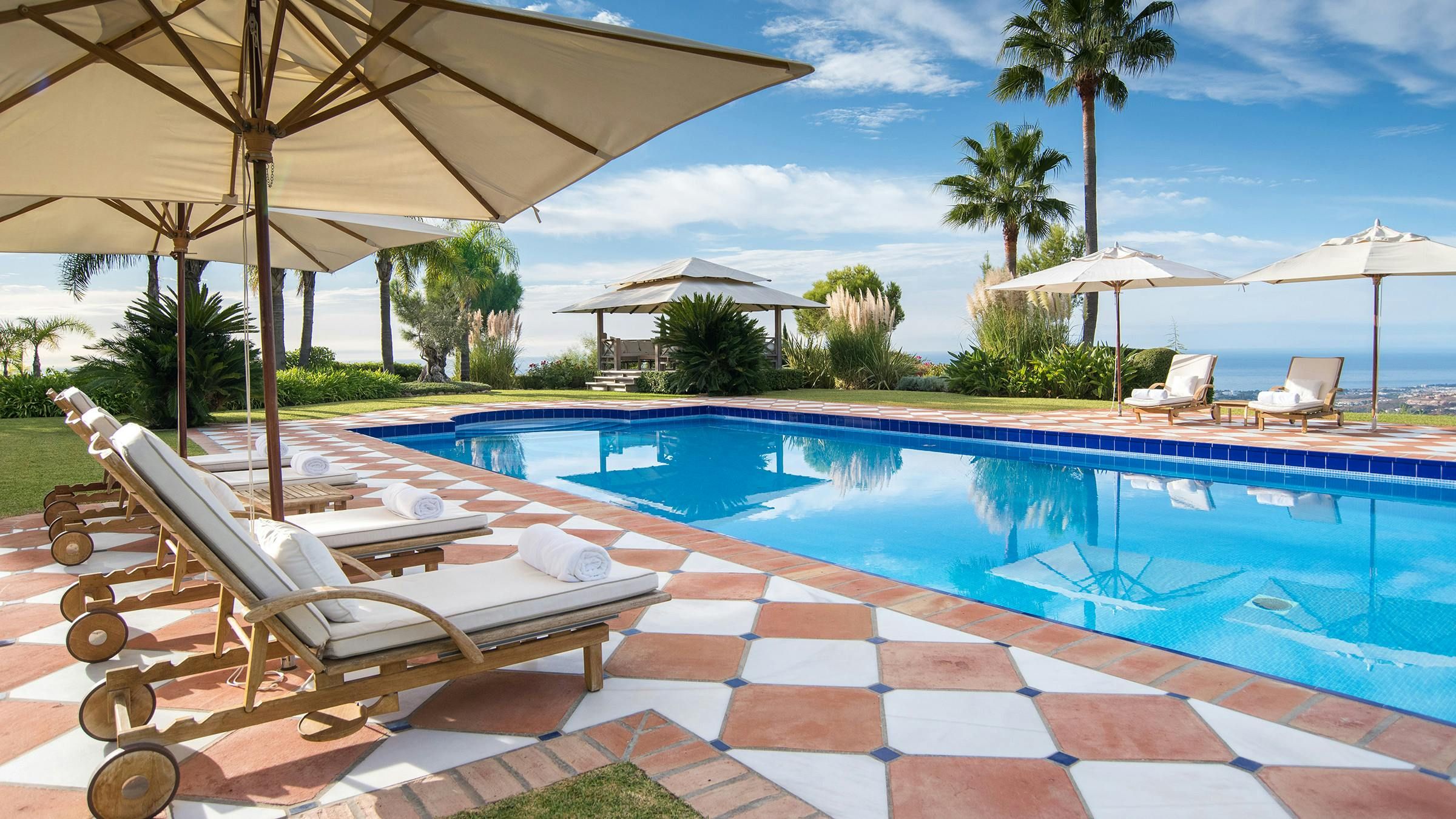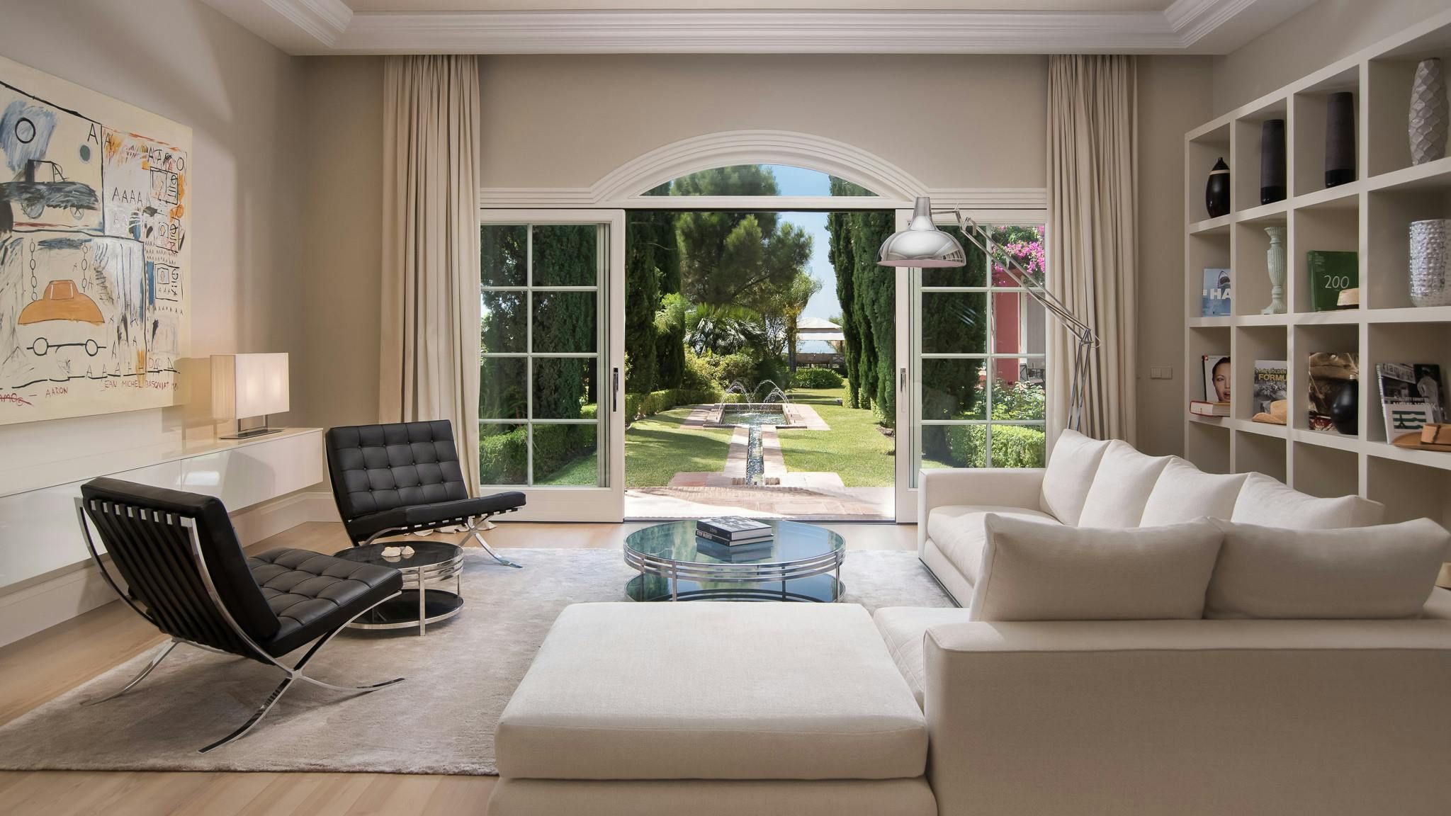 Making a statement in the Mediterranean countryside, where it's tucked away in an exclusive gated community, this bold and luxurious villa overlooks the Costa del Sol from its sweeping garden. Outside you'll find ample seating and a private pool, but it's not the only entertainment available here. A private cinema room and games room with darts and a pool table will keep the whole family entertained, and there's even a gym for fitness fanatics. Location-wise, Nikki Beach is about twenty-five minutes away, and La Quinta Golf & Country Club is reachable by car.