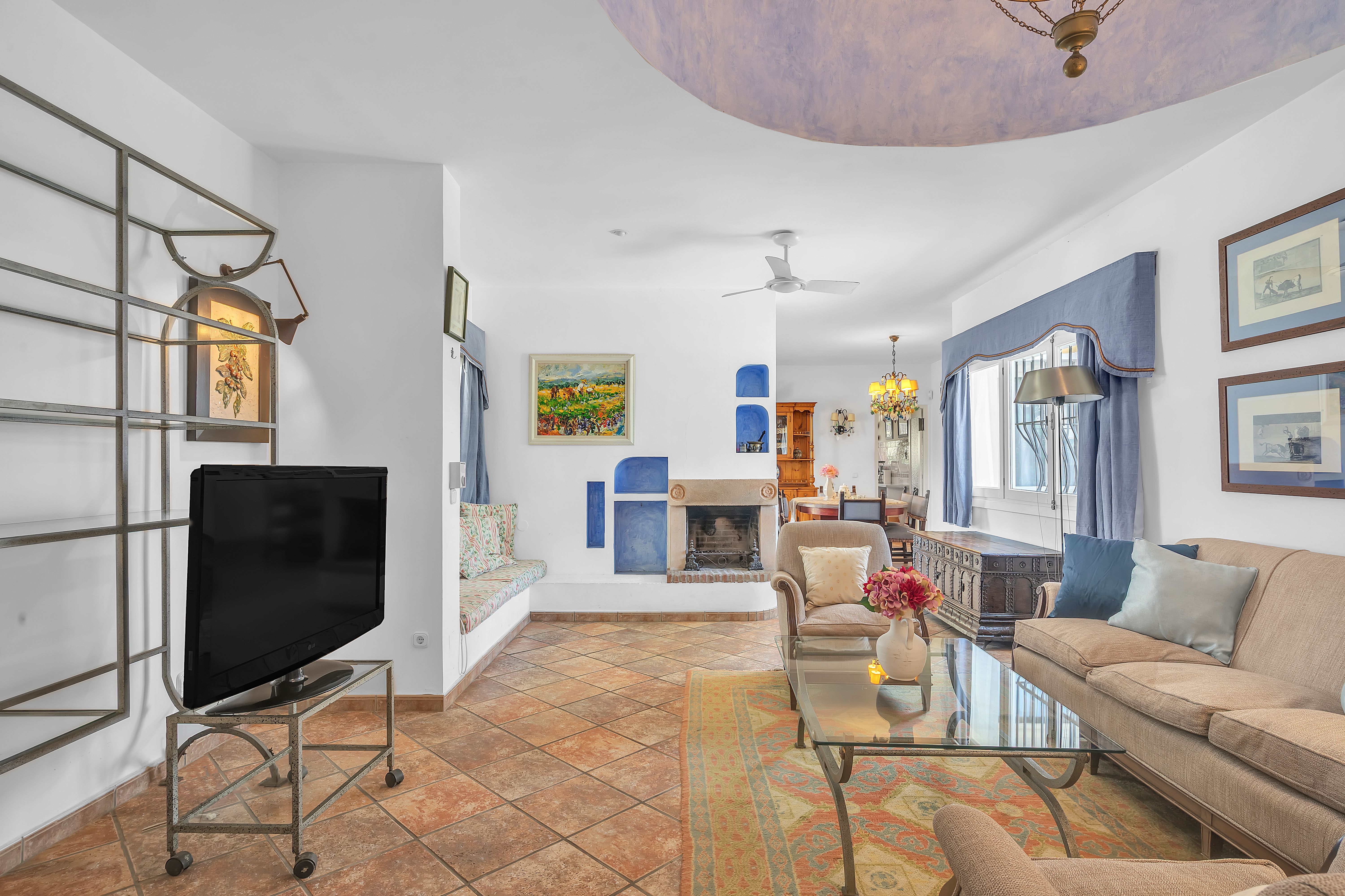 On cooler evenings, the living room, with its crackling fireplace and sumptuous sofas, will beckon you to curl up and toast your feet after a long day on Saladillo Beach. Though with Andalusian temperatures, you’ll likely enjoy the balmy evening heat from your outdoor lounge – a glass of sangria in hand. Keen chefs will have a field day preparing Spanish dinners on the built-in barbecue whilst the rest of the family lay the stunning glass table.