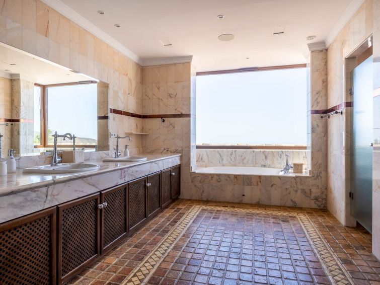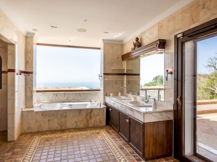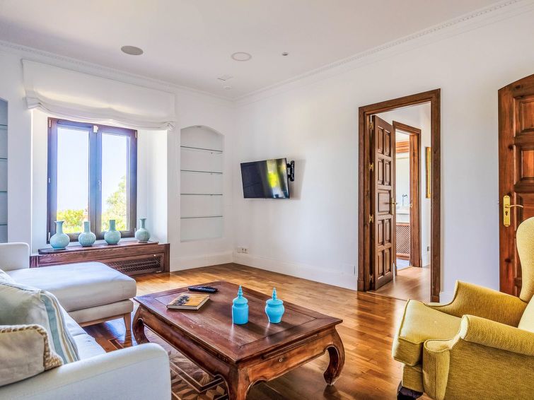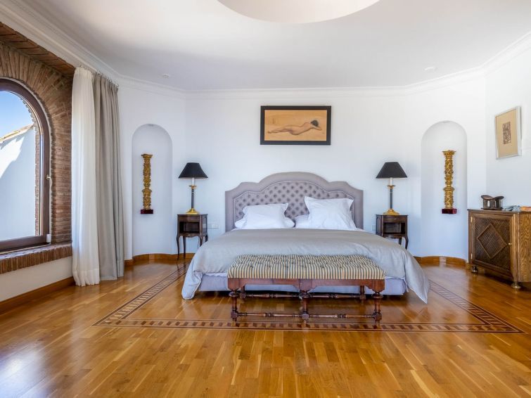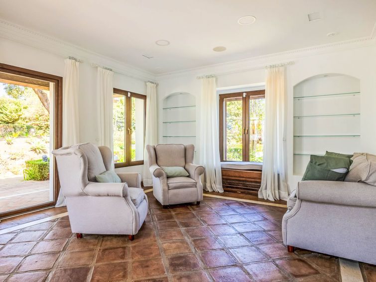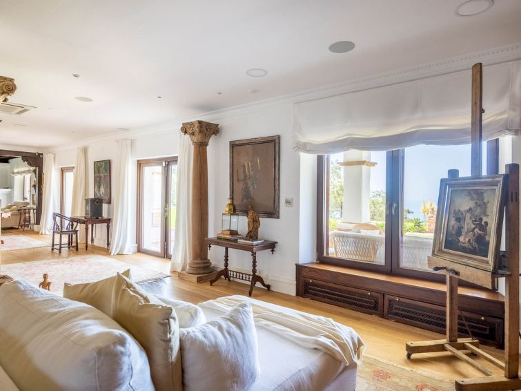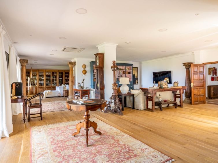 "Villa Serena", 9-room villa 1'250 m2 on 2 levels. Rustic and tasteful furnishings: living room with open-hearth fireplace (only for decoration), library, digital TV, air conditioning and forced-air heating. Exit to the terrace. Dining room with air conditioning and forced-air heating.