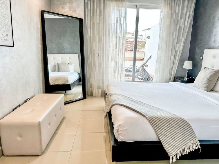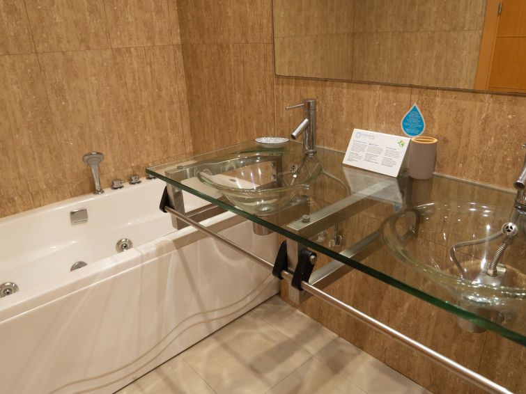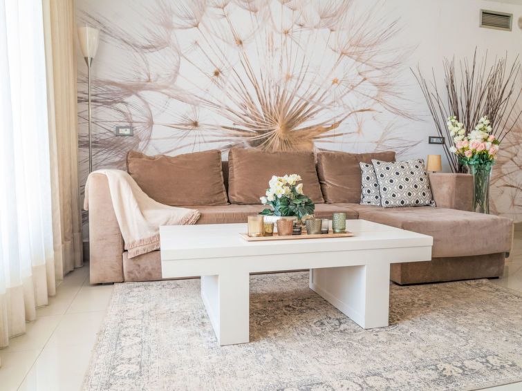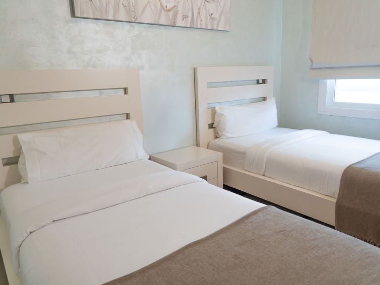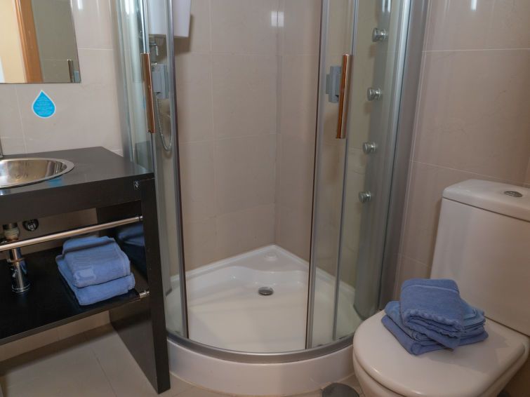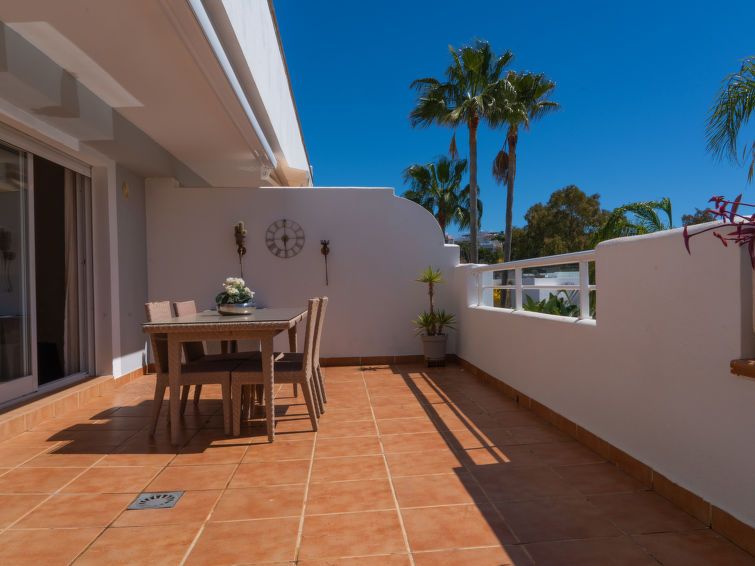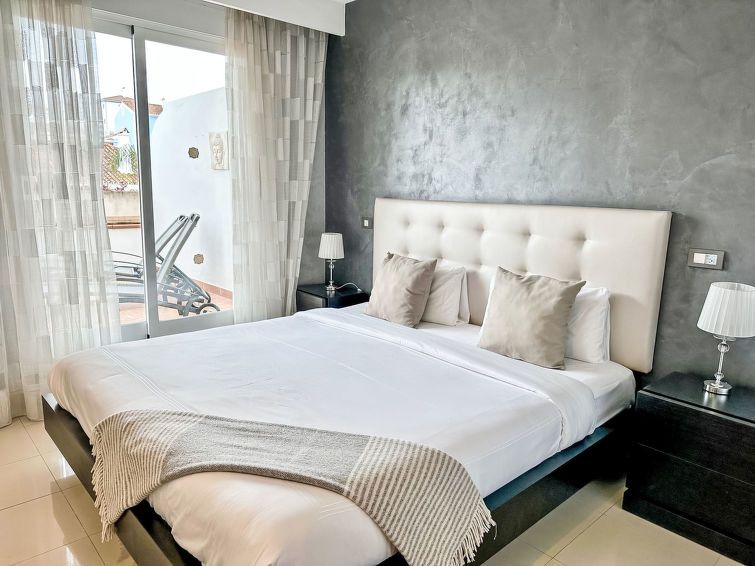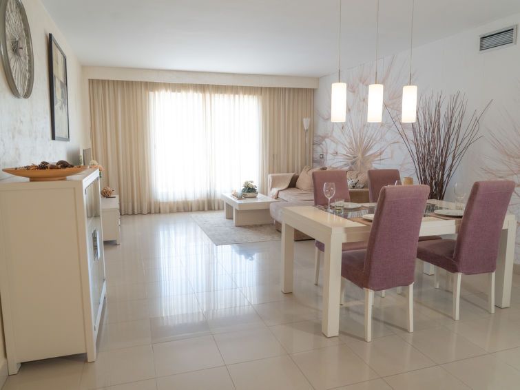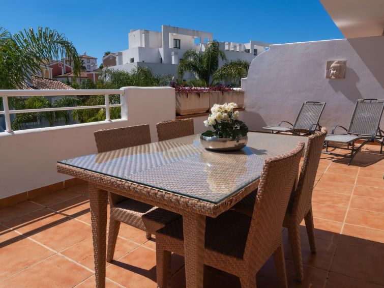 "Cortijo Aqua Marina", 3-room apartment 106 m2, south facing position. Bright, very comfortable and beautiful furnishings: living/dining room with satellite TV, air conditioning and forced-air heating. Exit to the terrace. 1 room with 1 french bed (180 cm, length 200 cm), bath/WC, double hand-basin and hydro massage shower (private) air conditioning, forced-air heating and electric shutters.