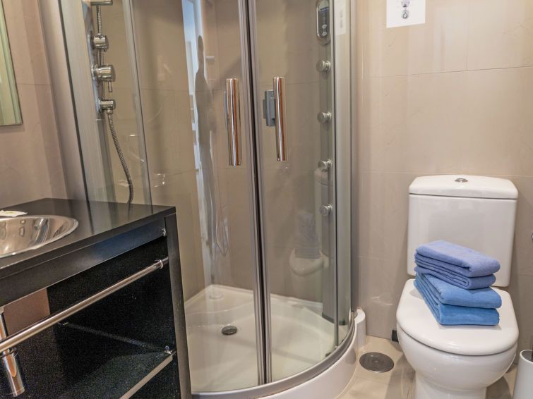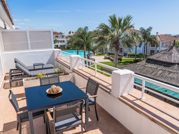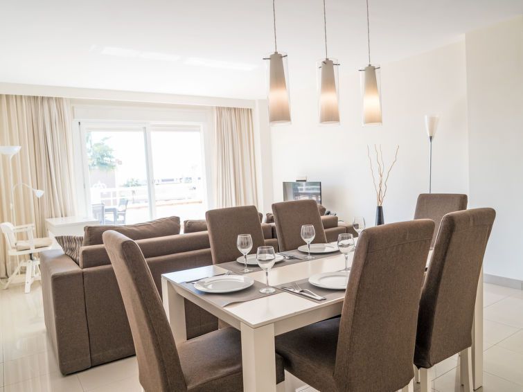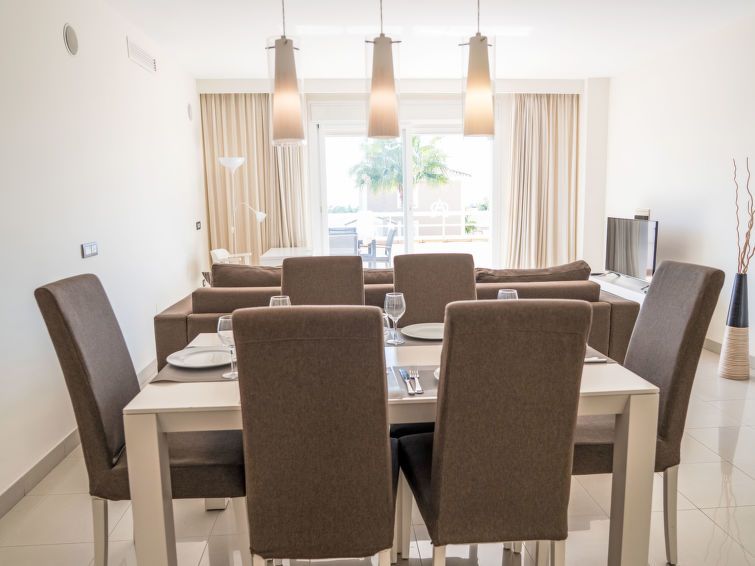 "Cortijo sunset", 3-room apartment 106 m2, south facing position. Bright, very comfortable and beautiful furnishings: living/dining room with digital TV, air conditioning and forced-air heating. Exit to the terrace. 1 room with 1 french bed (180 cm, length 200 cm), bath/WC and double hand-basin (private) air conditioning and electric shutters.