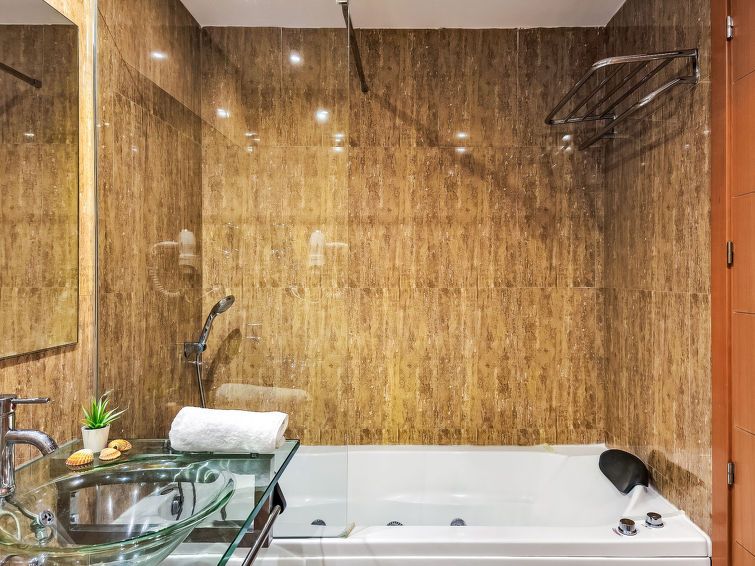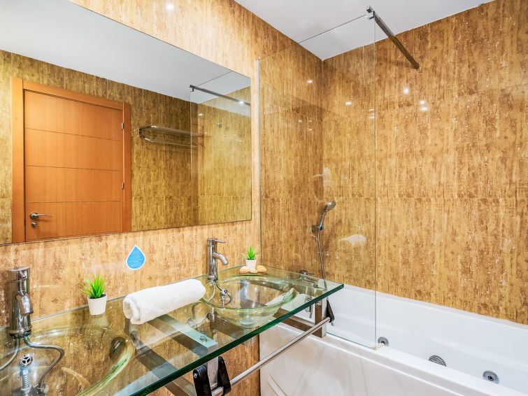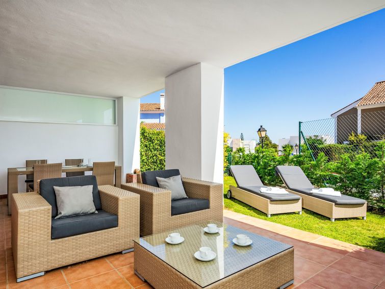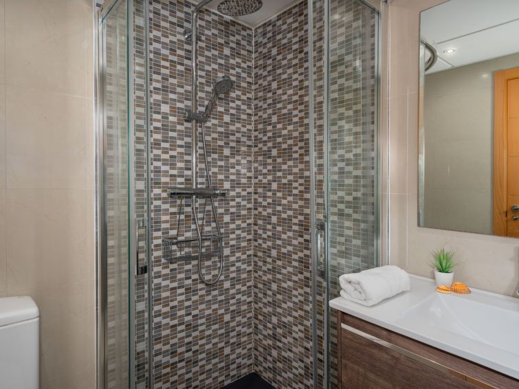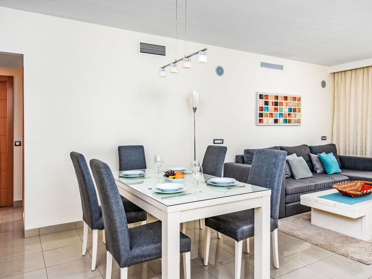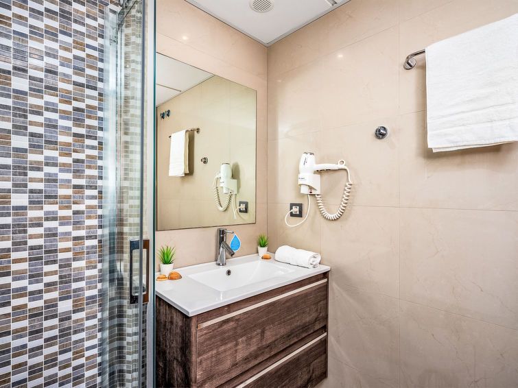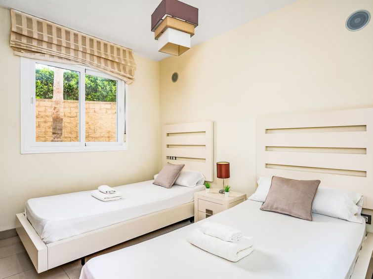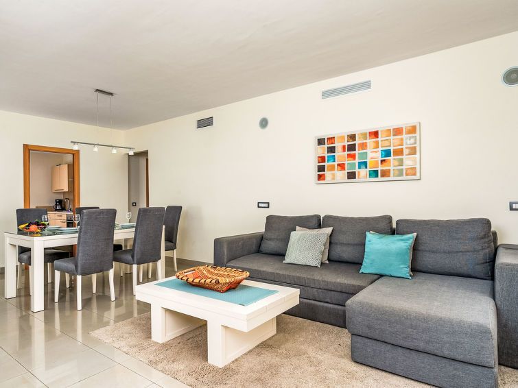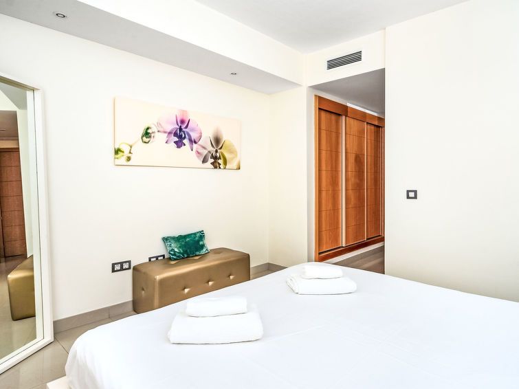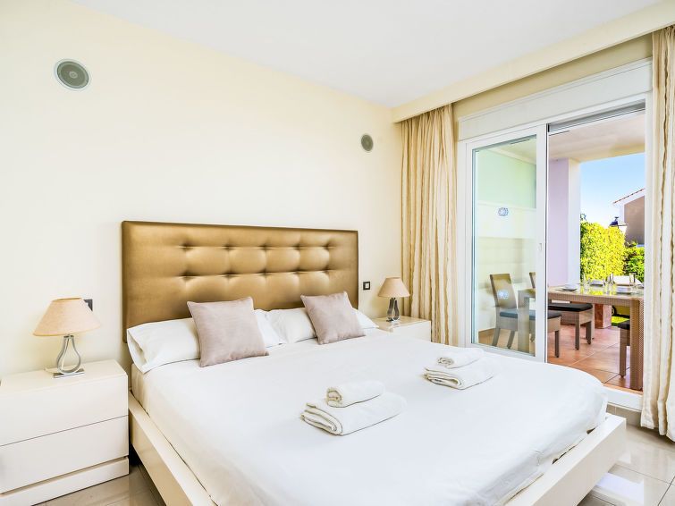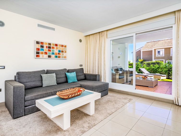 "Cortijo del Mar Sunshine", 3-room apartment 90 m2, lower ground floor. Object suitable for 4 adults. Spacious and bright, comfortable and modern furnishings: living/dining room with digital TV. Exit to the terrace. 1 room with 1 french bed (180 cm, length 200 cm), bath/WC, double hand-basin and hydro massage bath (private).