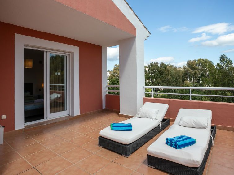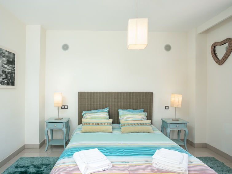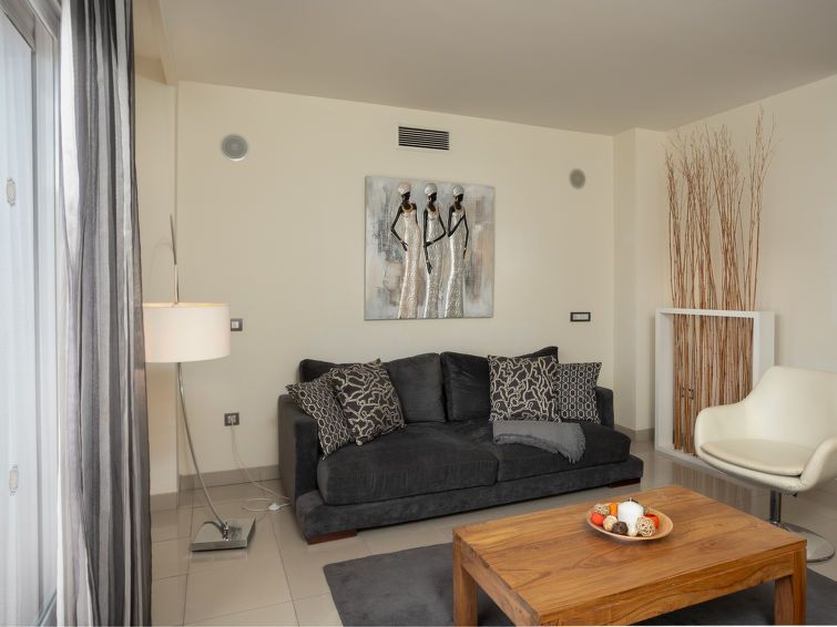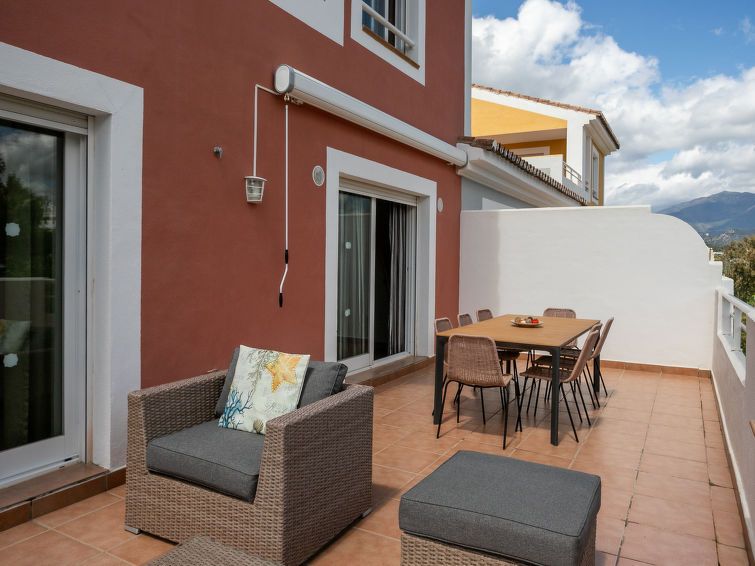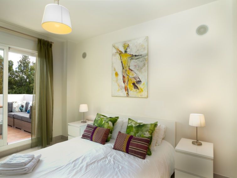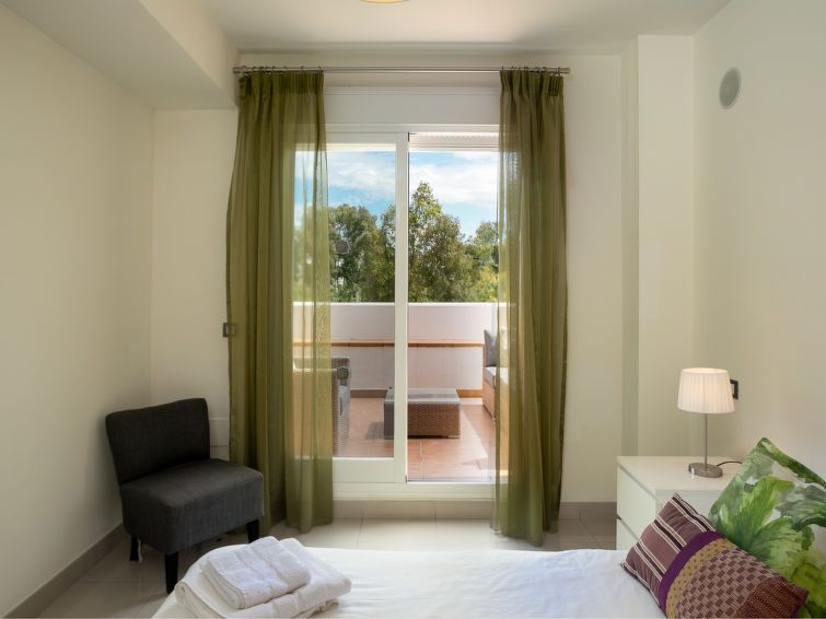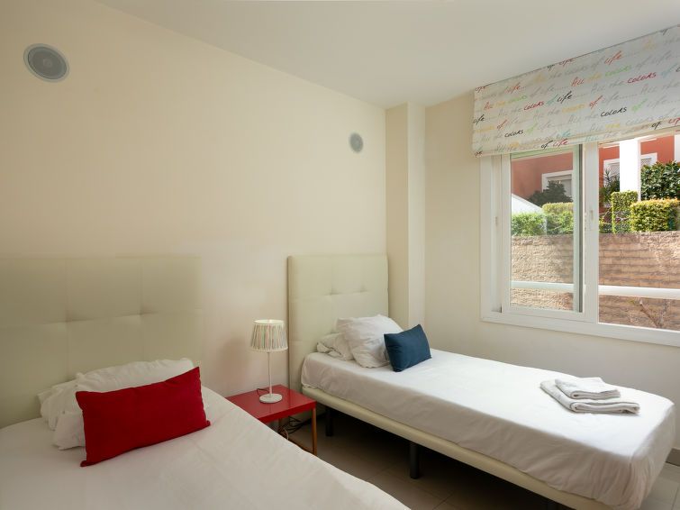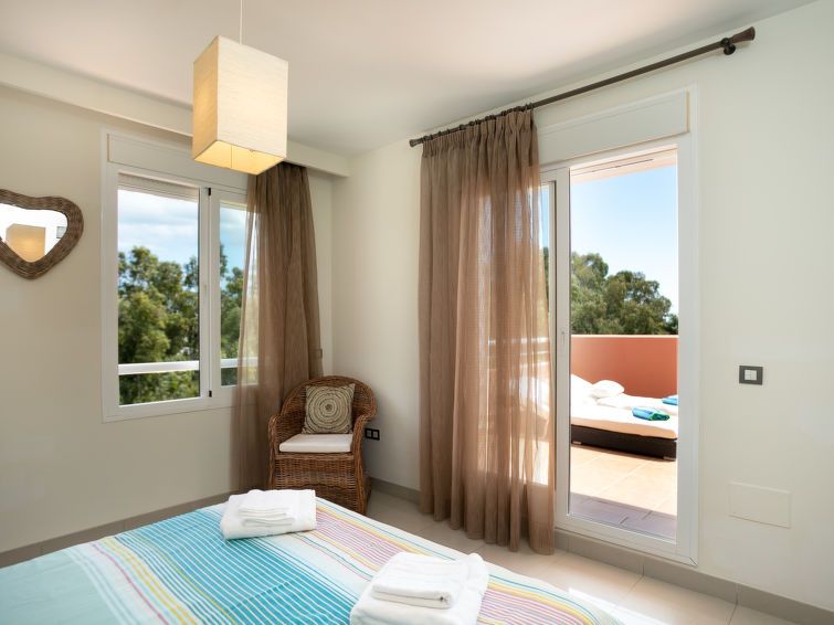 "Cortijo del Mar - Serena", 4-room apartment 128 m2 on 2 levels on 2nd floor. Bright, comfortable and modern furnishings: living/dining room with digital TV and air conditioning. Exit to the patio. 1 room with 1 french bed and shower/bidet/WC (private) air conditioning and forced-air heating.