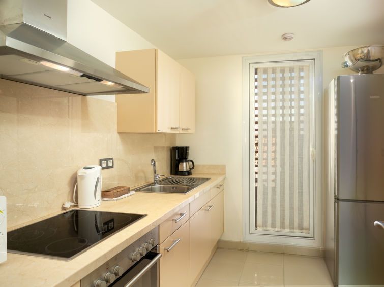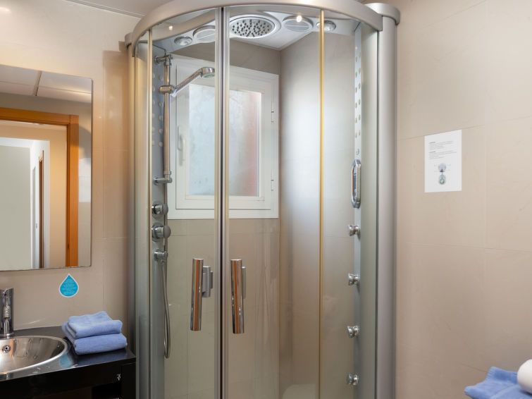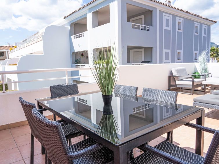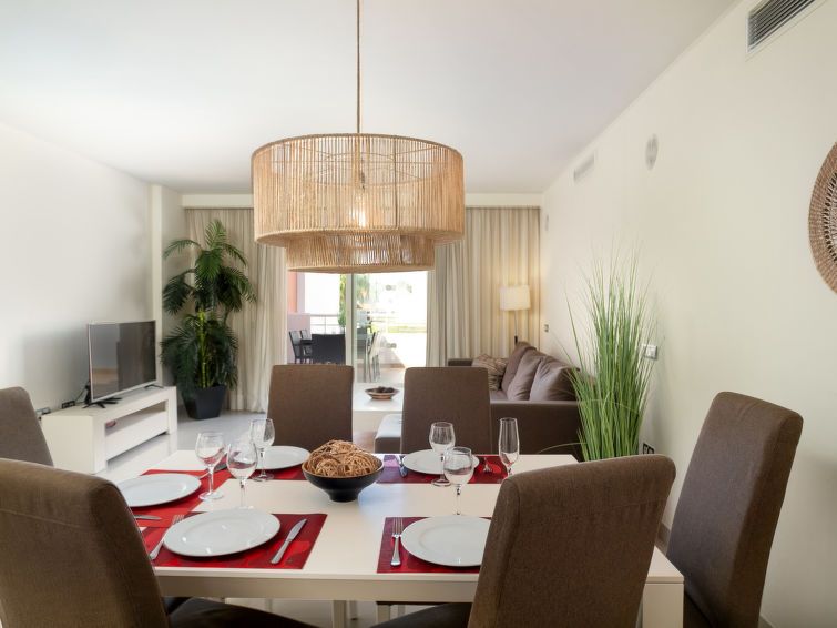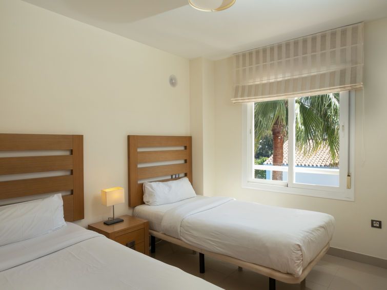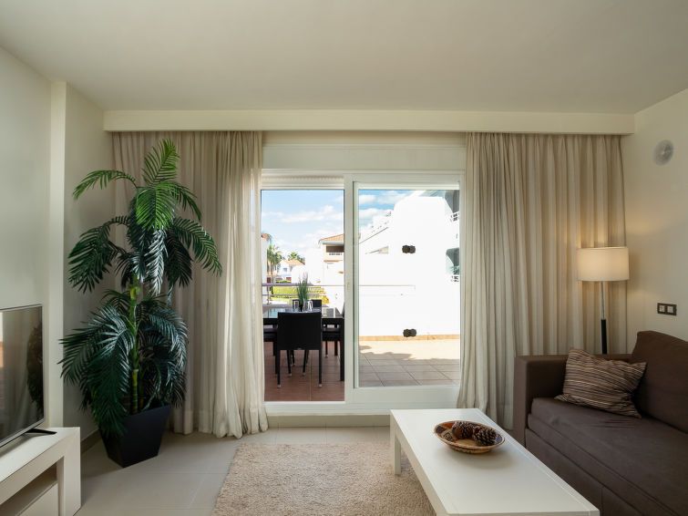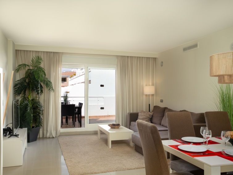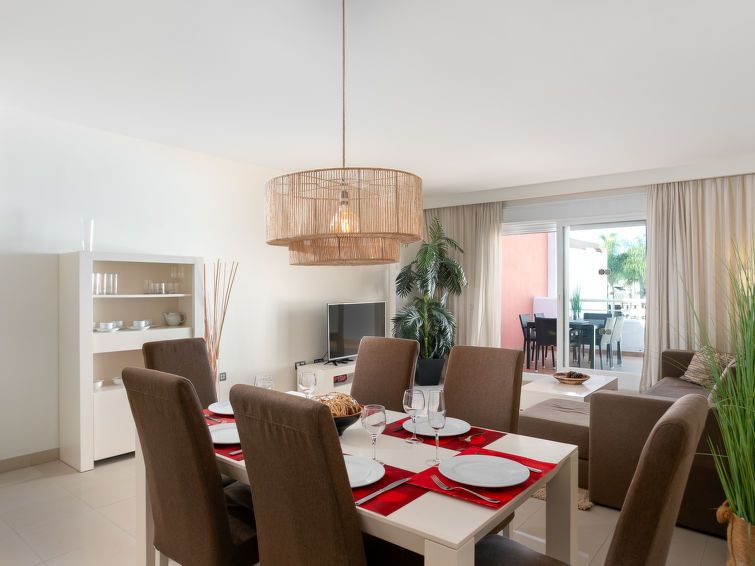"Cortijo seastar", 3-room apartment 106 m2, south facing position. Bright, very comfortable and beautiful furnishings: living/dining room with digital TV, air conditioning and forced-air heating. Exit to the terrace. 1 room with 1 french bed (180 cm, length 200 cm), bath/WC and double hand-basin (private) air conditioning and electric shutters.