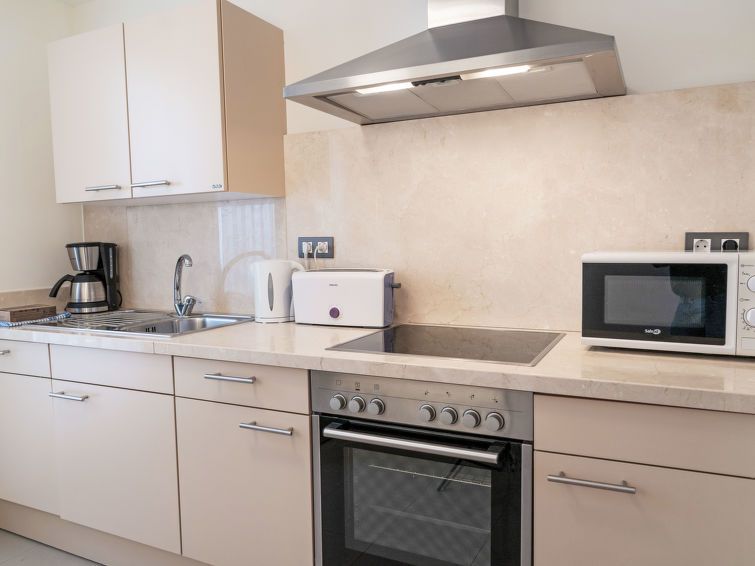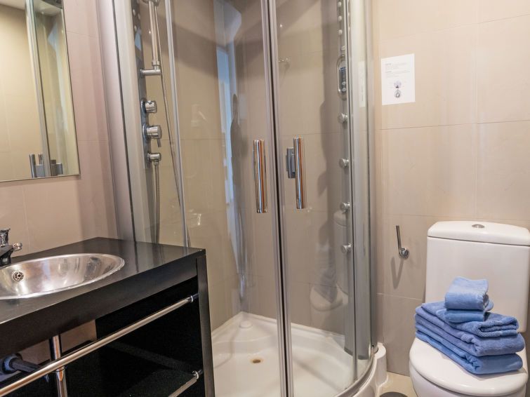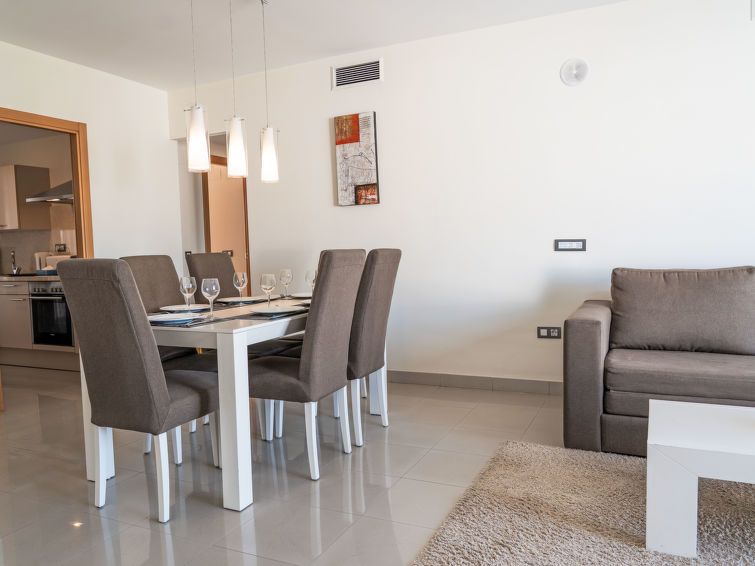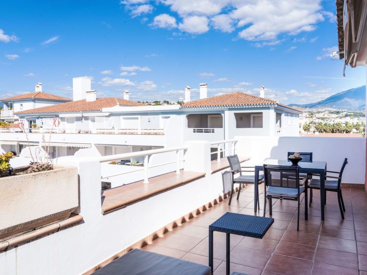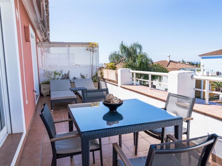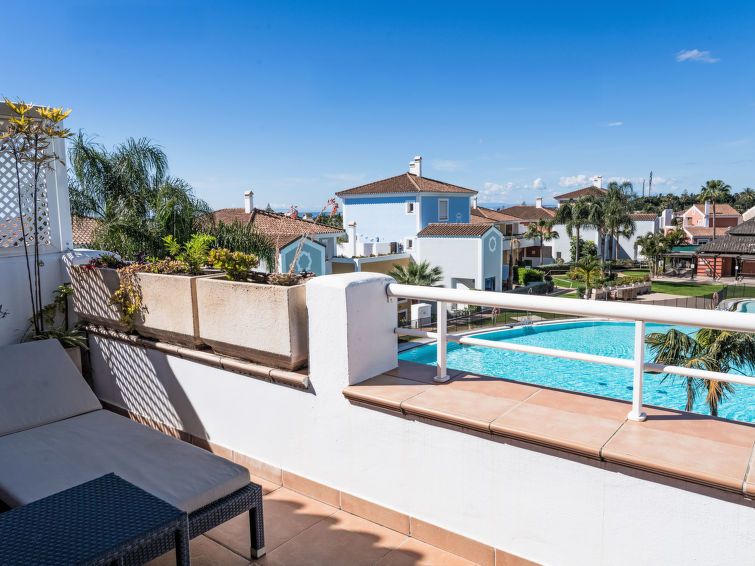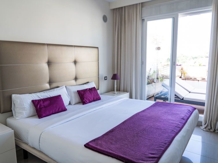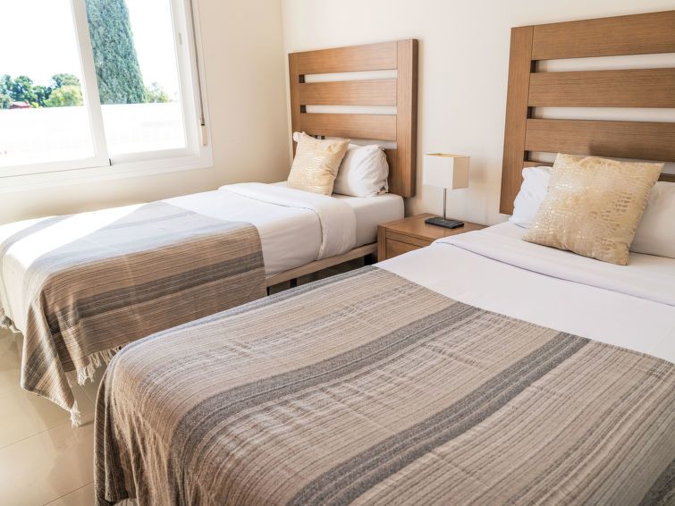 "Cortijo mar azul", 3-room apartment 106 m2, south facing position. Bright, very comfortable and beautiful furnishings: living/dining room with digital TV, air conditioning and forced-air heating. Exit to the terrace. 1 room with 1 french bed (180 cm, length 200 cm), shower/WC, double hand-basin and hydro massage shower (private) air conditioning and electric shutters.