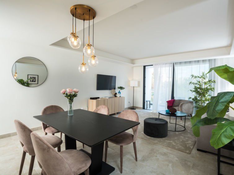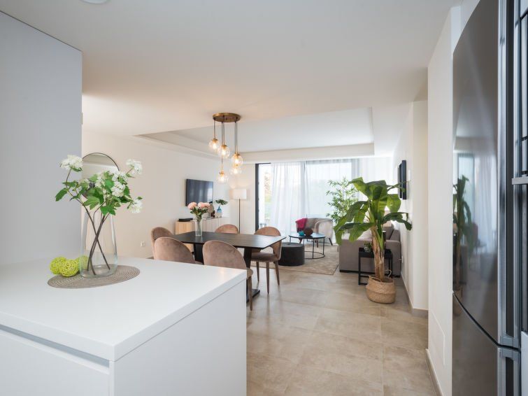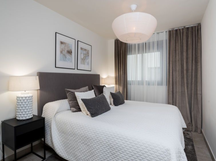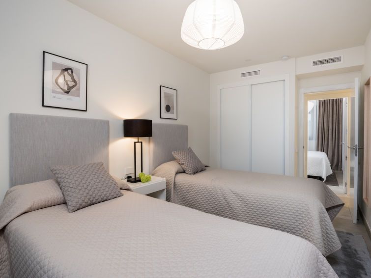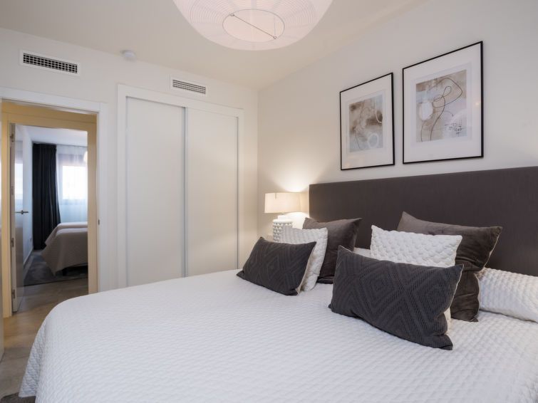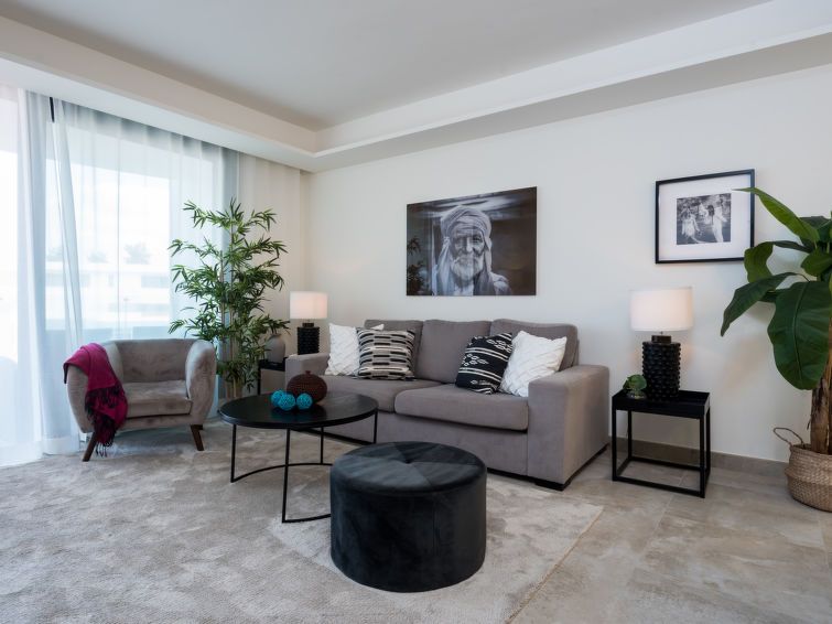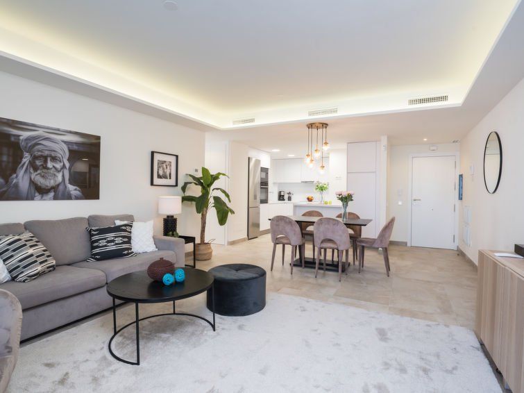 "Estepona Roof Top View 4", 4-room apartment 100 m2 on 2nd floor, east facing position. Object suitable for 6 adults. Modern and stylish furnishings: living/dining room with digital TV, air conditioning and forced-air heating. Exit to the balcony. 1 room with 1 french bed (180 cm, length 200 cm), bath/WC, hand-basin, air conditioning and forced-air heating.