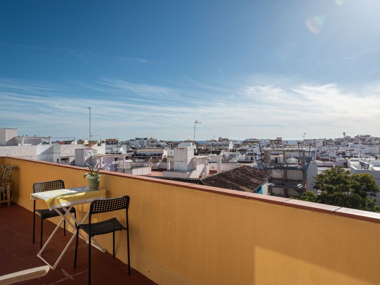 3-room penthouse 77 m2 on 5th floor. Living/dining room with digital TV, air conditioning and forced-air heating. Exit to the terrace. 1 room with 2 beds (90 cm, length 200 cm), air conditioning and forced-air heating. 1 room with 1 double bed (2 x 90 cm, length 200 cm), air conditioning and forced-air heating.