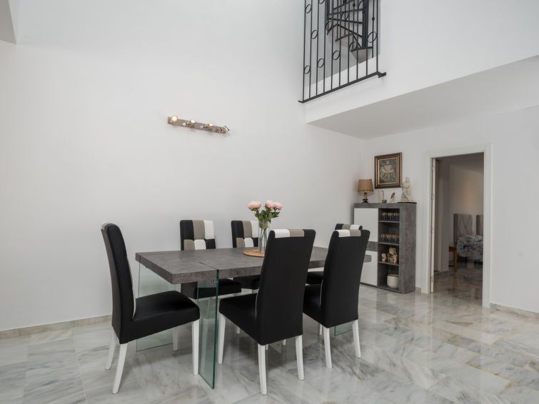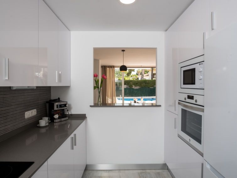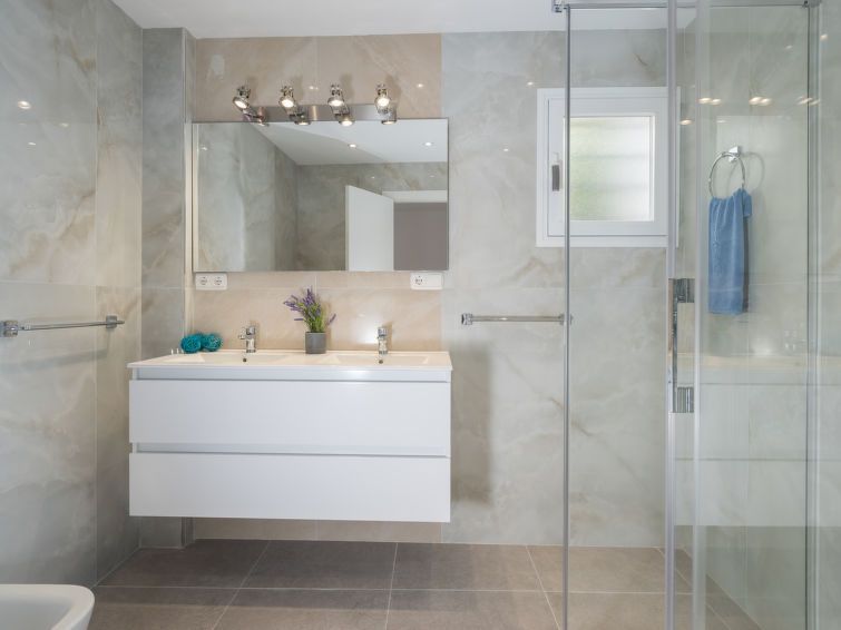 "La Palmera", 4-room house 250 m2. Object suitable for 8 adults. Modern and cosy furnishings: living/dining room 60 m2 with rooflight with open-hearth fireplace and dining table. Exit to the patio, to the swimming pool. 1 room with 2 beds (90 cm, length 200 cm), hand-basin and shower/bidet/WC.